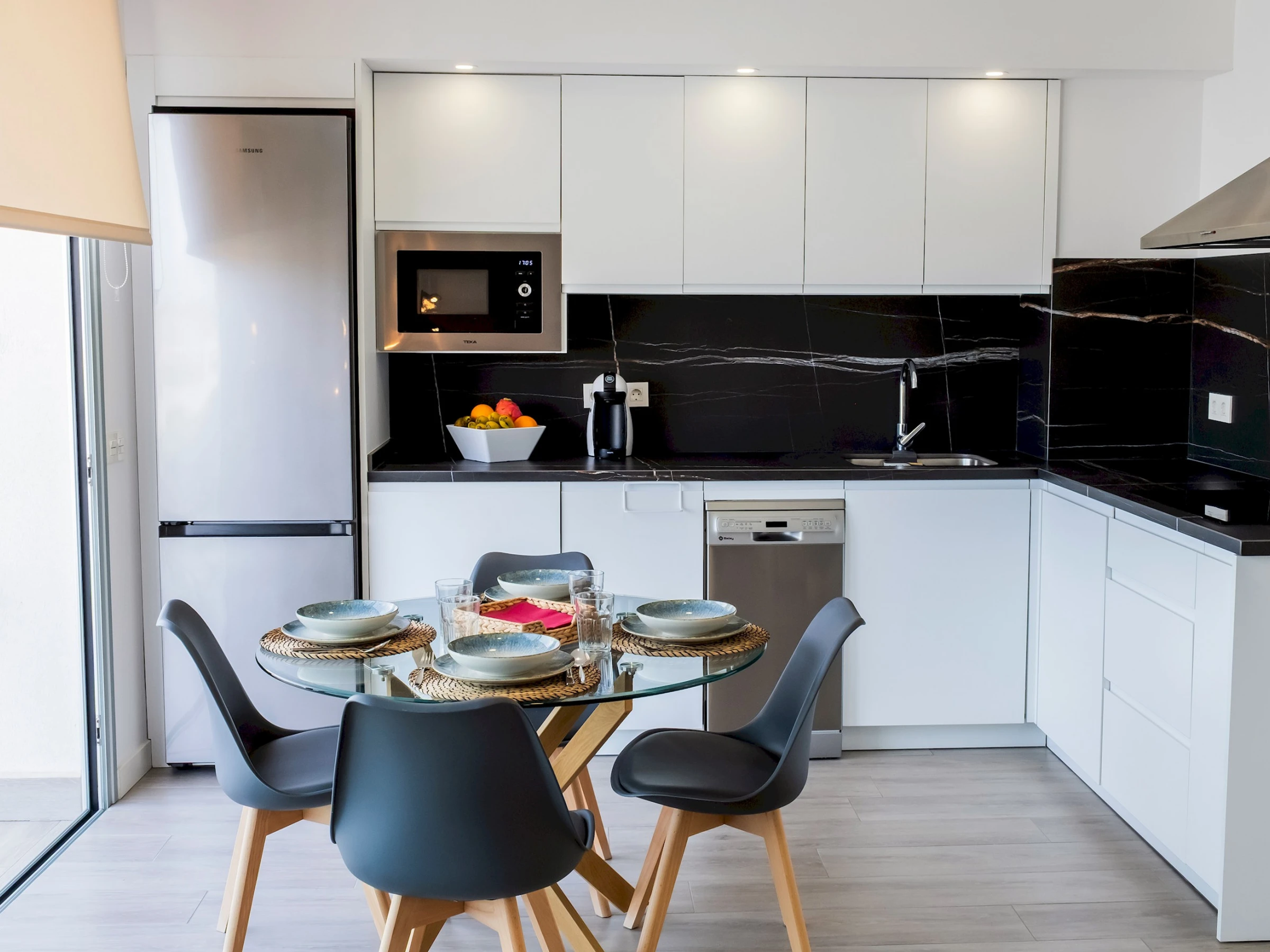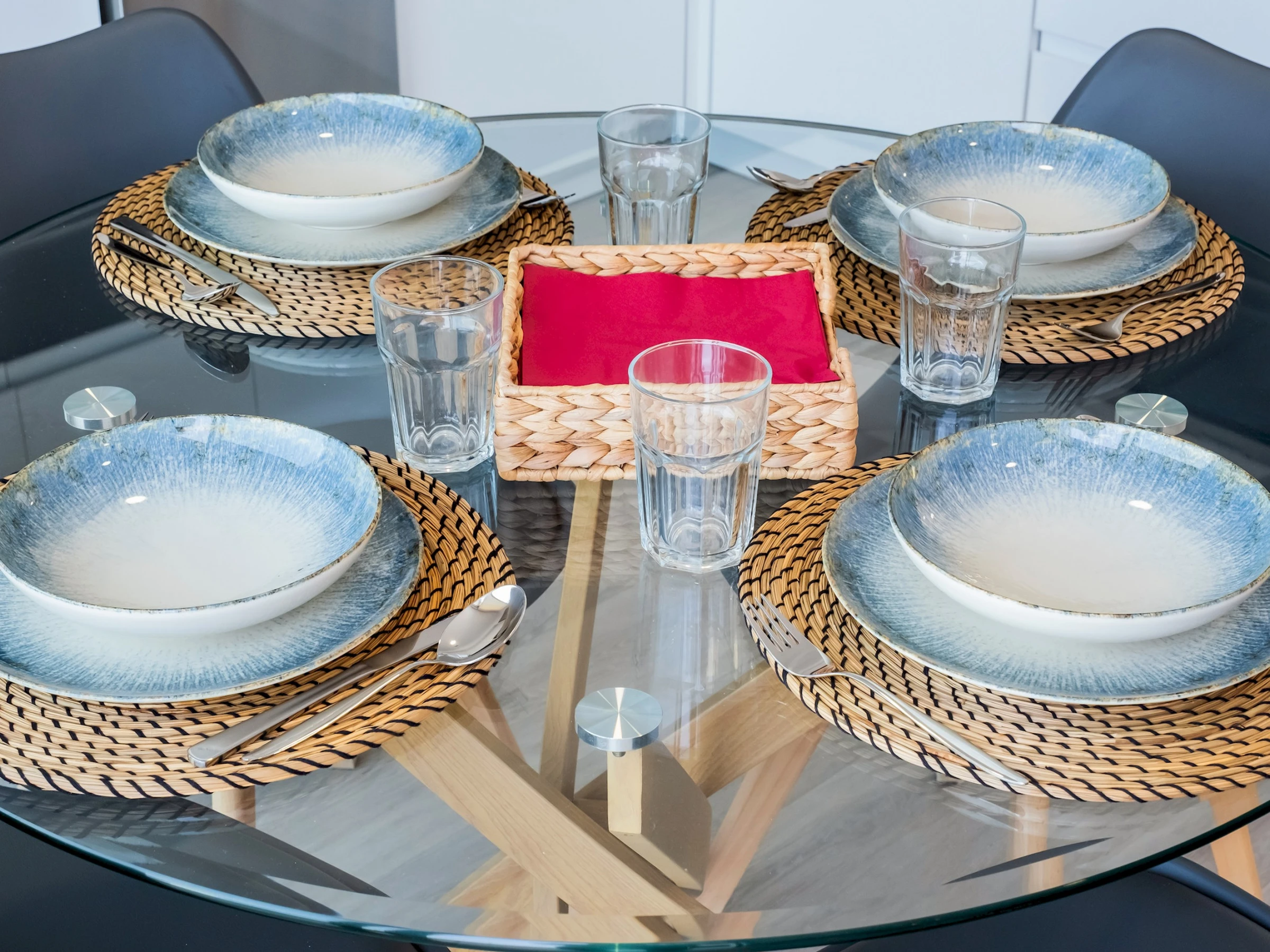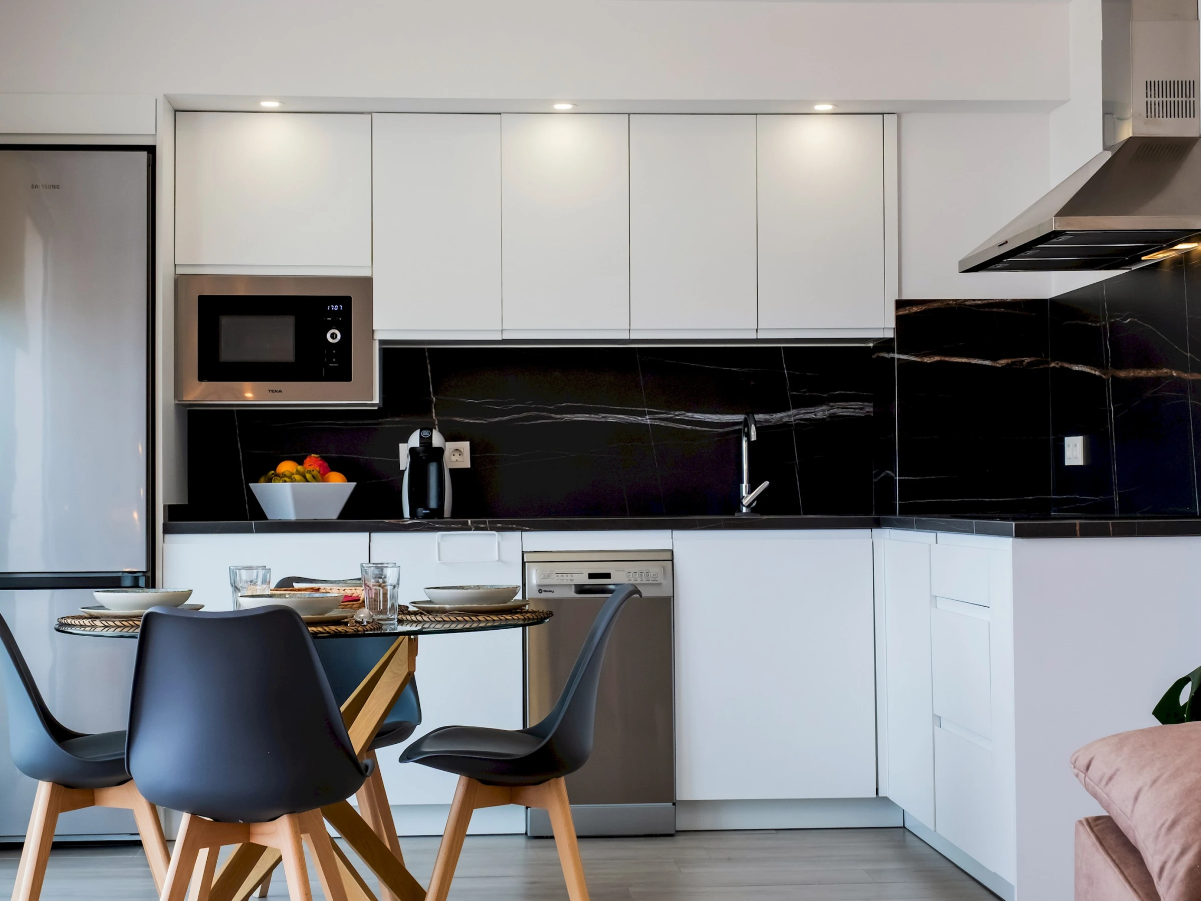 La cuisine, est équipée avec micro-ondes, lave-vaisselle, ustensiles/cuisine, cafetière et grille pain.
