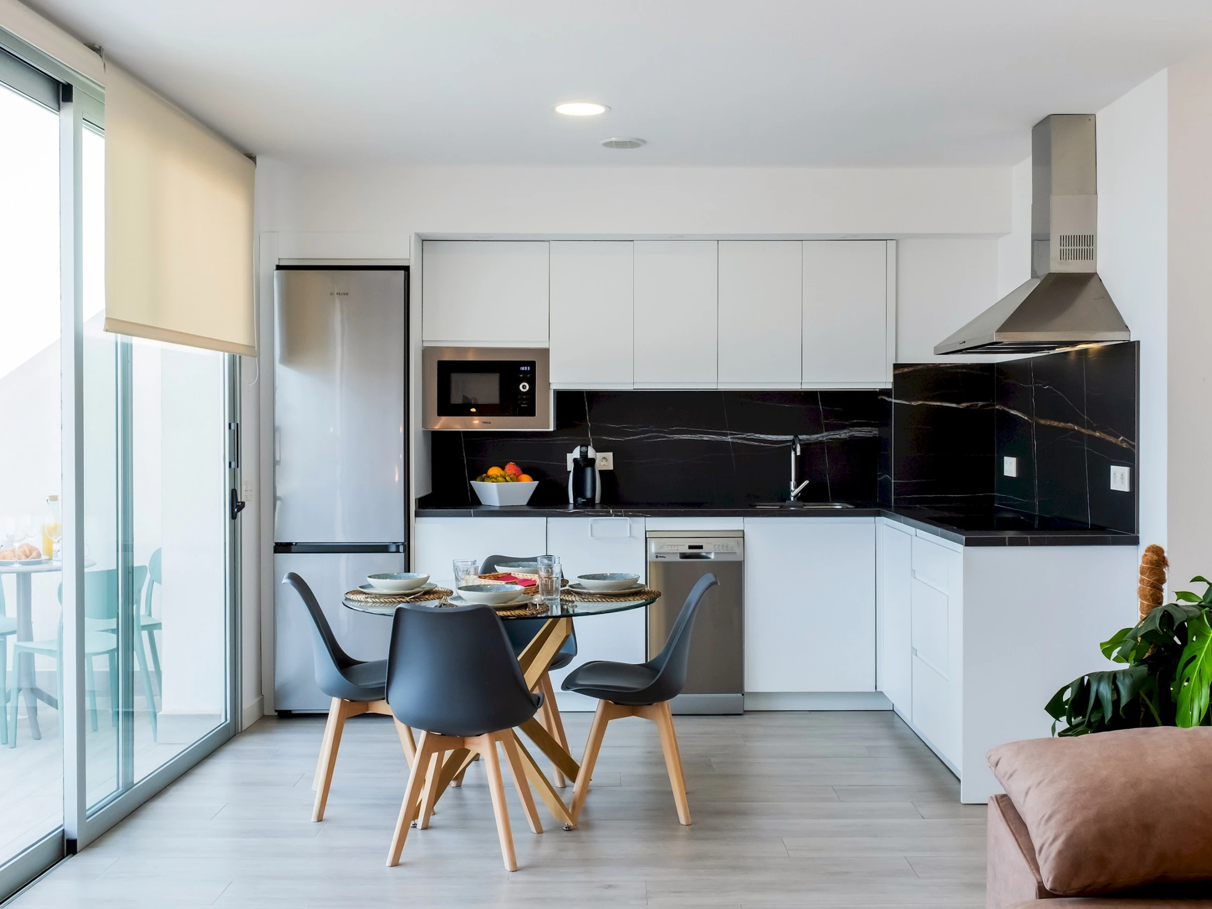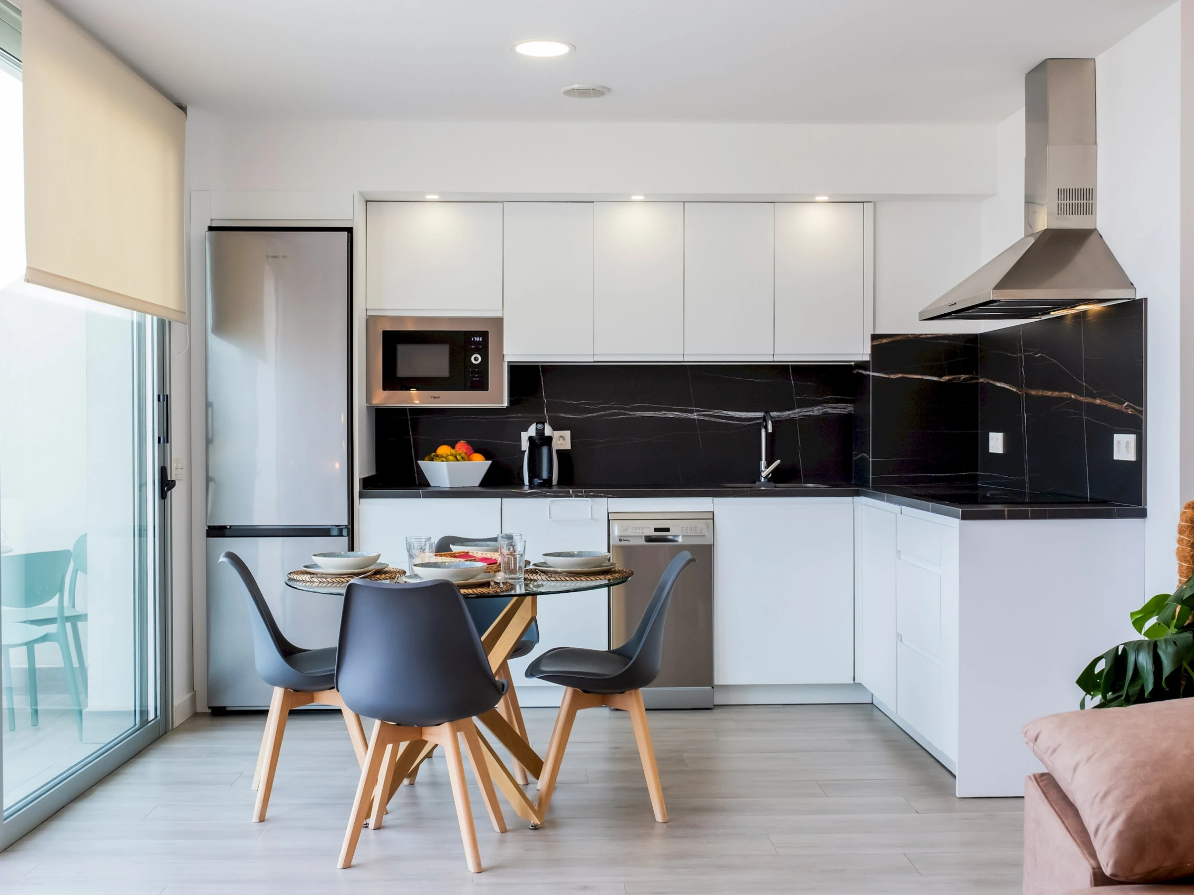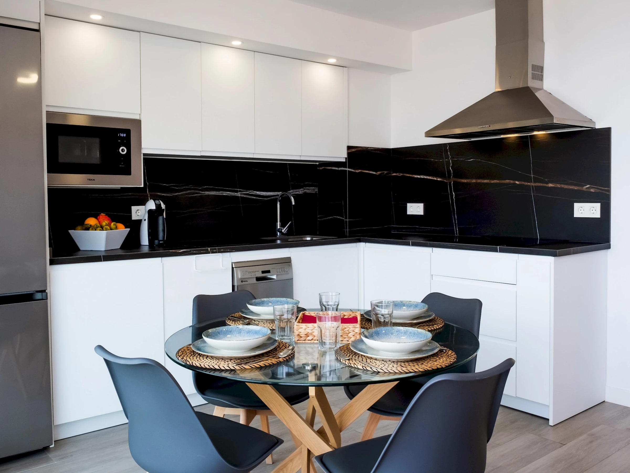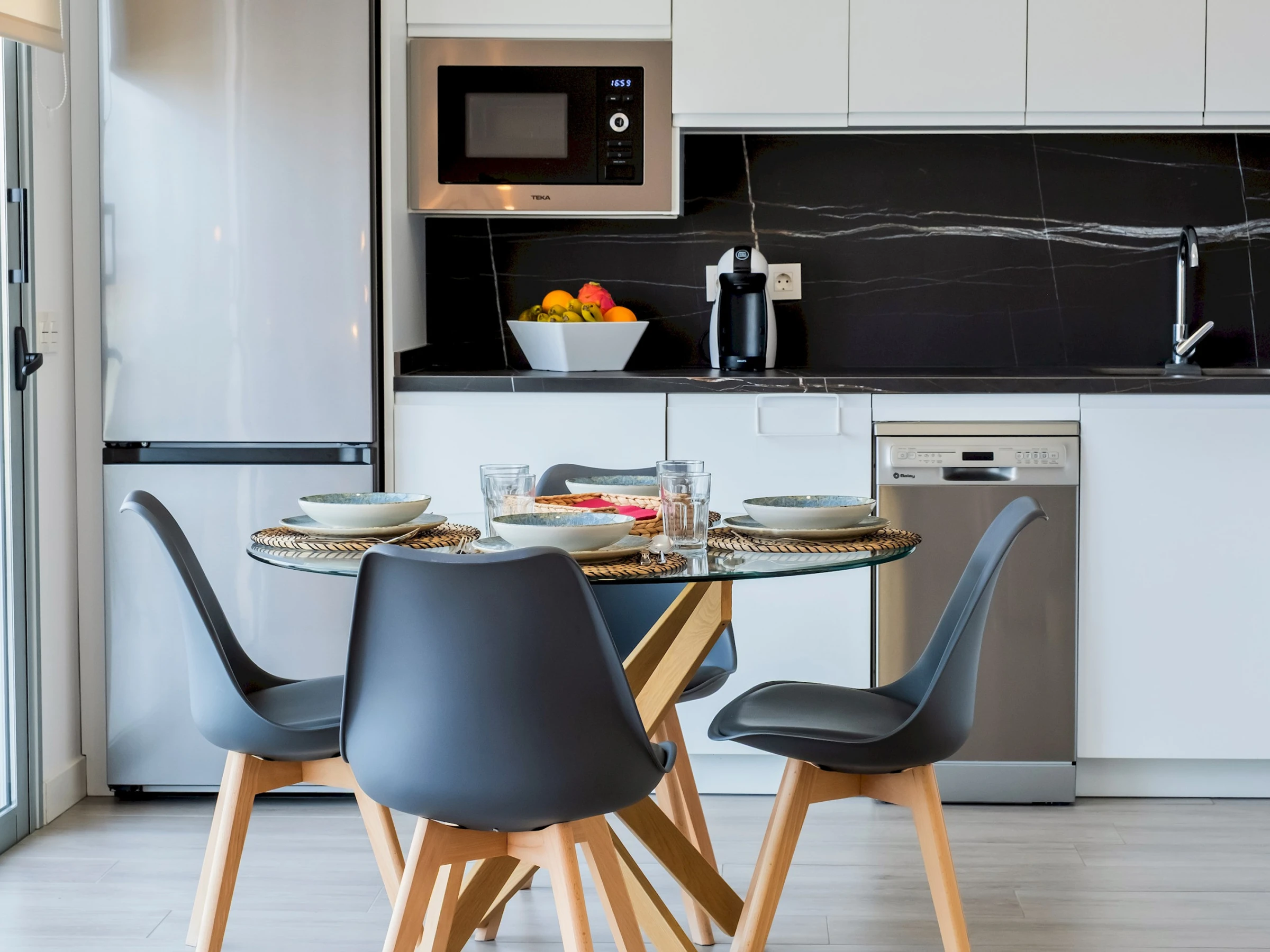 La cuisine, est équipée avec micro-ondes, lave-vaisselle, ustensiles/cuisine, cafetière et grille pain.
