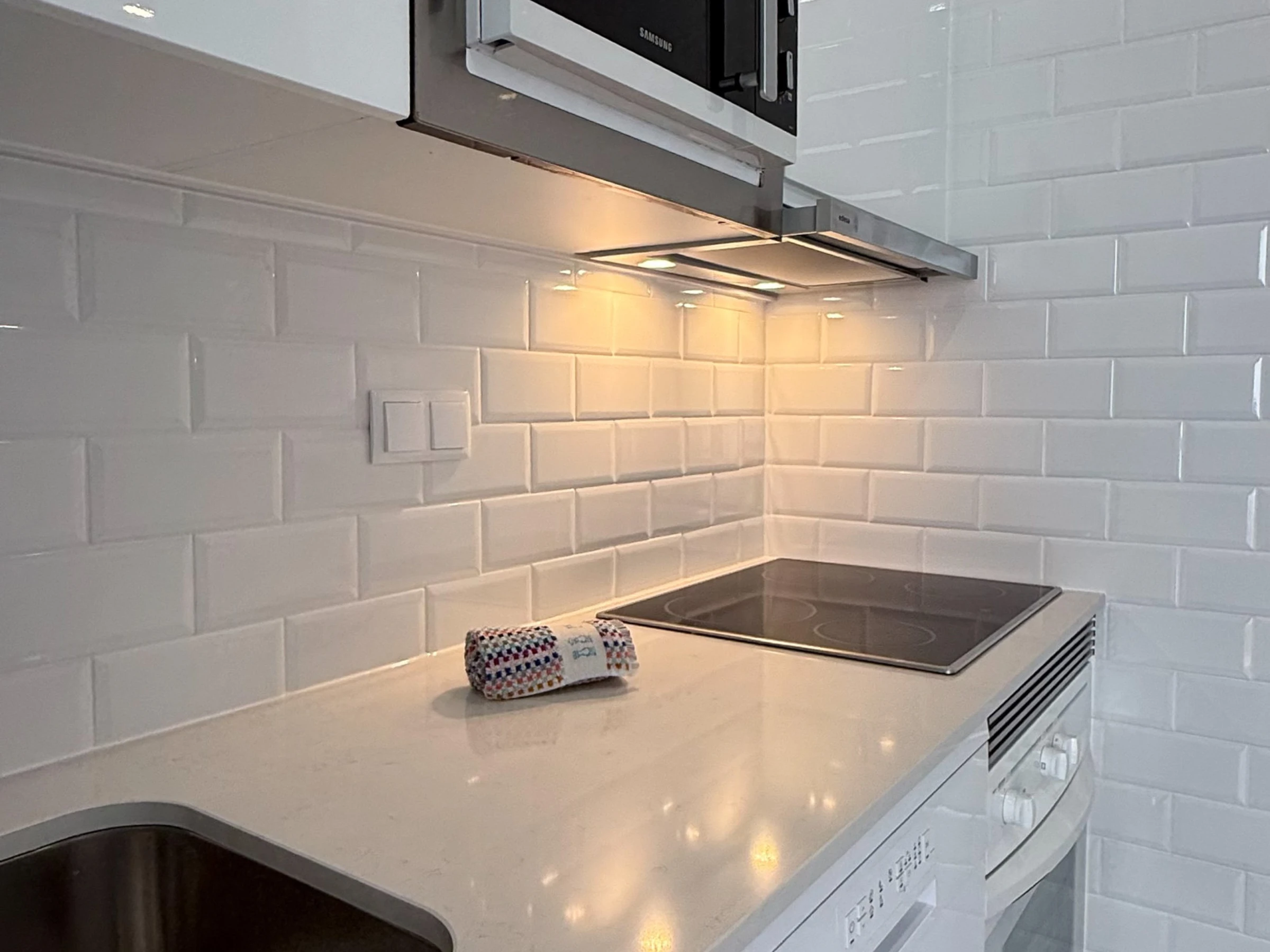La kitchenette est très fonctionnelle et entièrement équipée avec les électroménagers suivants : lave-vaisselle et lave-linge, cuisinière électrique avec 4 brûleurs, réfrigérateur, micro-ondes et grille-pain qui garantissent la qualité de la préparation de vos repas.