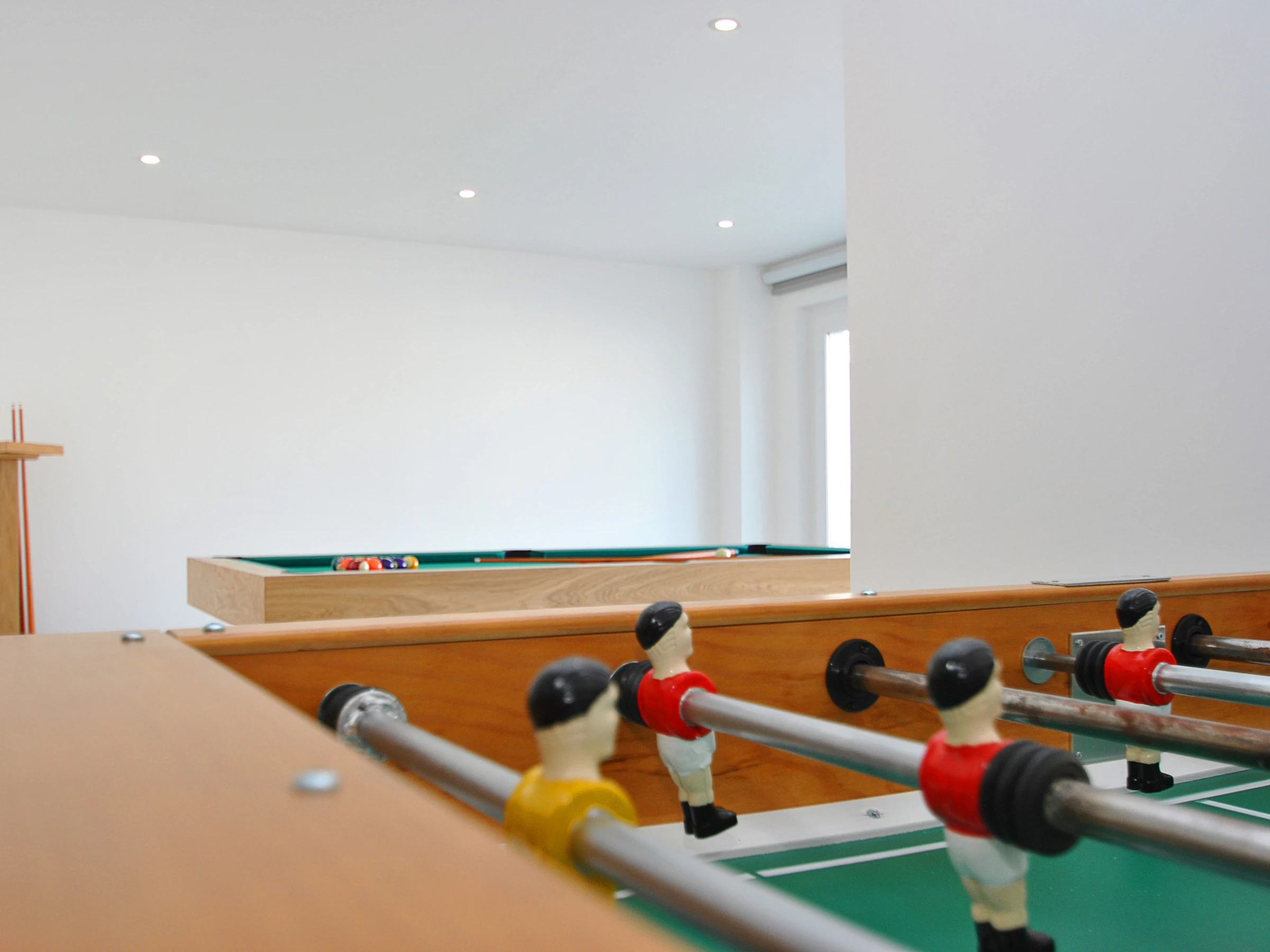 À l'intérieur, la villa dispose de la climatisation (refroidissement et chauffage), d'un élégant salon et salle à manger, d'une cuisine moderne entièrement équipée et d'une impressionnante salle de jeux.