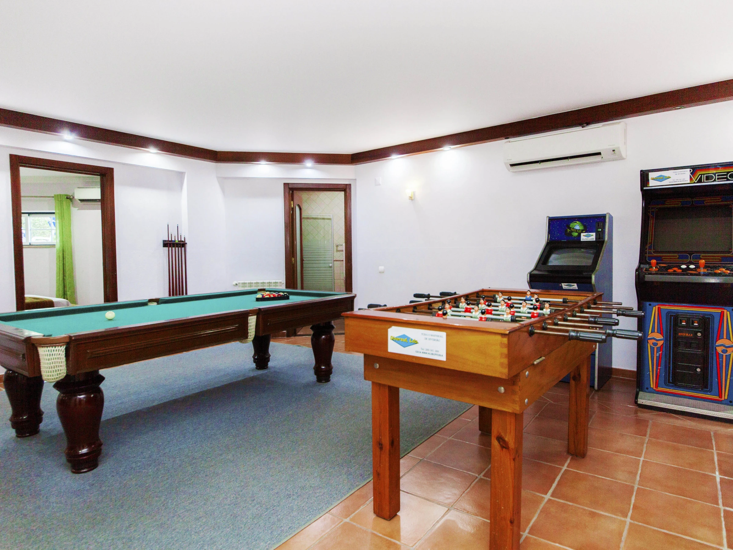 Au niveau inférieur, il y a deux autres chambres, une cuisine secondaire, une salle de bain et un espace de divertissement spacieux, avec télévision, table de billard, baby-foot et ping-pong.