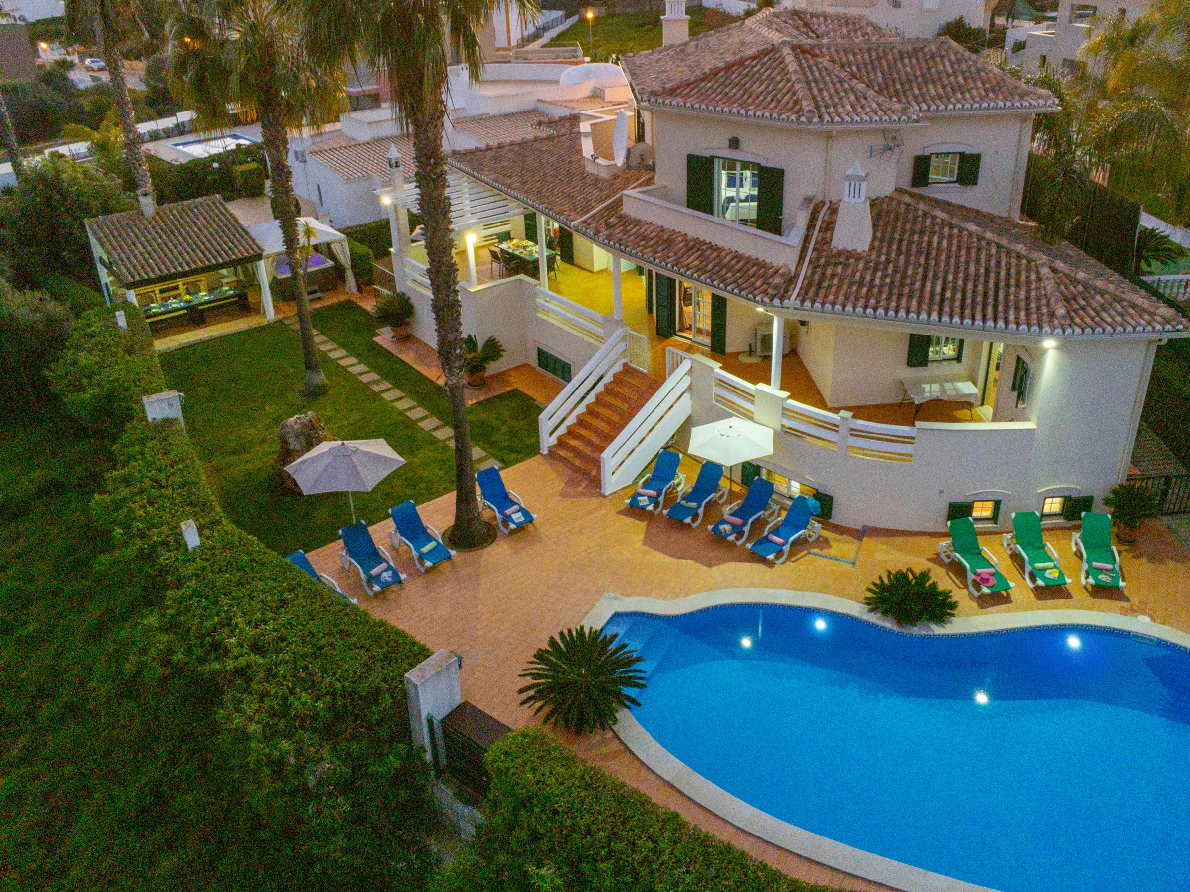 La Villa Oliveira se distingue par son amplitude et sa localisation privilégiée à Armação de Pêra, à seulement 700 mètres de la plage, idéale pour ceux qui valorisent le confort et la commodité. L'entrée impressionne avec un vaste espace de stationnement et un jardin bien entretenu.