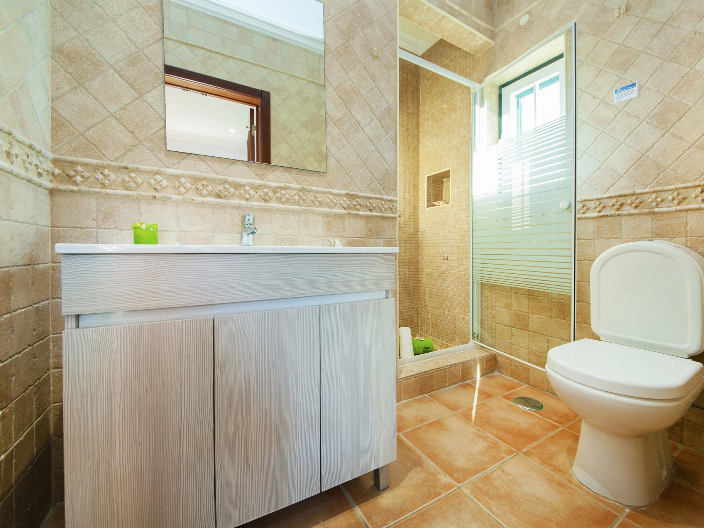 La salle, spacieuse et lumineuse, est décorée avec des canapés élégants et une table à manger qui invite à la convivialité, créant le cadre parfait pour des moments de détente. Au rez-de-chaussée, il y a deux chambres accueillantes, une double et une twin, toutes deux avec salle de bain privative et placards intégrés, ainsi qu'une salle de bain supplémentaire. Au premier étage, deux chambres avec salle de bain attenante offrent des vues splendides sur la mer depuis leurs balcons.