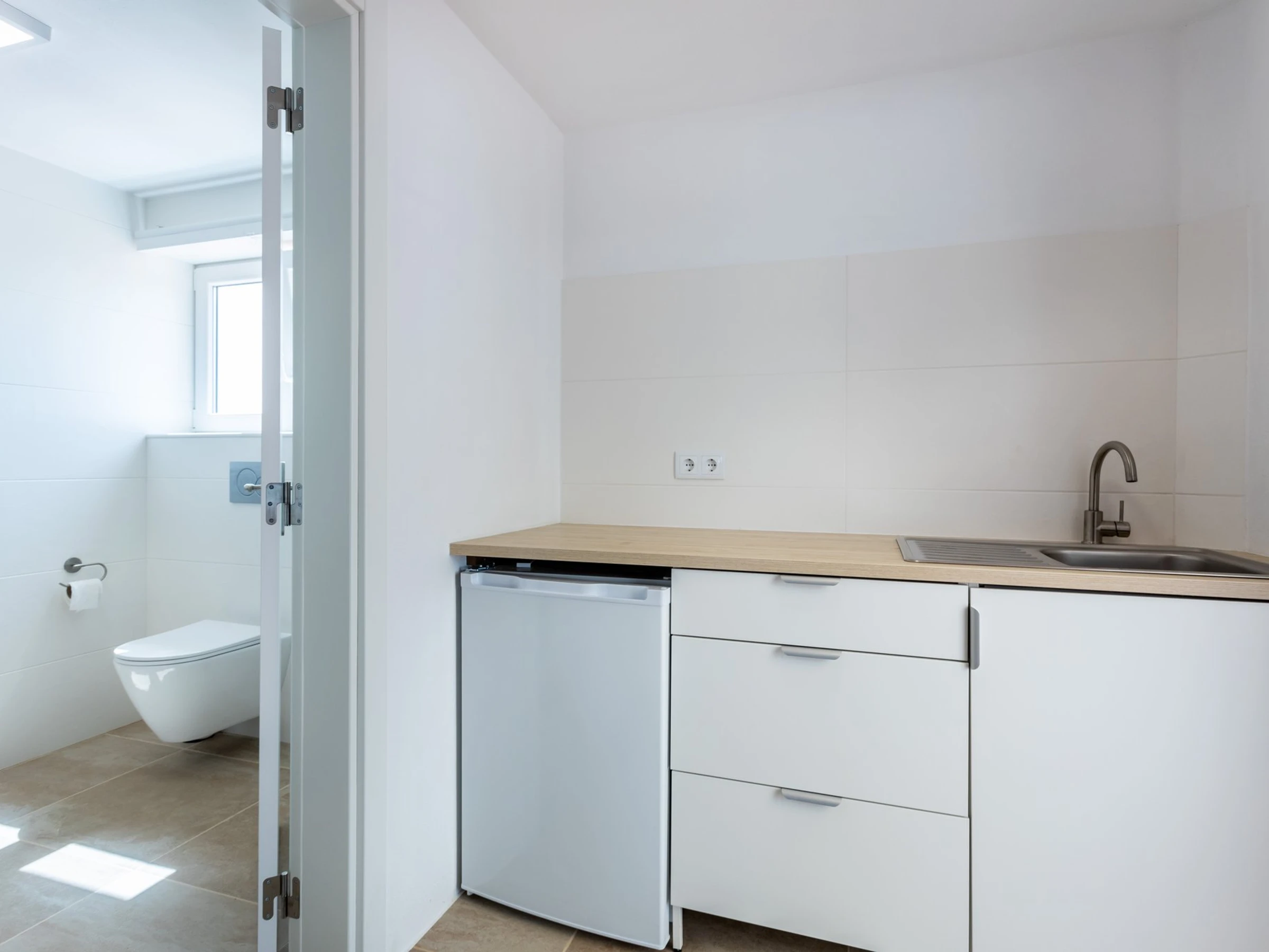 La cuisine, est équipée avec réfrigérateur, micro-ondes, four, congélateur, lave-vaisselle, cafetière, grille pain et bouilloire.