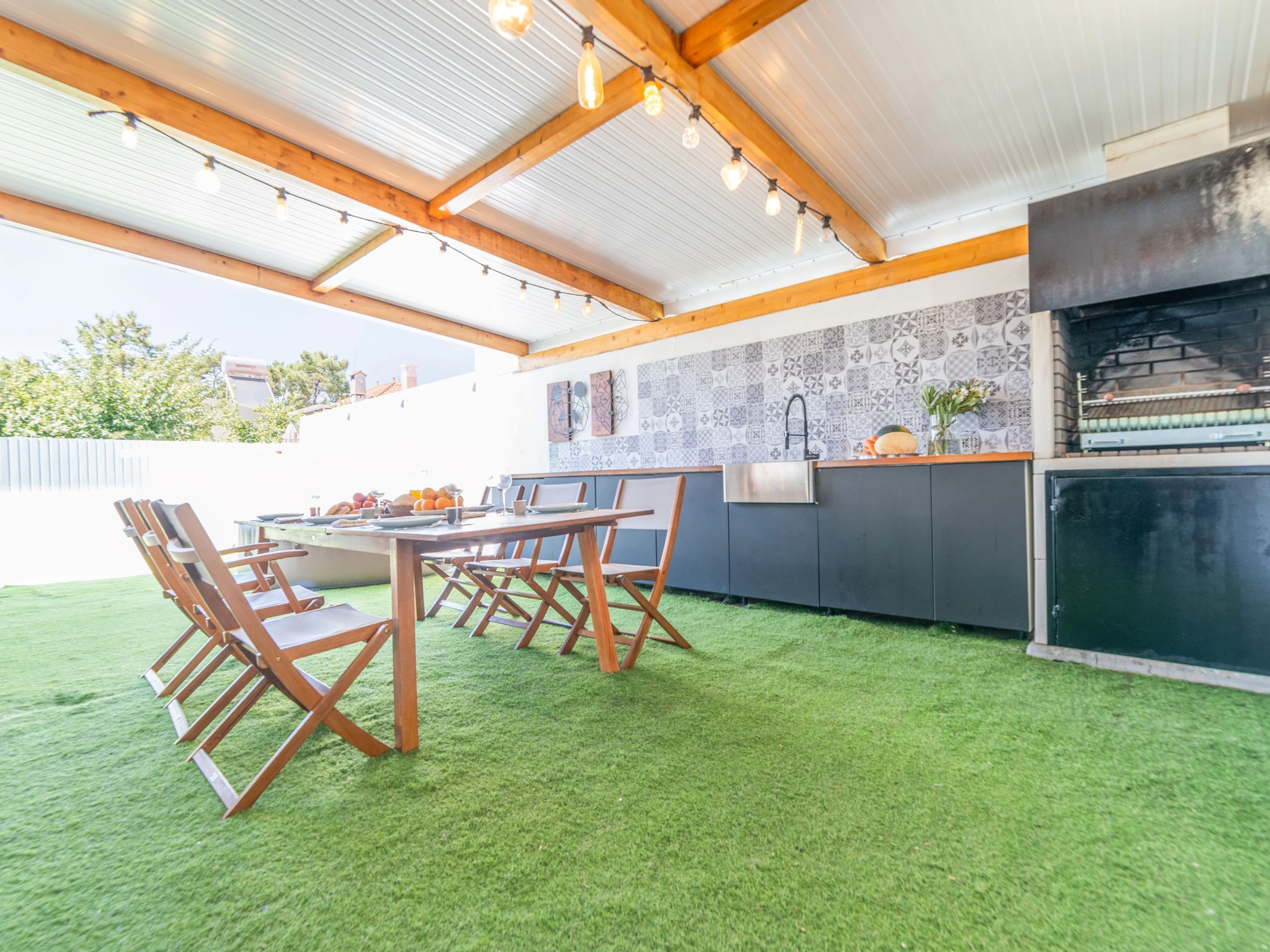 Le point central se trouve toutefois à l'arrière, où un patio couvert offre un endroit idéal pour manger en plein air ou pour s'asseoir avec un café le matin. Il est situé près d'un mur, ce qui le protège et lui confère une certaine intimité.