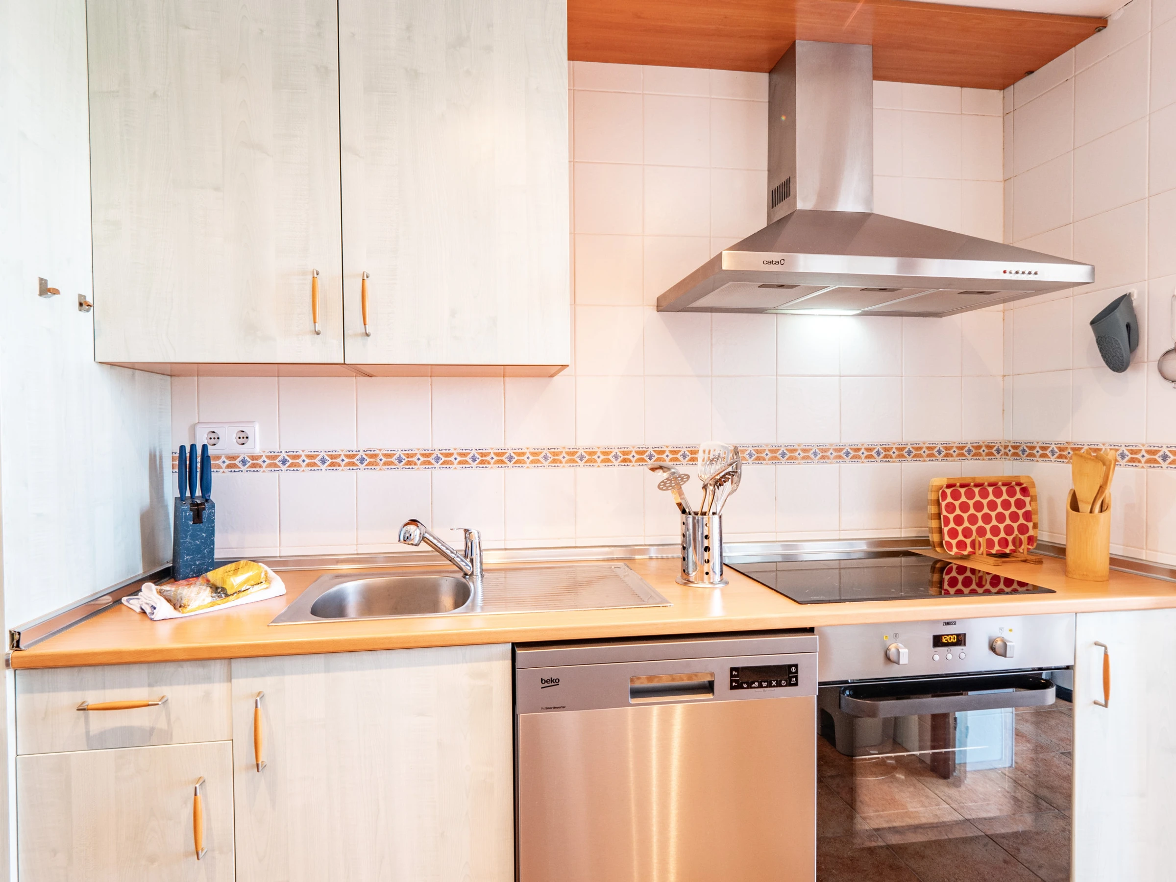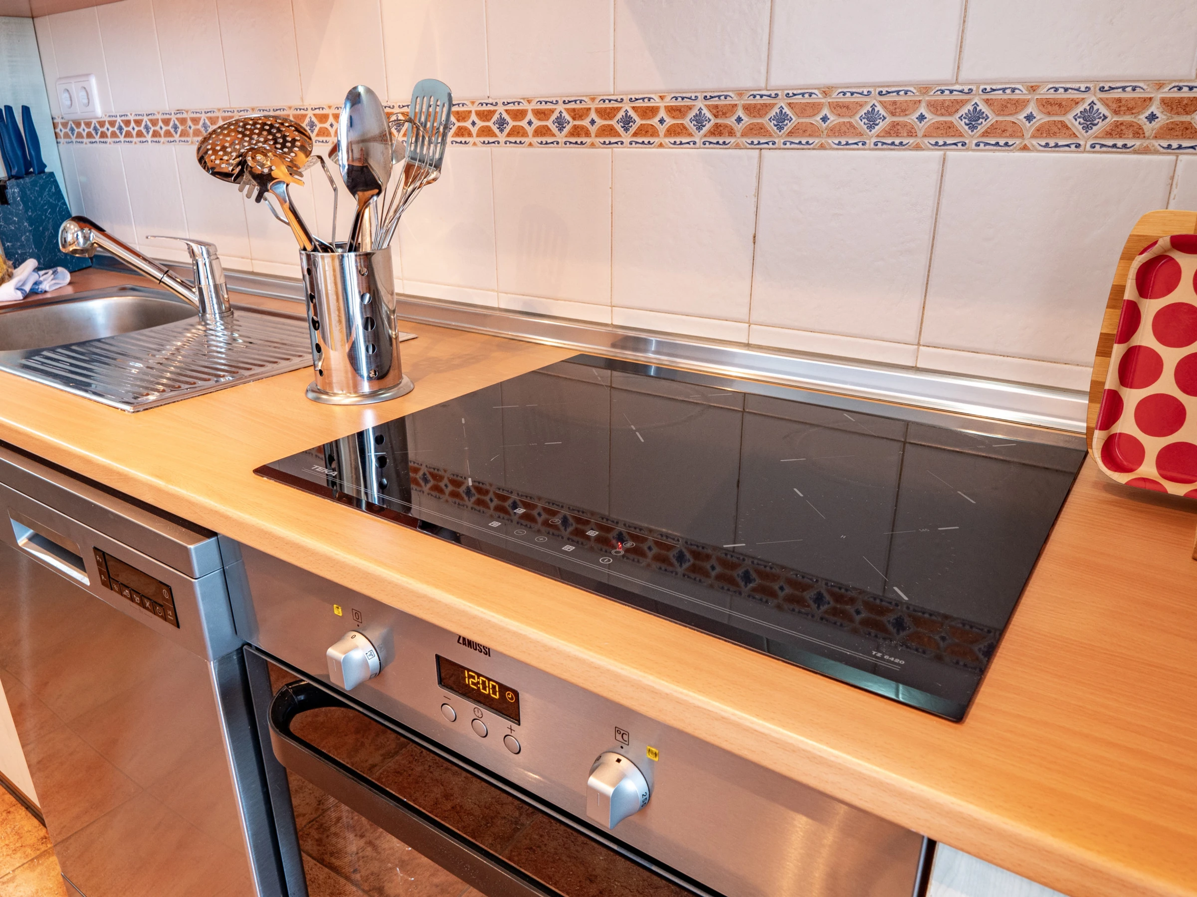 La cuisine indépendante, à vitrocéramique, est équipée avec réfrigérateur, micro-ondes, four, congélateur, lave-vaisselle, vaisselle/couverts, ustensiles/cuisine, cafetière, grille pain et presse-agrumes.