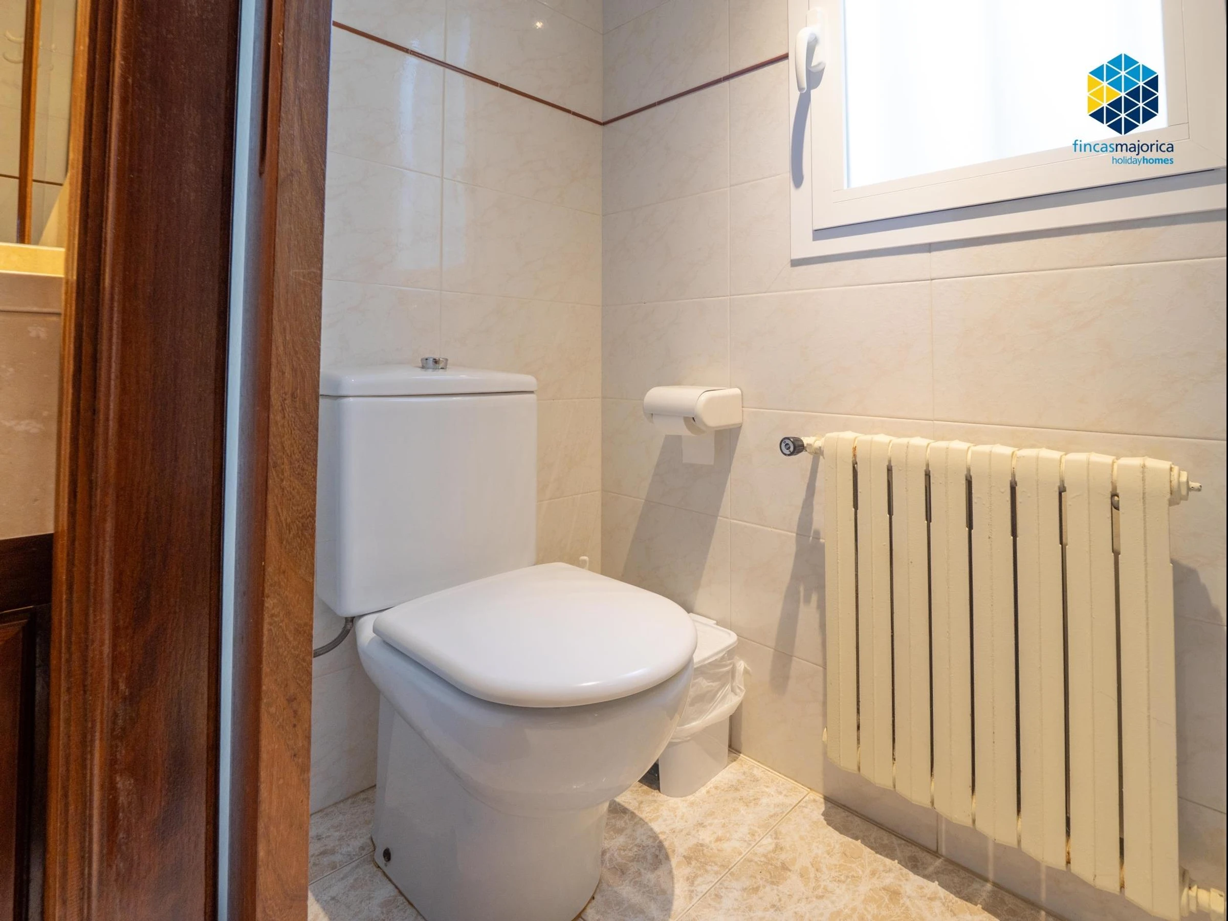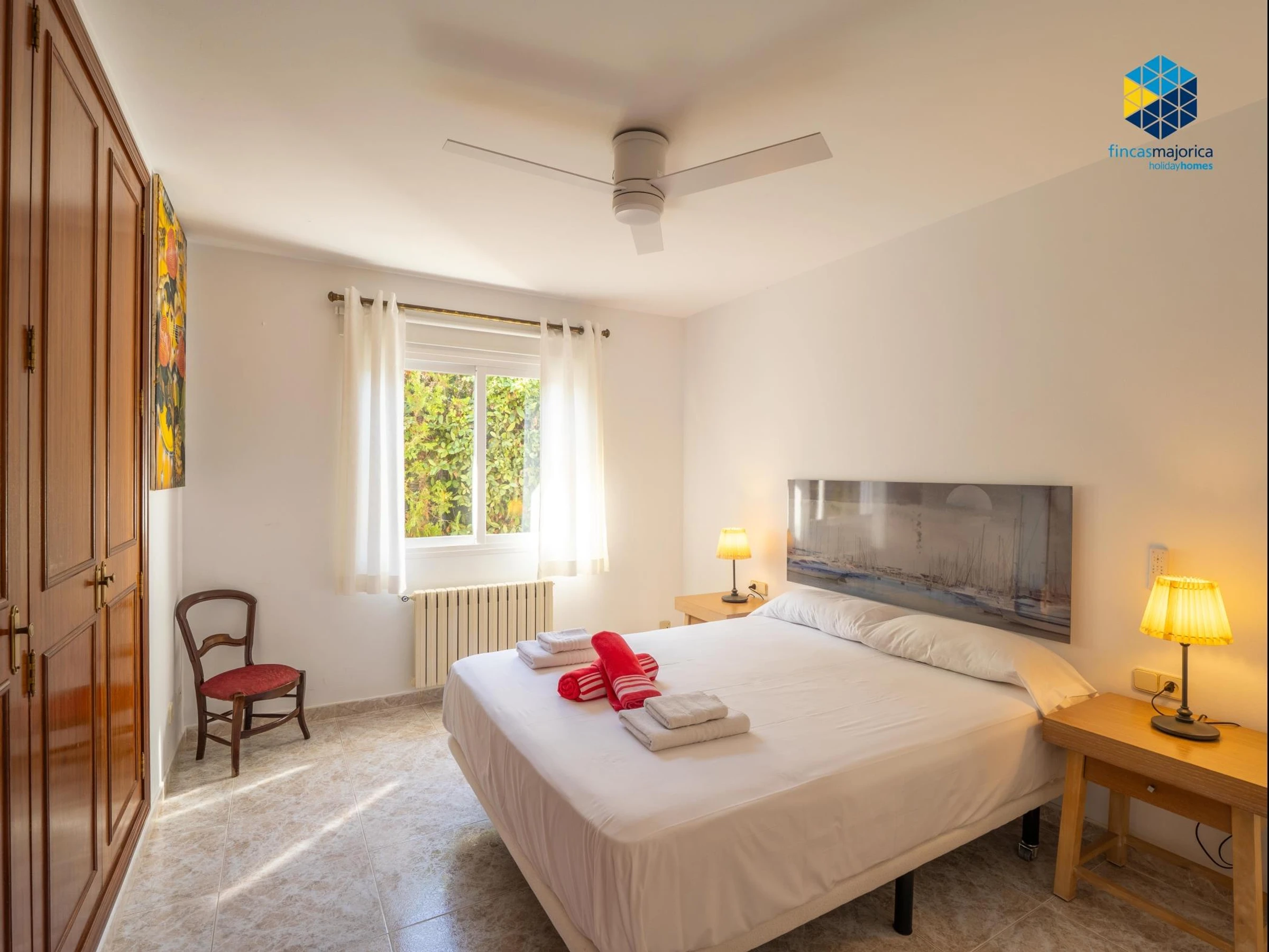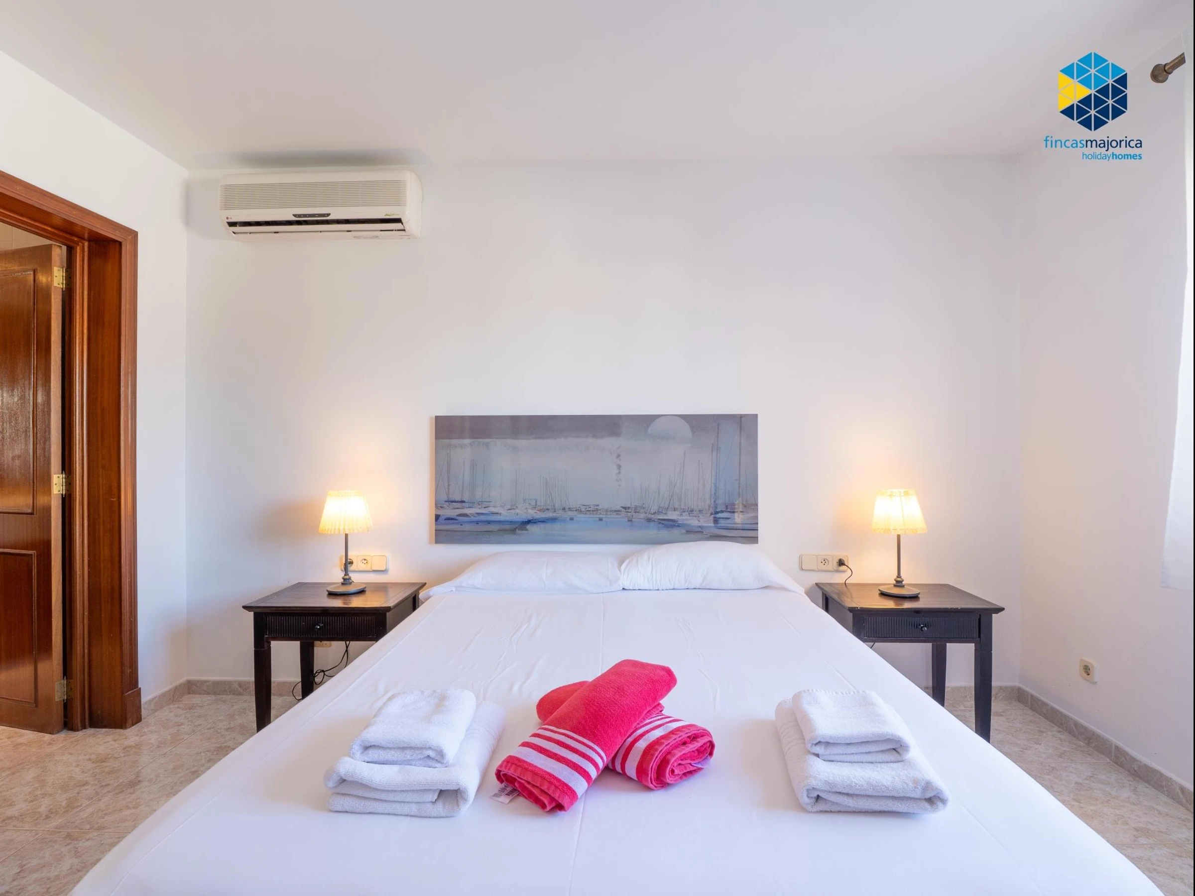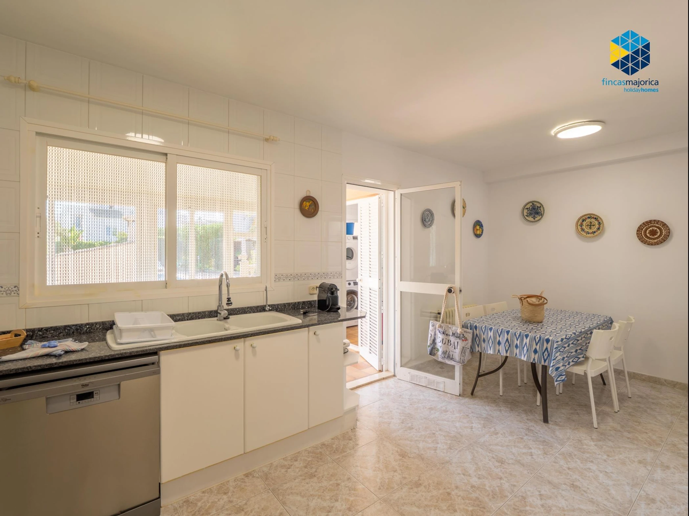 Cette villa offre 160 m² de surface habitable sur un terrain spacieux de 900 m² et comprend trois chambres doubles et deux salles de bains, dont une attenante avec douche et l'autre avec baignoire. Tout est prévu pour un séjour confortable : Wi-Fi haut débit Movistar, chauffage, climatisation dans le séjour et l'une des chambres principales, ventilateurs, lave-linge, sèche-linge et cuisine équipée au gaz avec cafetière italienne et américaine, four, micro-ondes et bouilloire. Le séjour/salle à manger dispose d'une smart TV et d'un accès direct à l'espace extérieur, où vous attend une grande piscine privée de 12 x 5 mètres à profondeur variable, entourée de six transats et d'un barbecue à gaz – l'idéal pour profiter pleinement du style de vie méditerranéen. La villa est également équipée de panneaux solaires et offre un parking extérieur gratuit. C'est le choix idéal pour ceux qui recherchent la détente en bord de mer et la tranquillité de la côte majorquine.