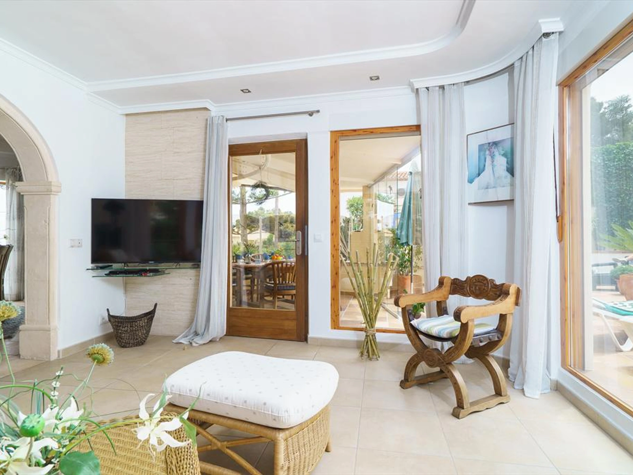 Elle dispose de jardin, terrasse, lave-linge, terrain de tennis, TV, DVD.