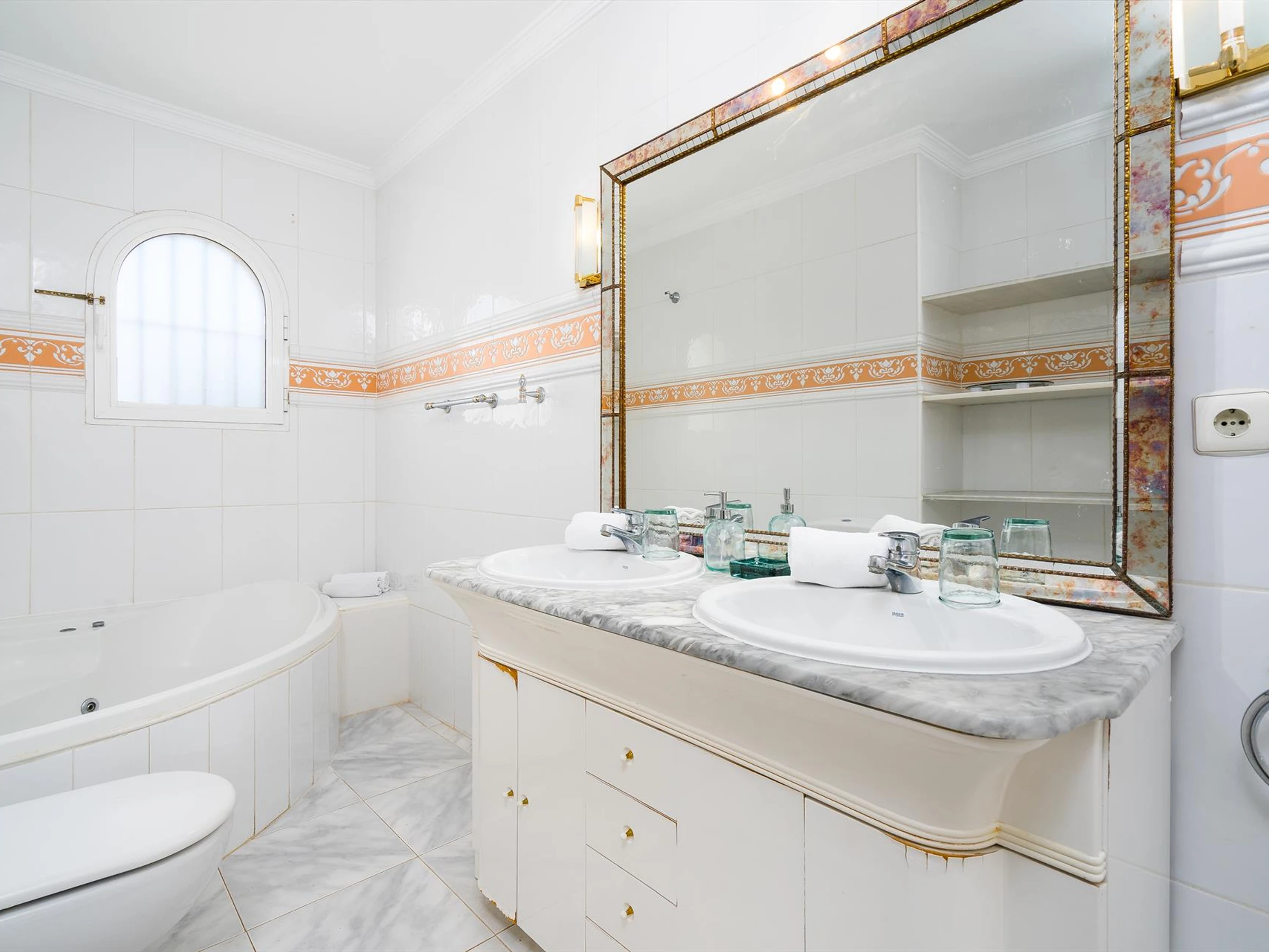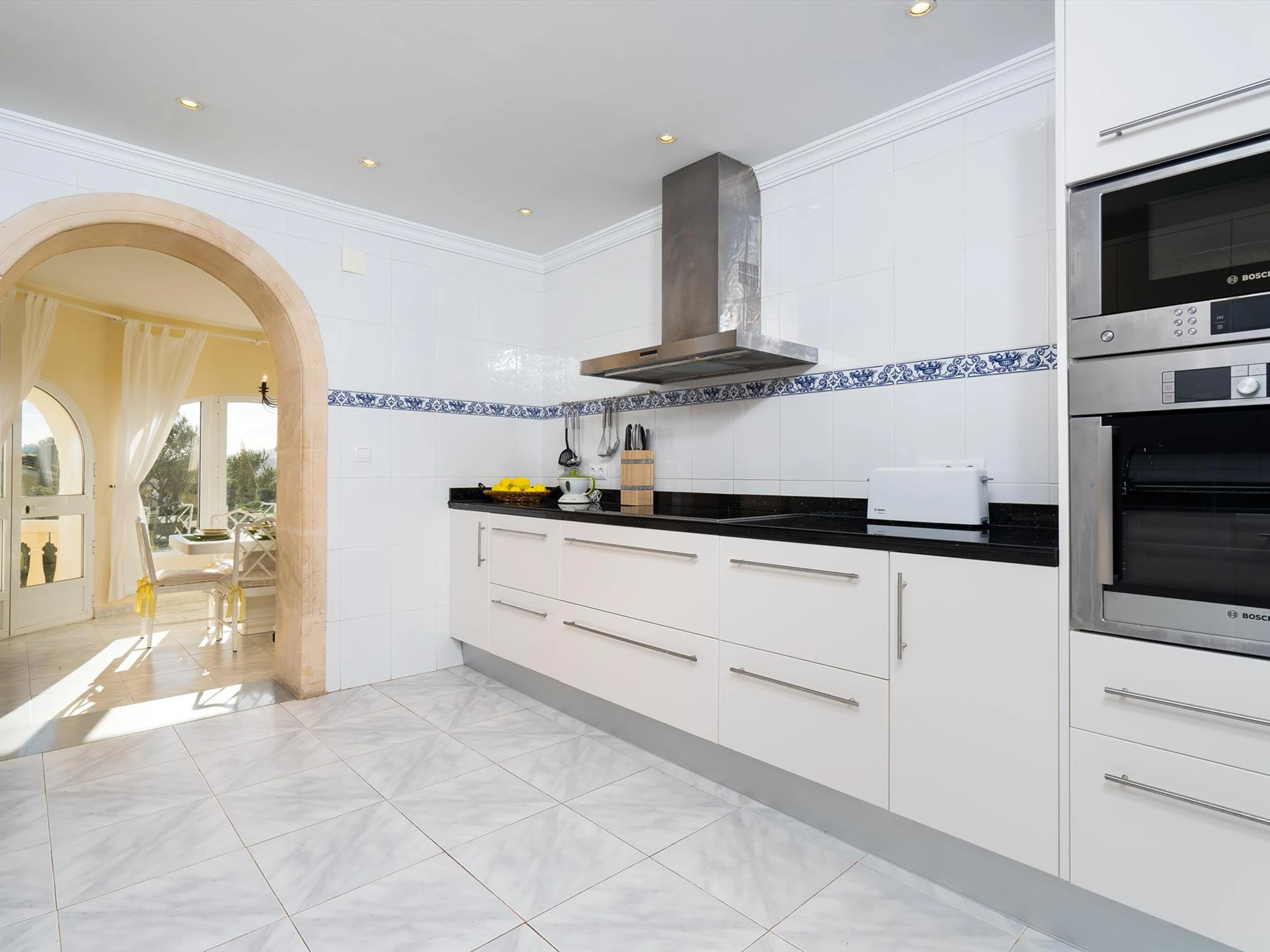 La cuisine, est équipée avec micro-ondes, four, congélateur, lave-vaisselle, cafetière et grille pain.