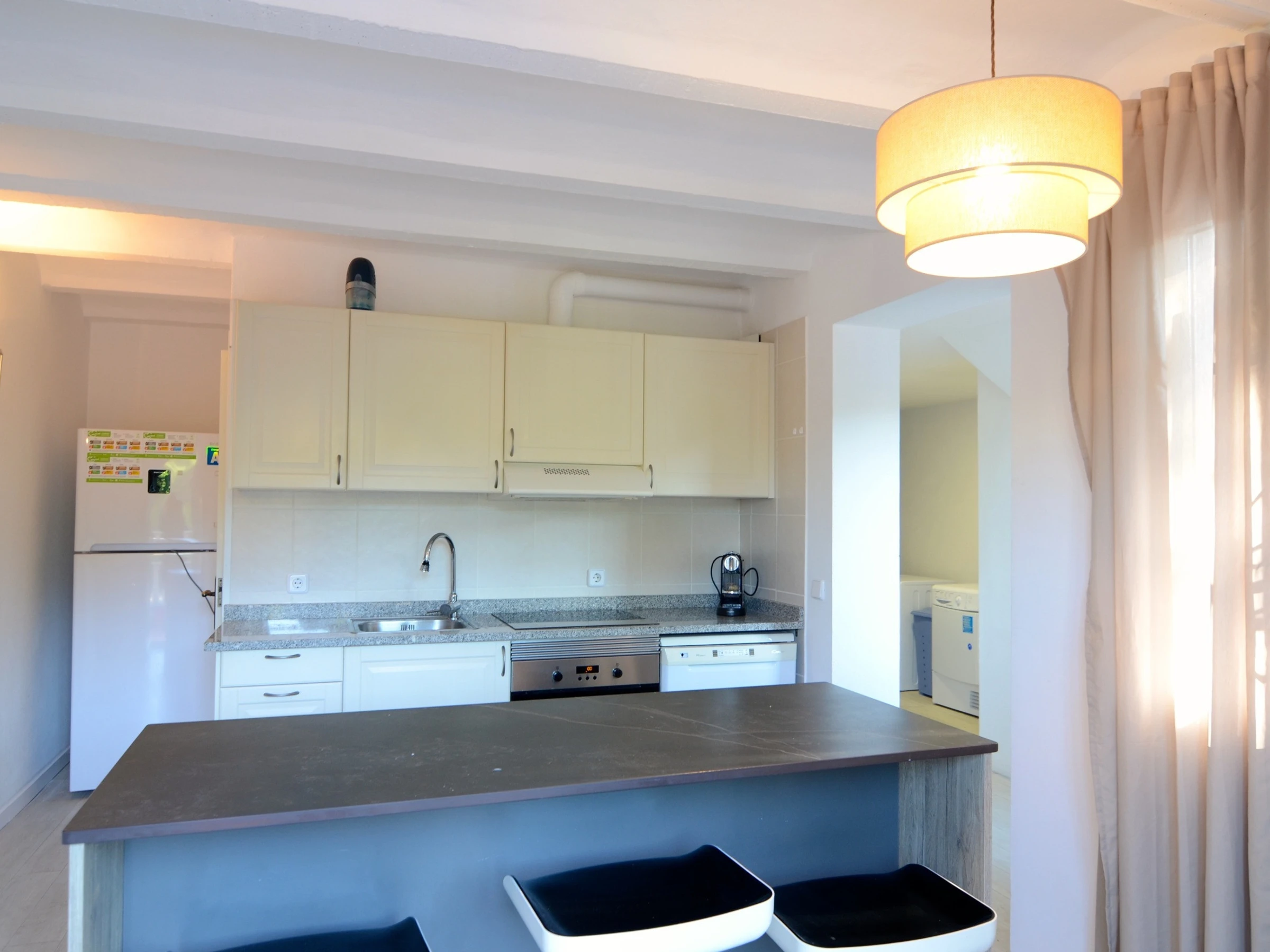 - Rez-de-chaussée avec un appartement complet comprenant cuisine, buanderie, chambre principale et salle de bain.