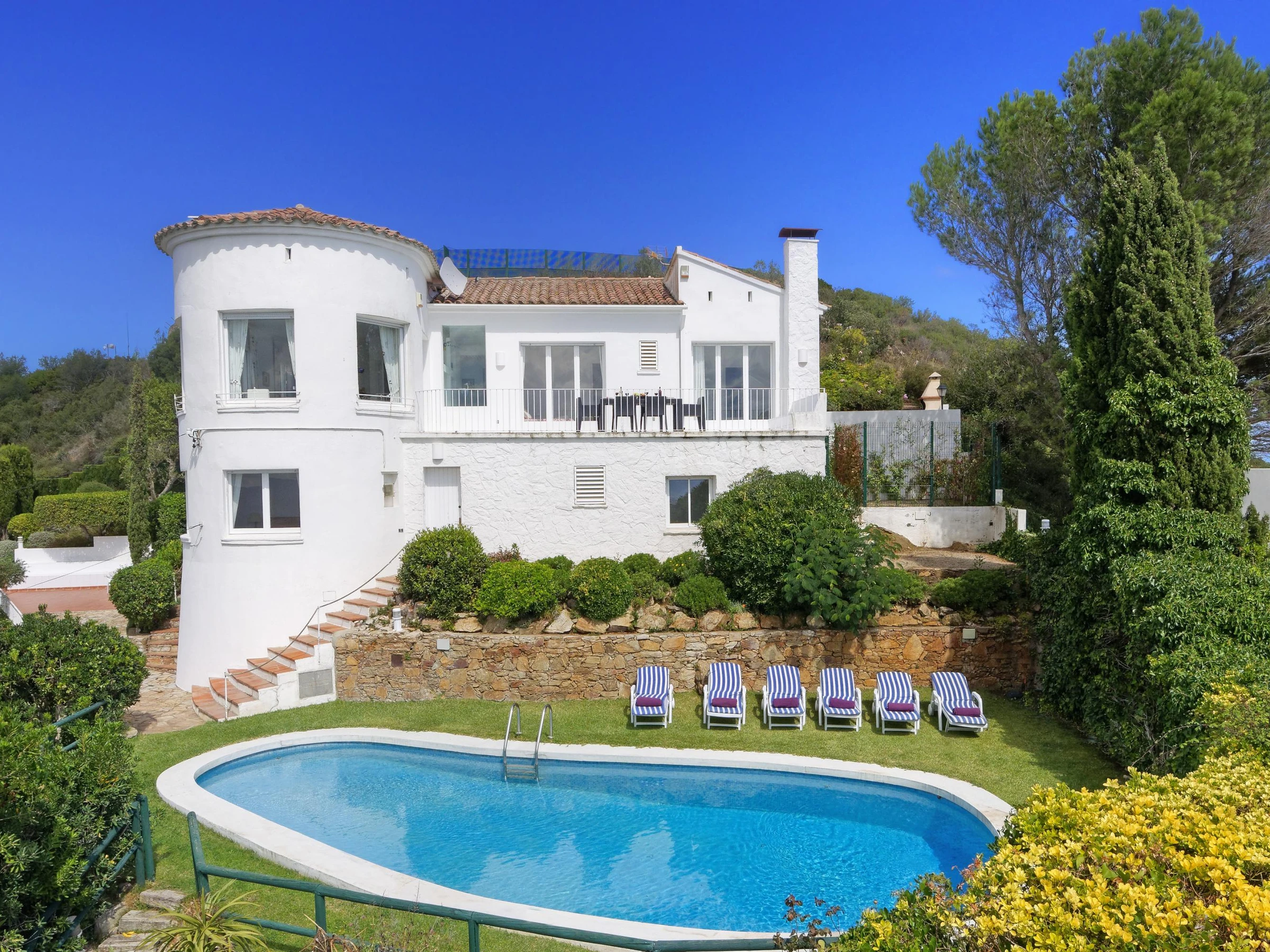 El Colomar est une villa qui offre une vue incroyable sur la côte nord de la Catalogne! Elle se trouve dans le résidentiel Son Rich à seulement 1,5 km du village médiéval de Begur et à 3 km de la plage de Sa Riera, Sa Tuna et autres magnifiques plages de la région. C'est une propriété spacieuse pour une famille à la recherche d'un lieu de vacance unique et [hidden] villa est entourée d'un agréable jardin et posséde une piscine privée. De n'importe quel point de la propriété vous disposez d'une vue sans obstacle sur la mer et la côte. Elle se compose de deux chambres doubles avec salle de bains en suite, une chambre individuel (avec lit gigogne), une salle de bains, une cuisine avec lave-vaiselle et une salle de séjour qui donne accés à la terrasse. La terrasse offre une vue sur la piscine, le jardin, et la mer. Deux des chambres ont des sorties sur cette terrasse. Au rés-de-chaussée, l'on trouve une buanderie, une chambre double, une salle de bains.Autour de la villa il y a 5 petits patios et un fantastique mirador.Barbecue. WiFi. place de parking exterieur Capacité: 8 personnes [hidden] 100€ DE SUPPLÉMENT DE PROPETÉ POUR LES SEJOURS INFERIEURS D’UNE SEMAINE ET AVEC UN MINIMUM DE 3 NUITS. CE SUPPLÉMENT N’EST PAS INCLU DANS LE PRIX DE LOCATION.