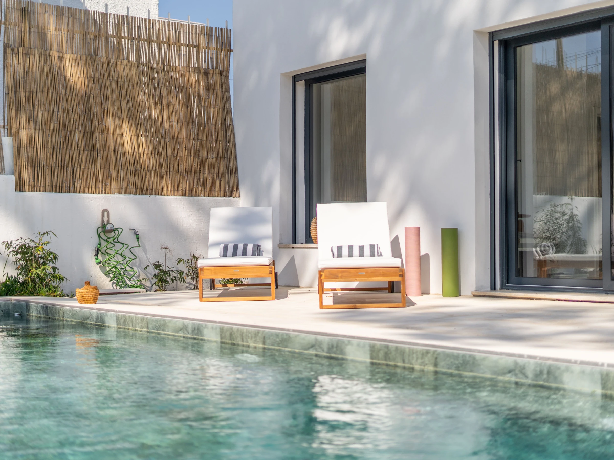 À l'extérieur, une piscine d'un bleu étincelant borde le jardin et offre une totale intimité, ce qui est idéal pour profiter du fabuleux climat du Portugal.