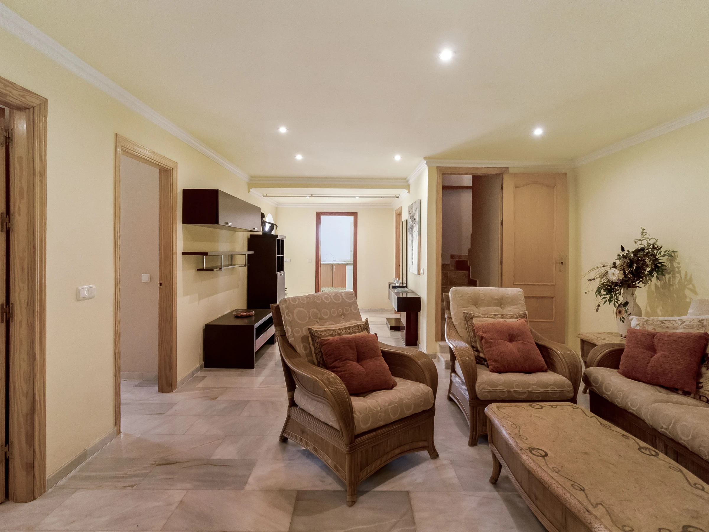 On accède à la Villa par un portail en bois ou par le portail automatique qui mène à une rampe permettant de garer jusqu'à 6 voitures. À côté de l'entrée, on trouve un porche coloré avec des fleurs et une fontaine en céramique de style andalou qui mènent à la porte principale de la villa. Depuis le distributeur, on accède d'un côté à la cuisine spacieuse et lumineuse, entièrement équipée, avec salle à manger et accès à la zone de stationnement. D'un autre côté, à un grand salon avec cheminée et accès à la terrasse ensoleillée avec vue sur la piscine et la mer. D'un autre côté, à un couloir avec toilettes et accès à la magnifique chambre avec dressing, salle de bains attenante et accès à la terrasse.