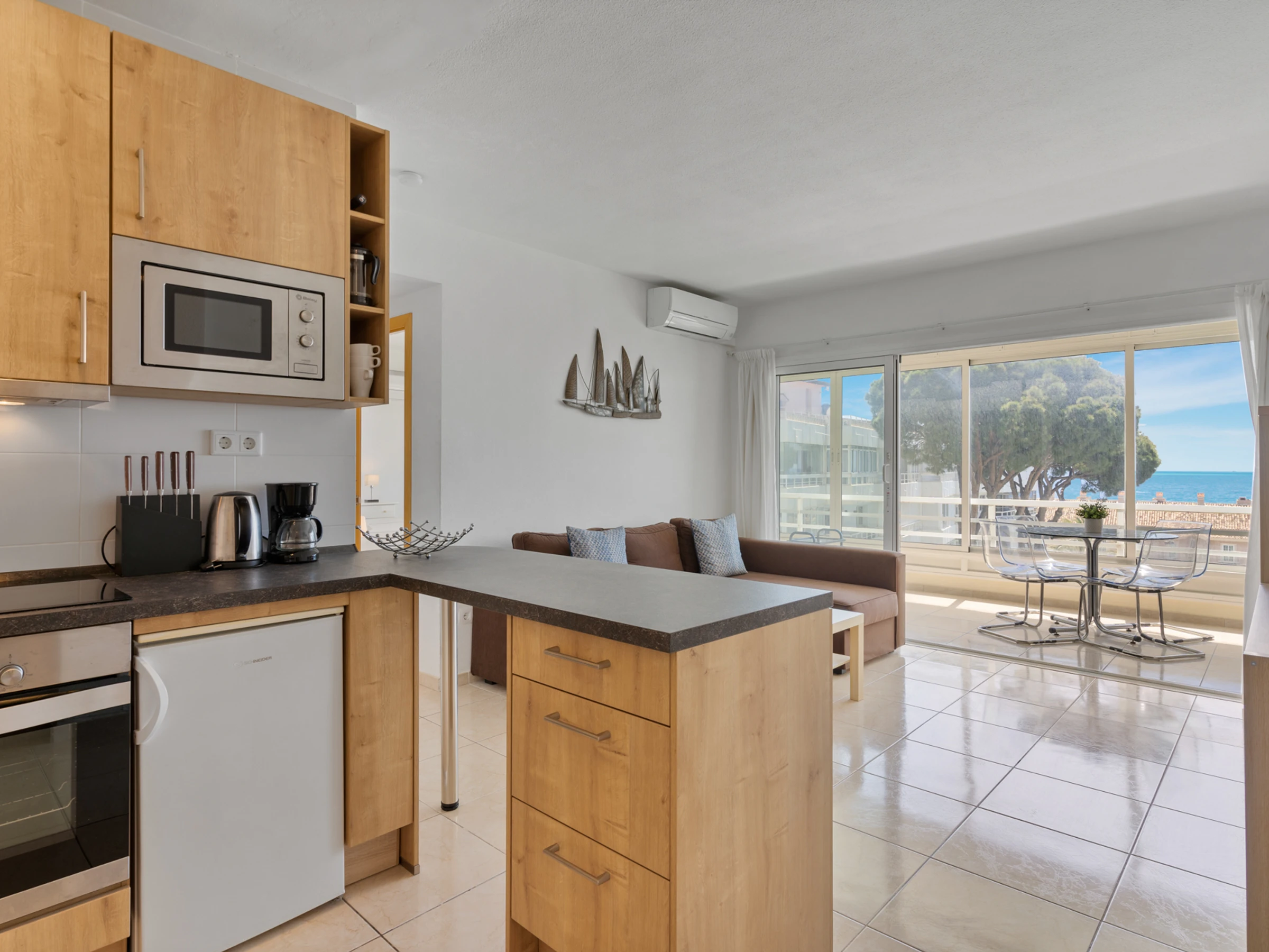 La cuisine, est équipée avec réfrigérateur, micro-ondes, four, congélateur, ustensiles/cuisine, cafetière, grille pain et bouilloire.