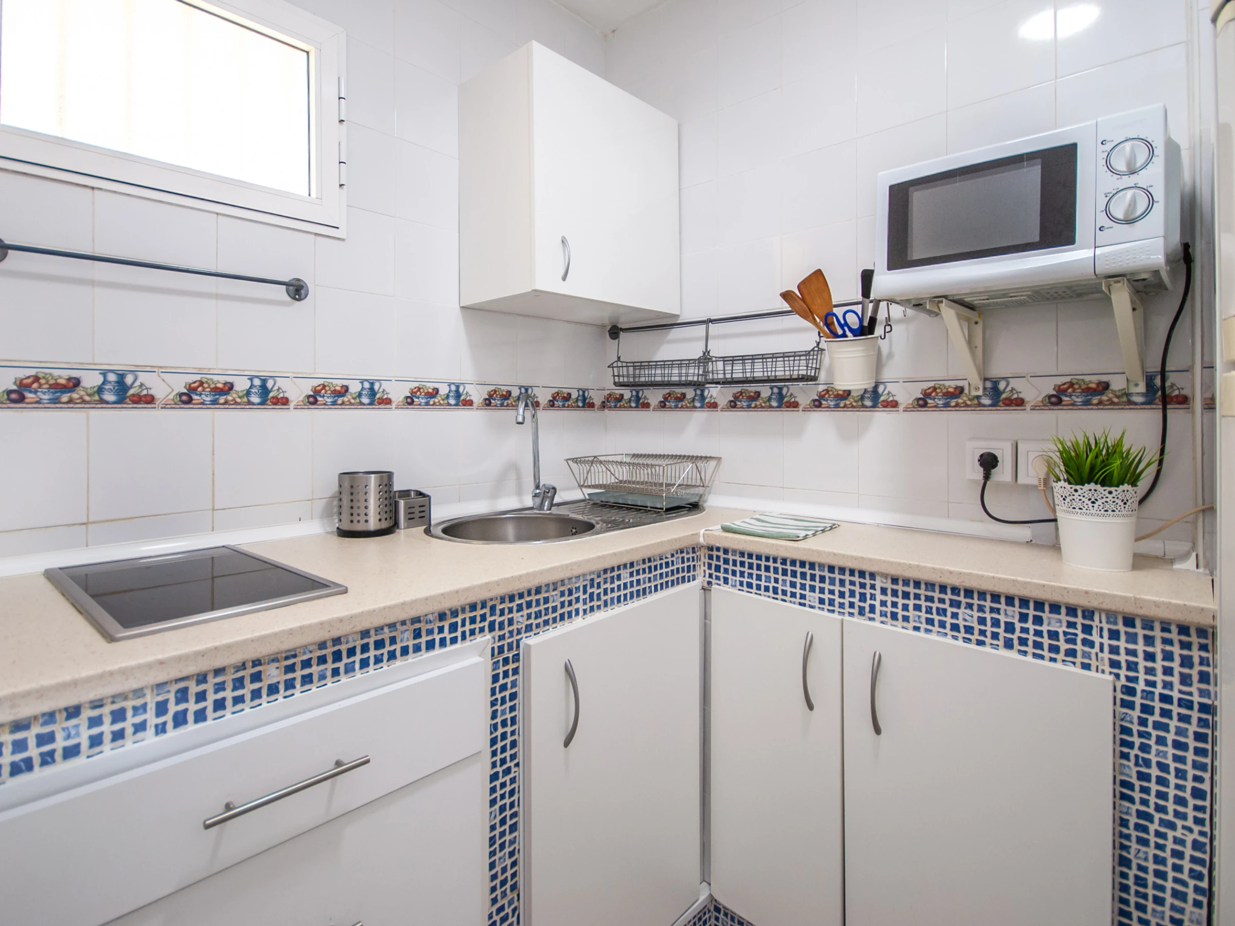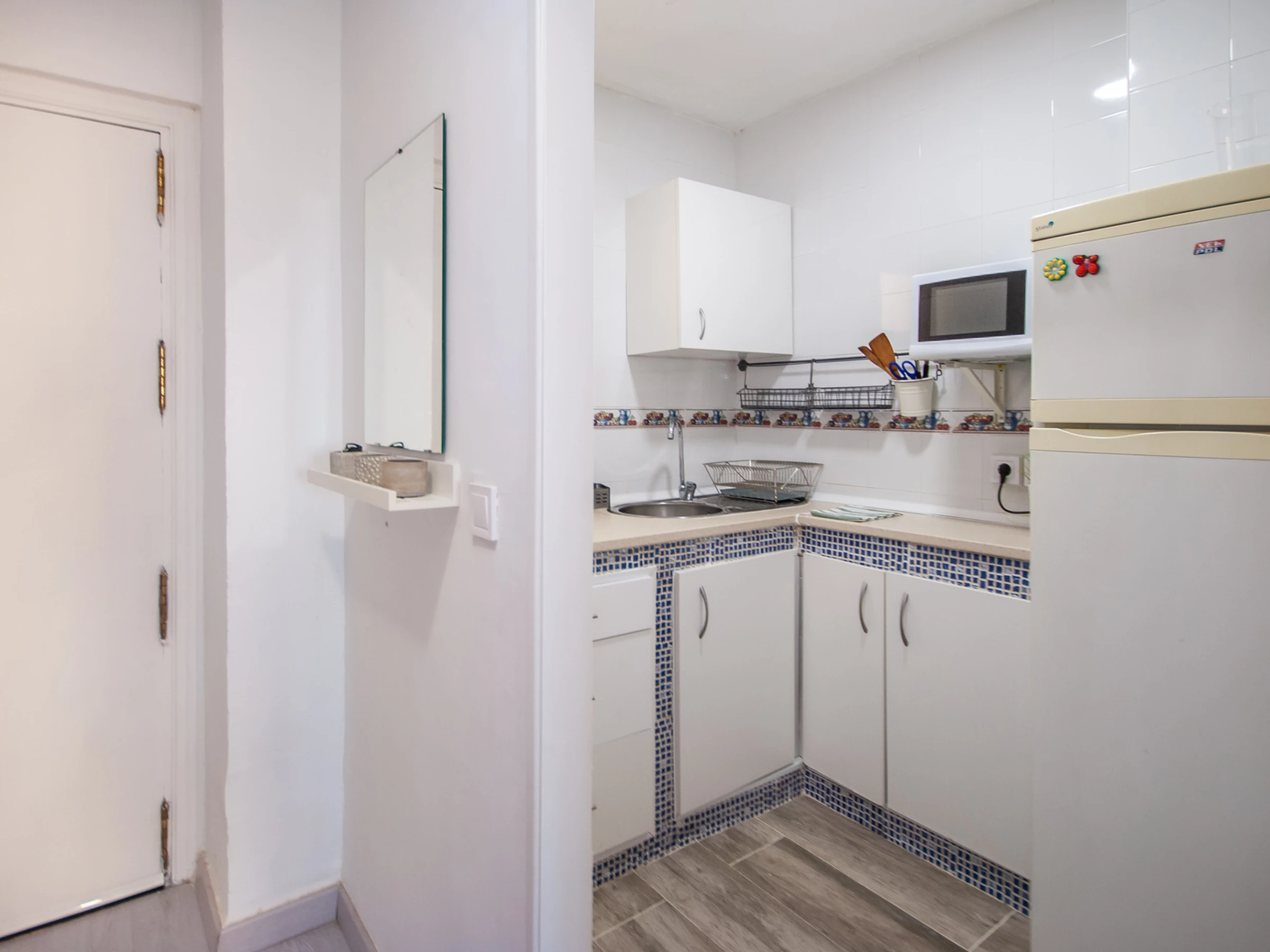 Découvrez ce lumineux et accueillant appartement à Benalmádena, parfait pour 2 personnes qui recherchent une expérience calme et confortable sur la Costa del Sol. Récemment rénové, il offre un salon-salle à manger avec un accès direct à une terrasse privée avec table, chaises et auvent, où vous pourrez profiter de la vue sur la mer et les jardins tout en vous détendant ou en dînant en plein air. La chambre double s'ouvre également sur la terrasse, garantissant une connexion parfaite avec l'environnement naturel. La cuisine indépendante est entièrement équipée avec une plaque à induction pour préparer vos plats préférés, et la salle de bain complète dispose d'une baignoire pour un repos total. De plus, il dispose de la climatisation et du WiFi gratuit pour votre confort.