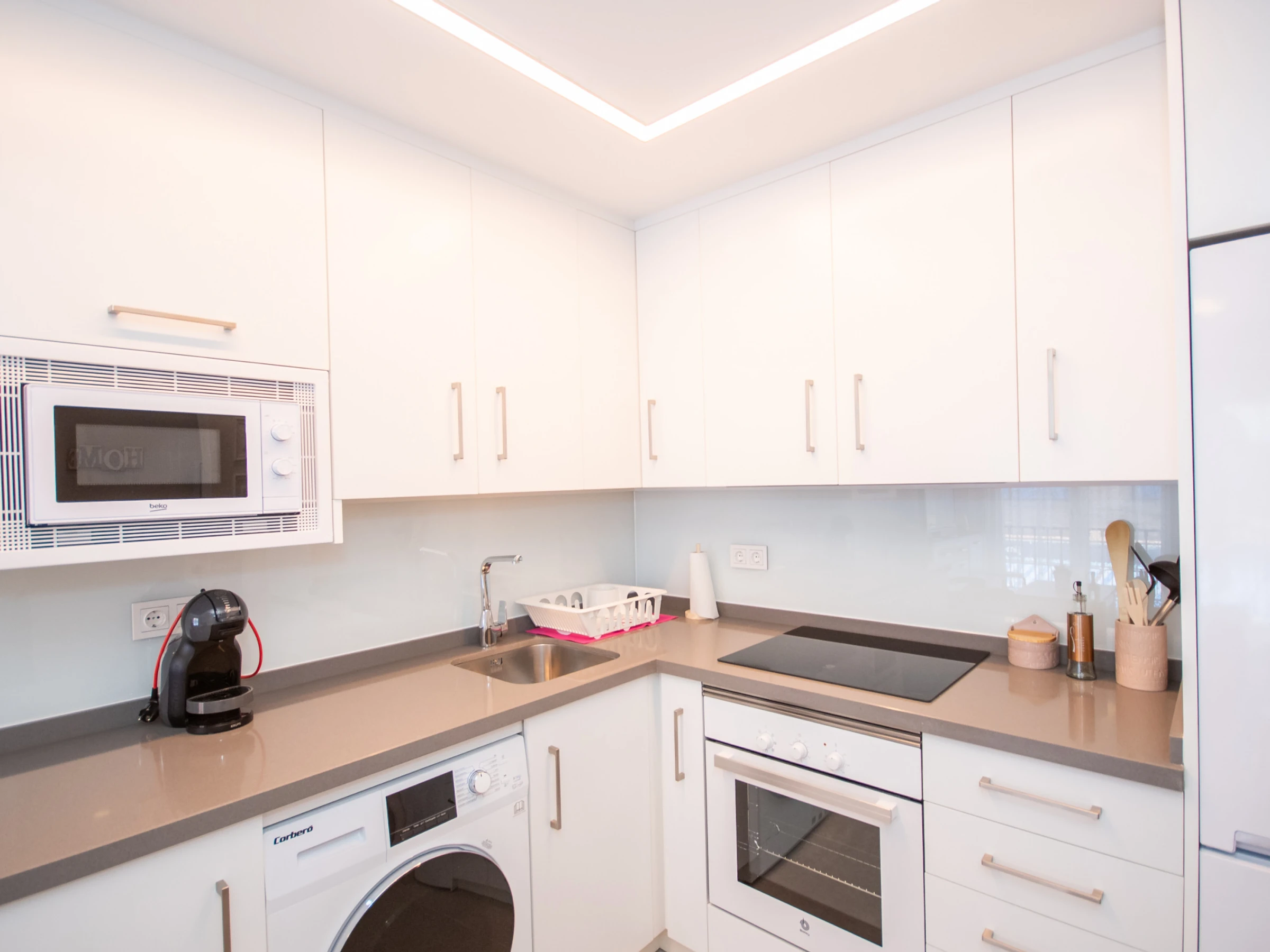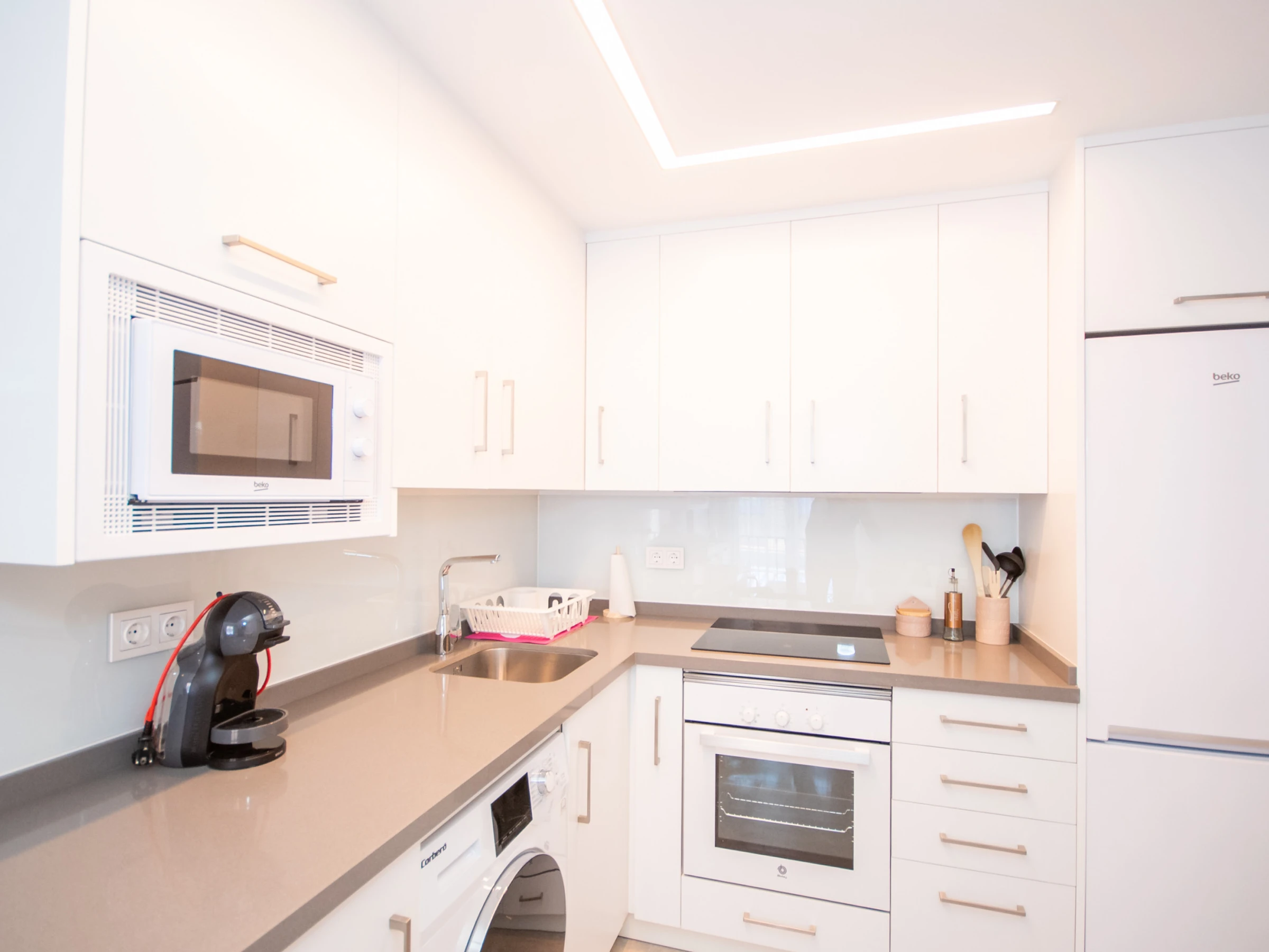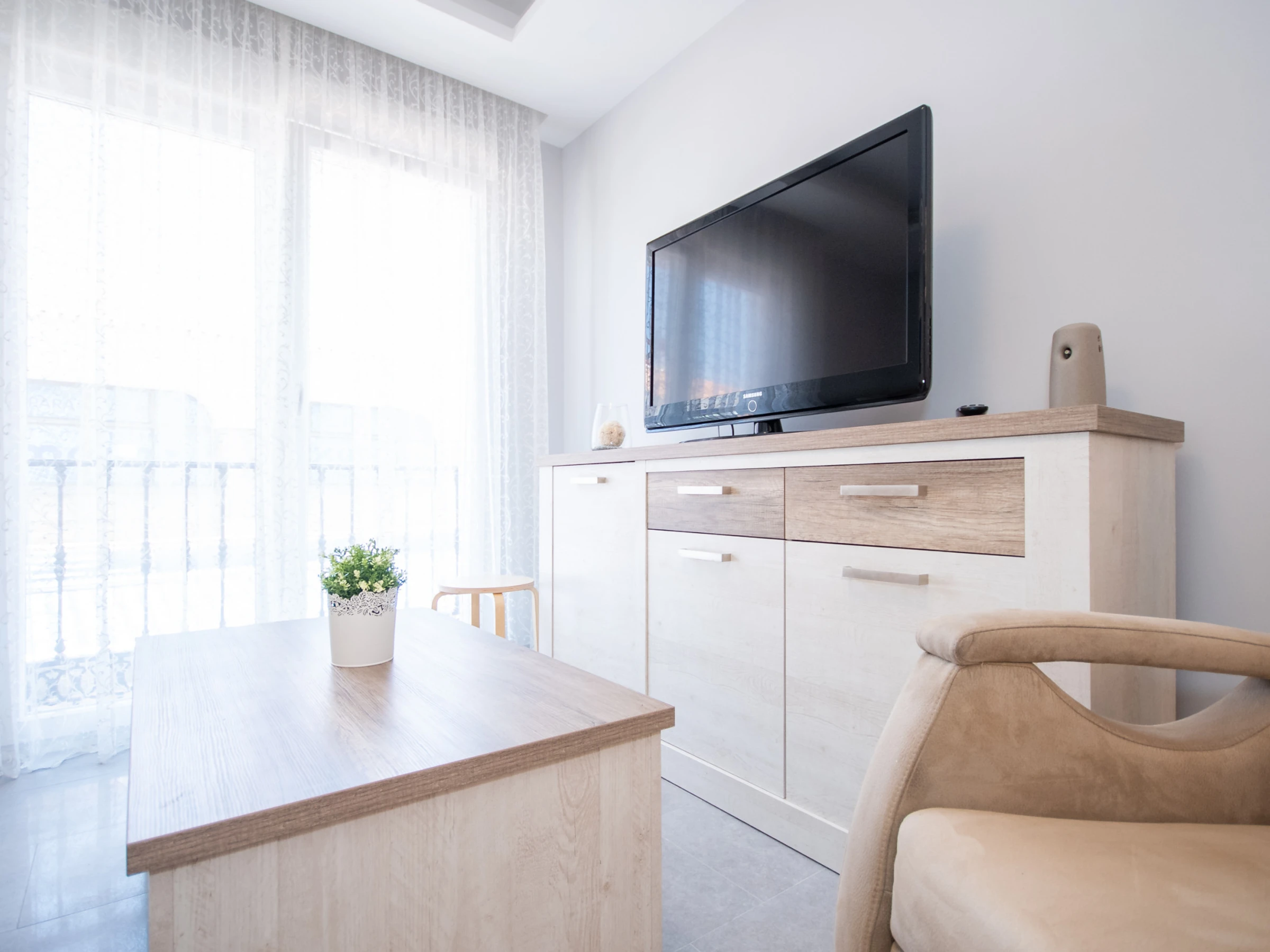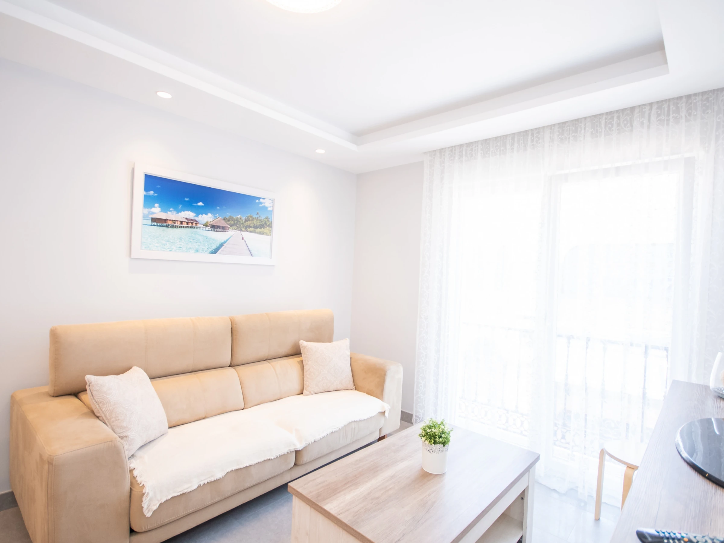 L'appartement, rénové en 2019, offre une cuisine américaine entièrement équipée pour préparer vos plats préférés 🍽️, un salon accueillant avec Smart TV et WiFi gratuit pour vous détendre après une journée remplie d'aventures 🛋️, et un air conditionné centralisé avec des fenêtres à double vitrage pour une ambiance fraîche et calme ❄️. La distribution comprend une chambre principale avec un lit de couple et une chambre secondaire avec un lit gigogne 🛏️.