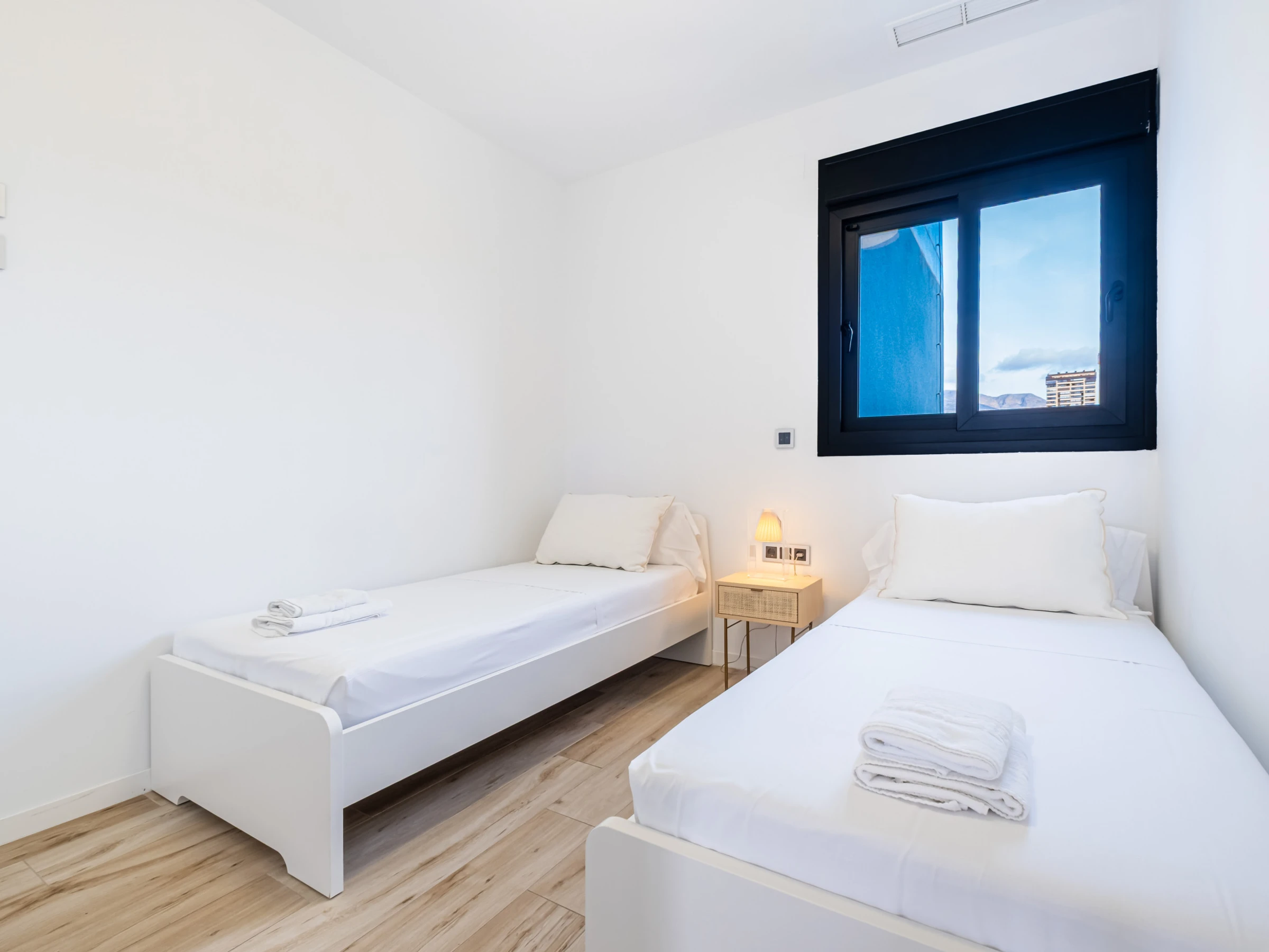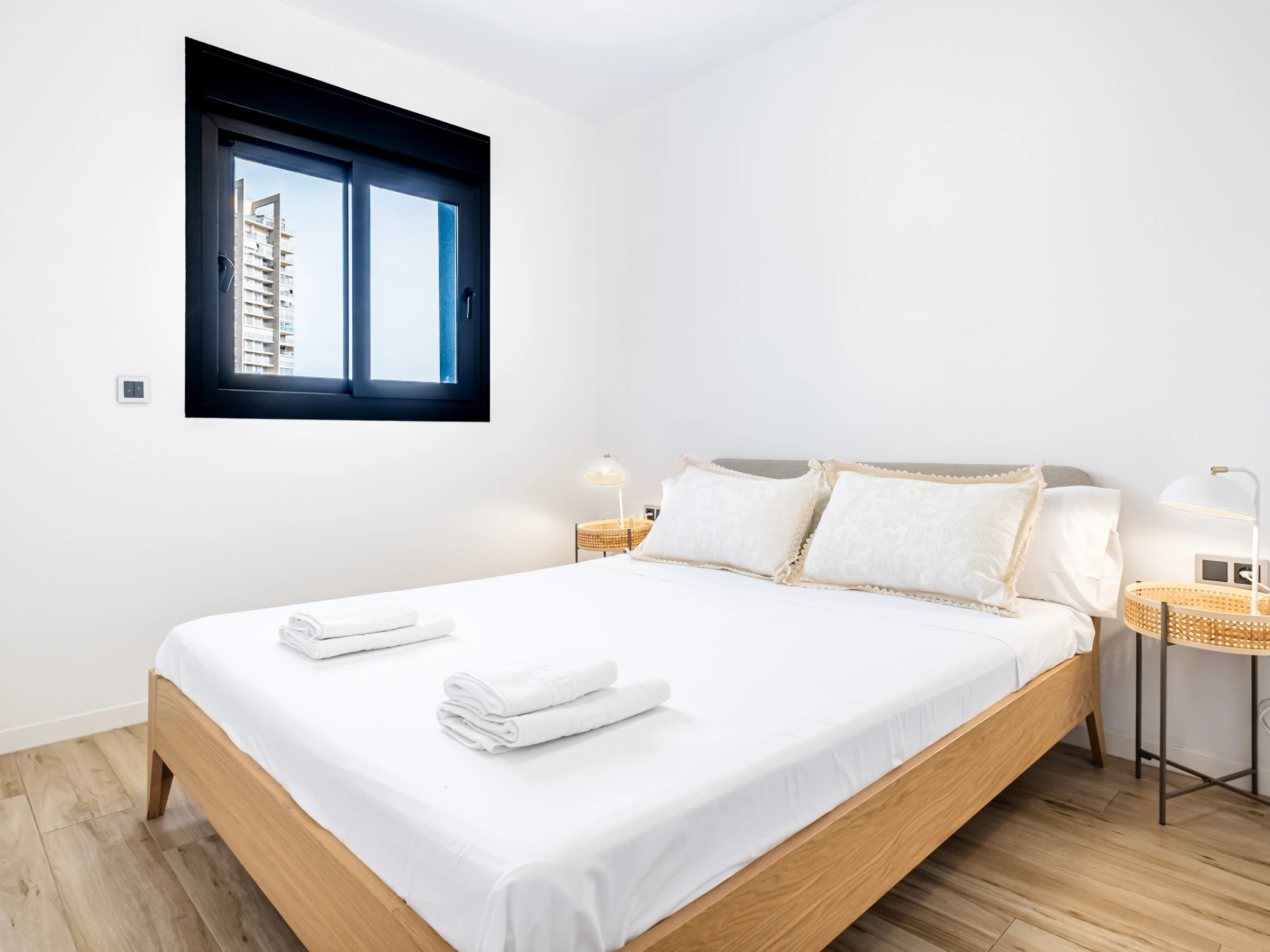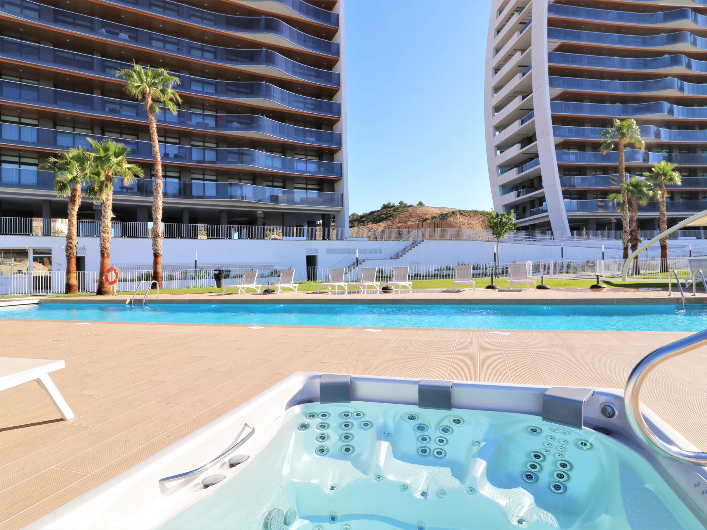 Appartement situé dans la résidence Sunset Waves sur la Plage de Poniente, dispose de 3 chambres, deux salles de bains avec douche (principale en suite) et capacité pour 6 personnes.
