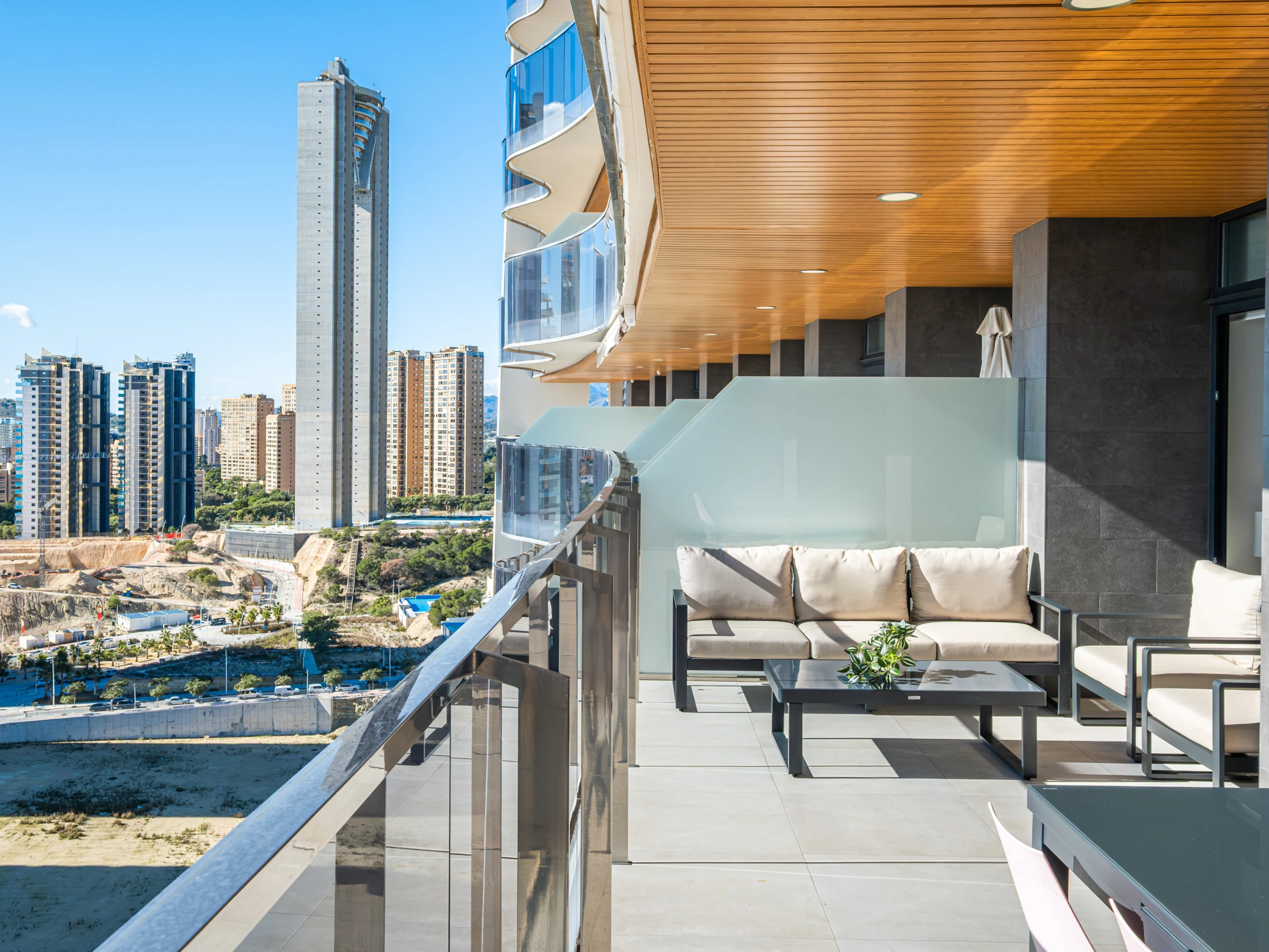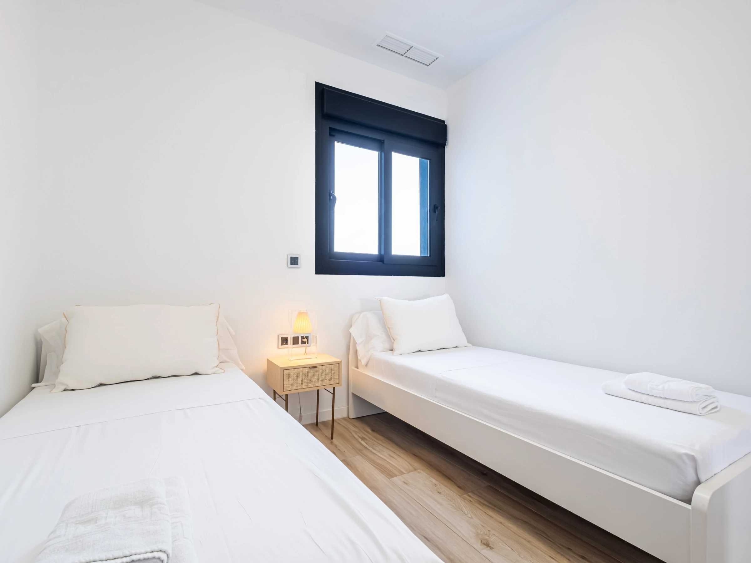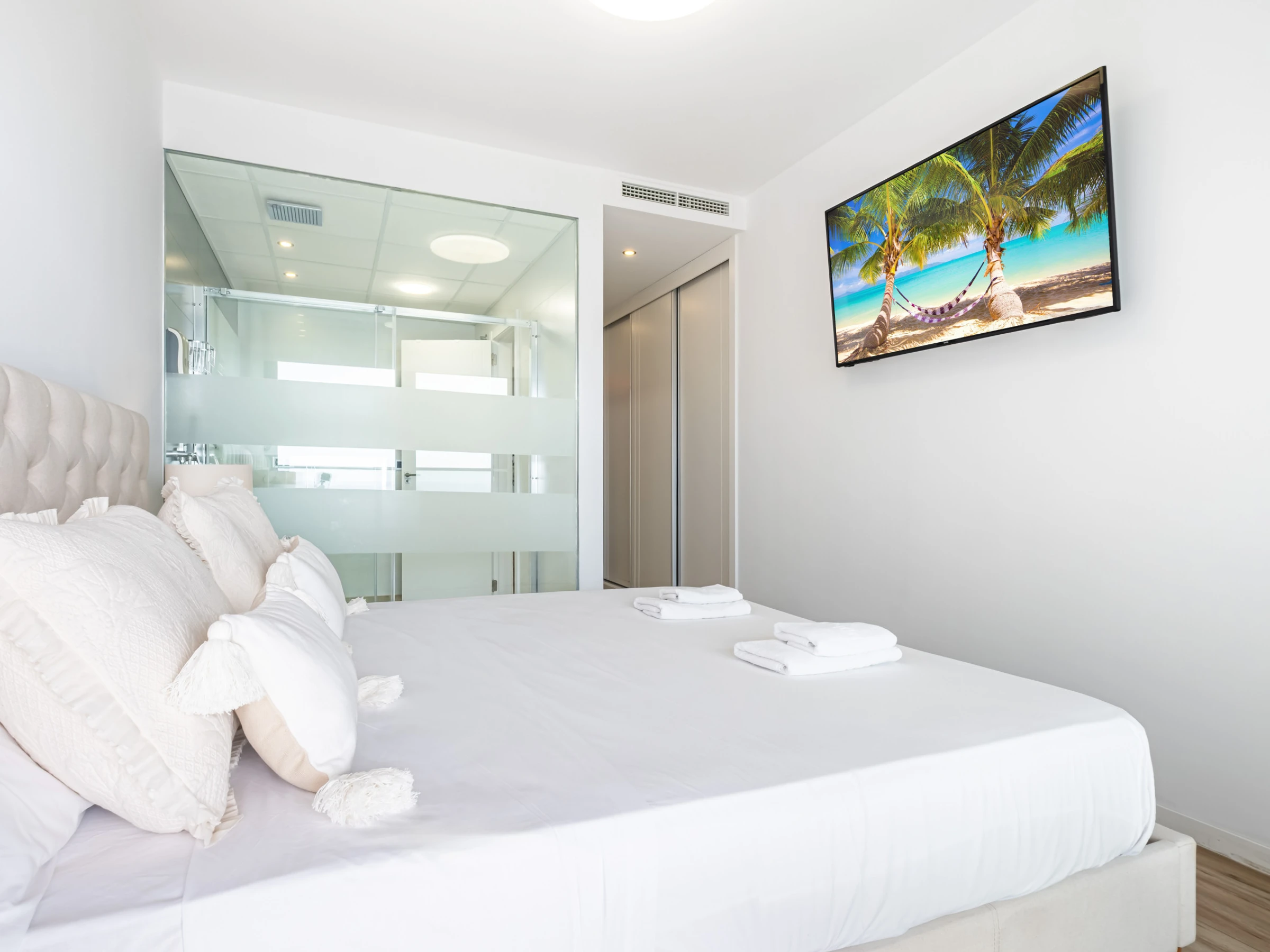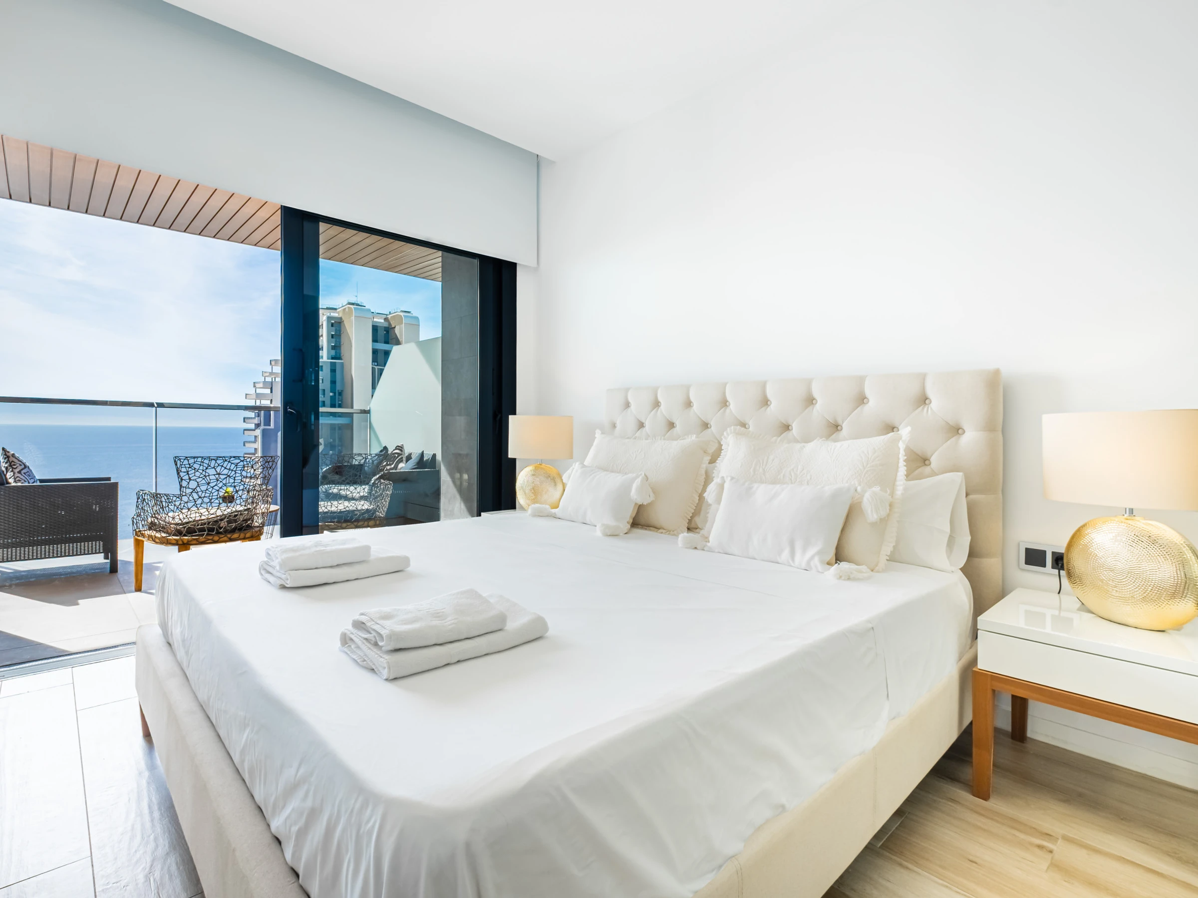 Appartement situé dans la résidence Sunset Waves sur la Plage de Poniente, dispose de 3 chambres, deux salles de bains avec douche (principale en suite) et capacité pour 6 personnes.