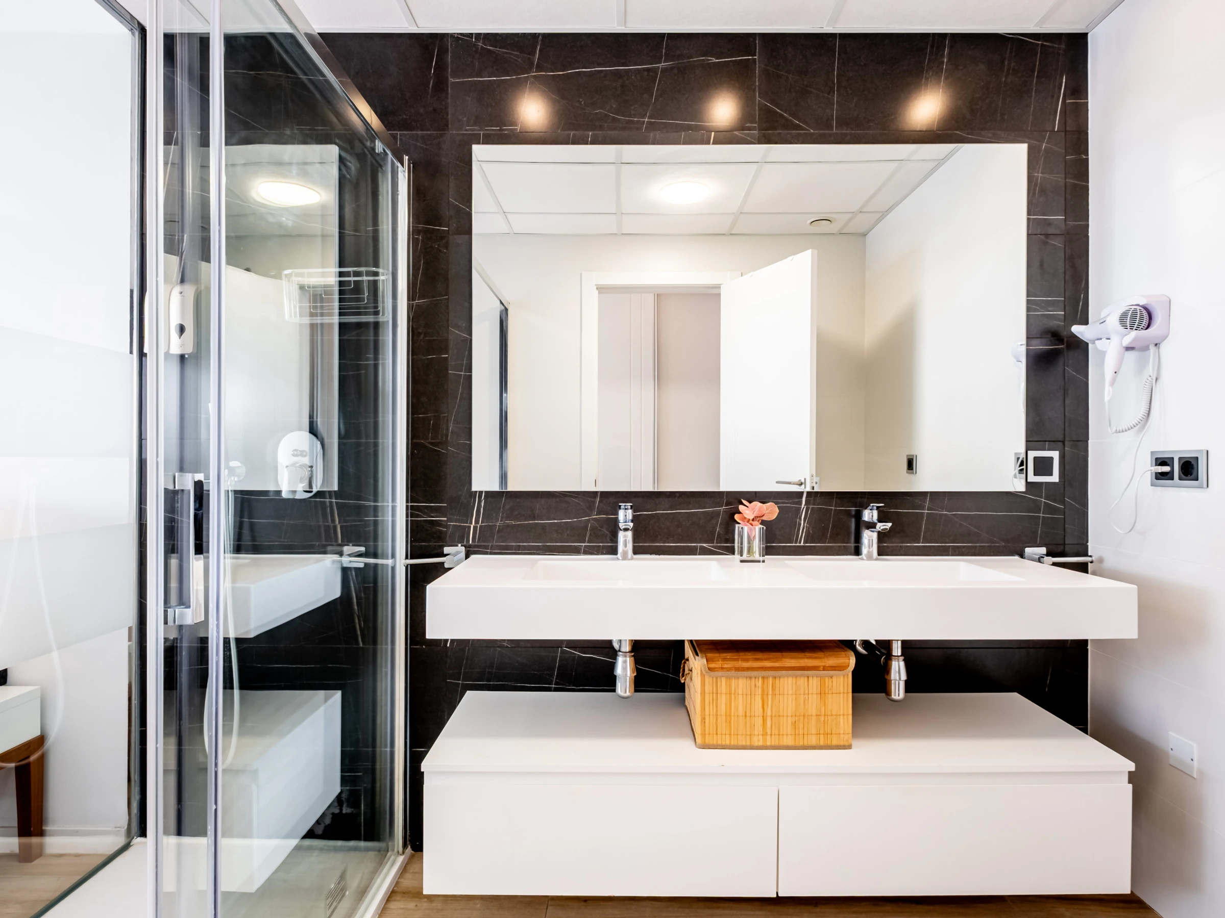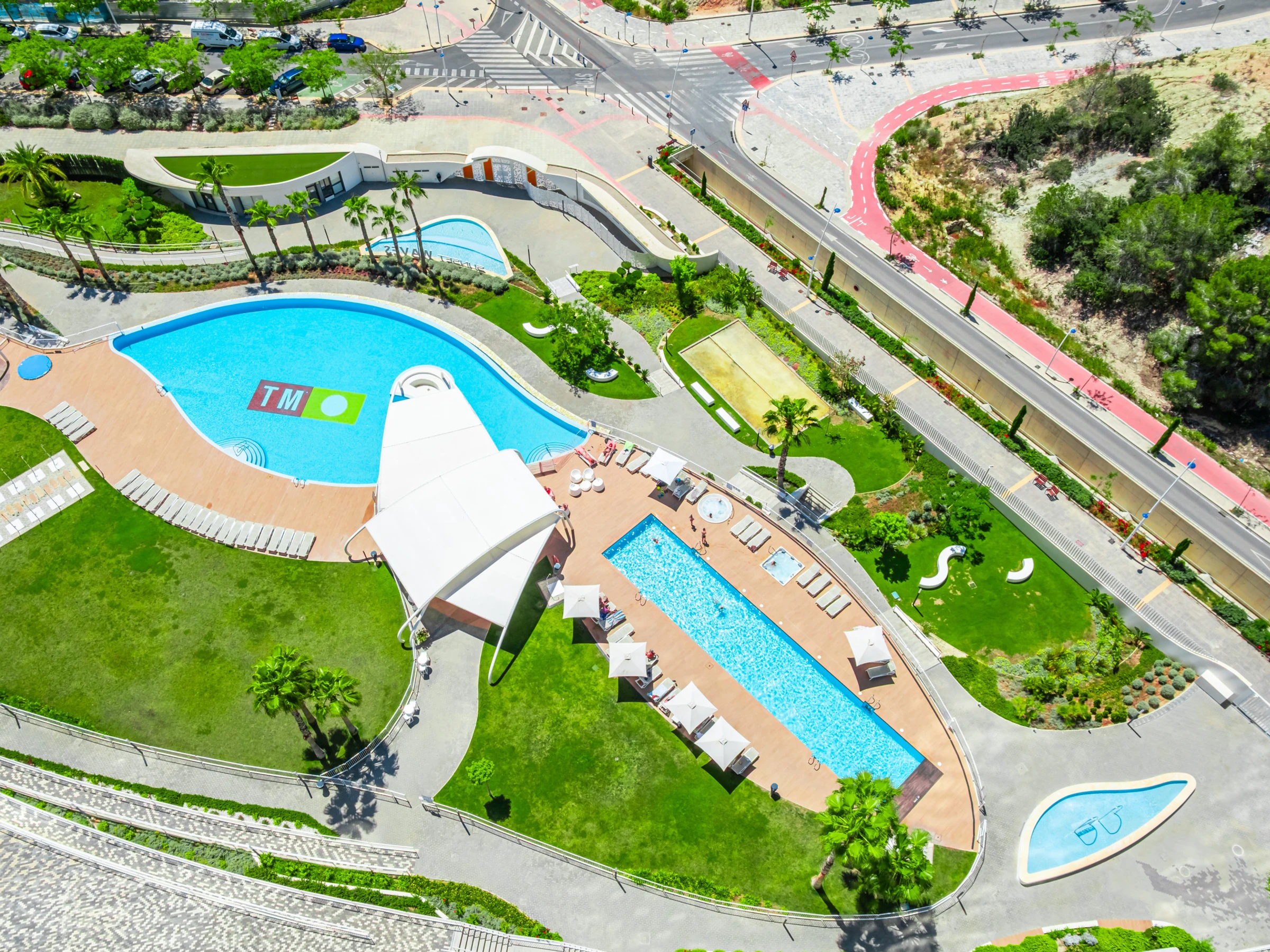 Urbanisation conçue pour le plaisir de nos invités, dispose d'une piscine à débordement avec bar dans la zone peu profonde, entourée de gazon naturel avec des transats, zone de solarium et douches communes. Piscine chauffée en plein air avec deux couloirs de nage, 3 jacuzzis extérieurs (2 installés dans la zone de transats et de piscine, et 1 installé près de la piscine pour enfants), Gymnase complet avec vue sur les jardins et la piscine, Sauna, Zone de jeux extérieure pour enfants, aire de jeux, Mur d'escalade pour enfants, terrain de paddle, court de tennis, tables de ping-pong, terrain de football et terrain de basket.