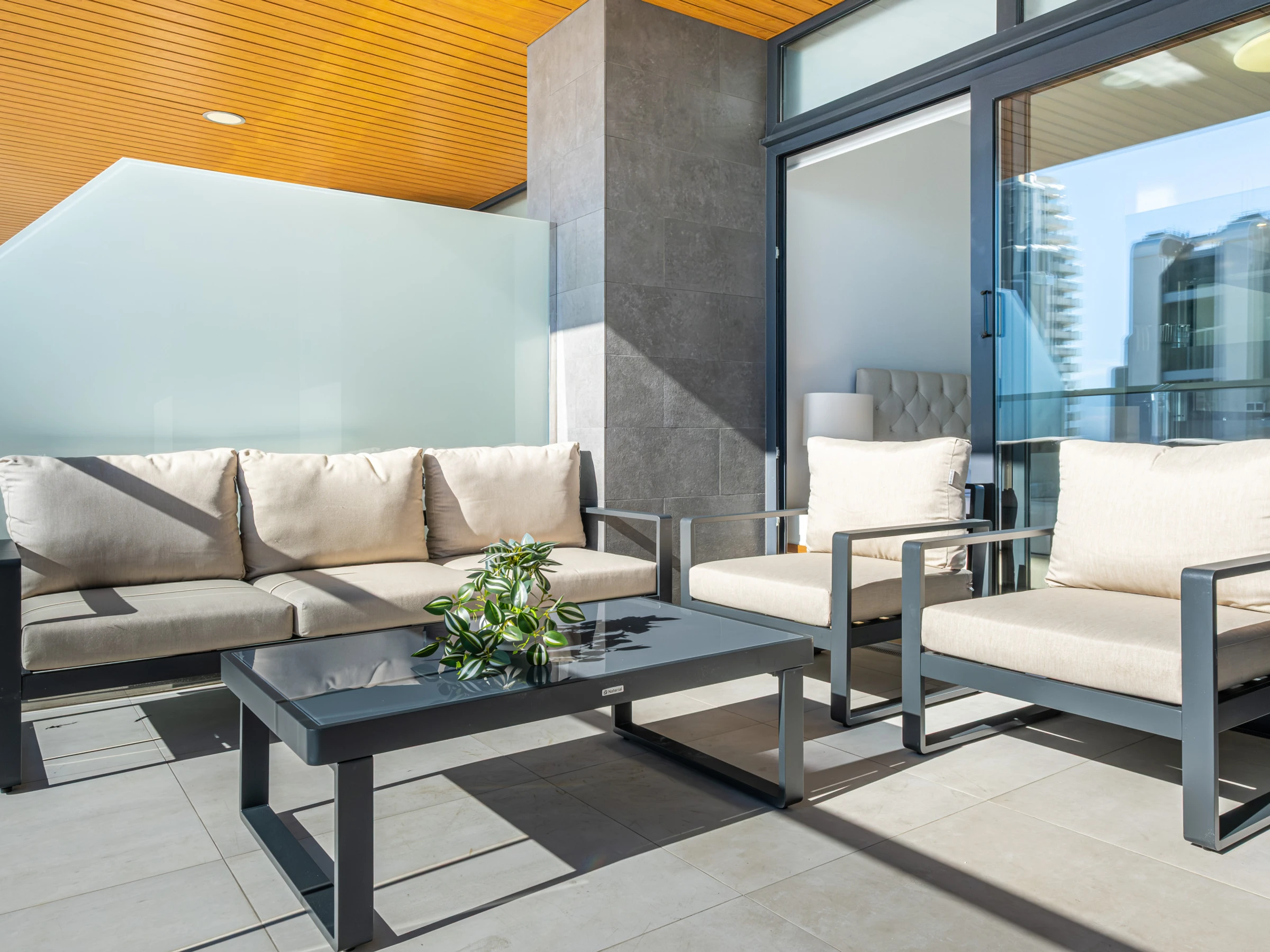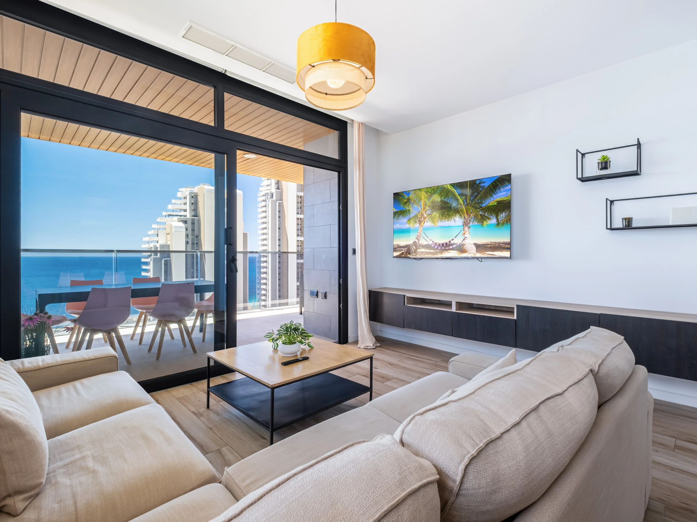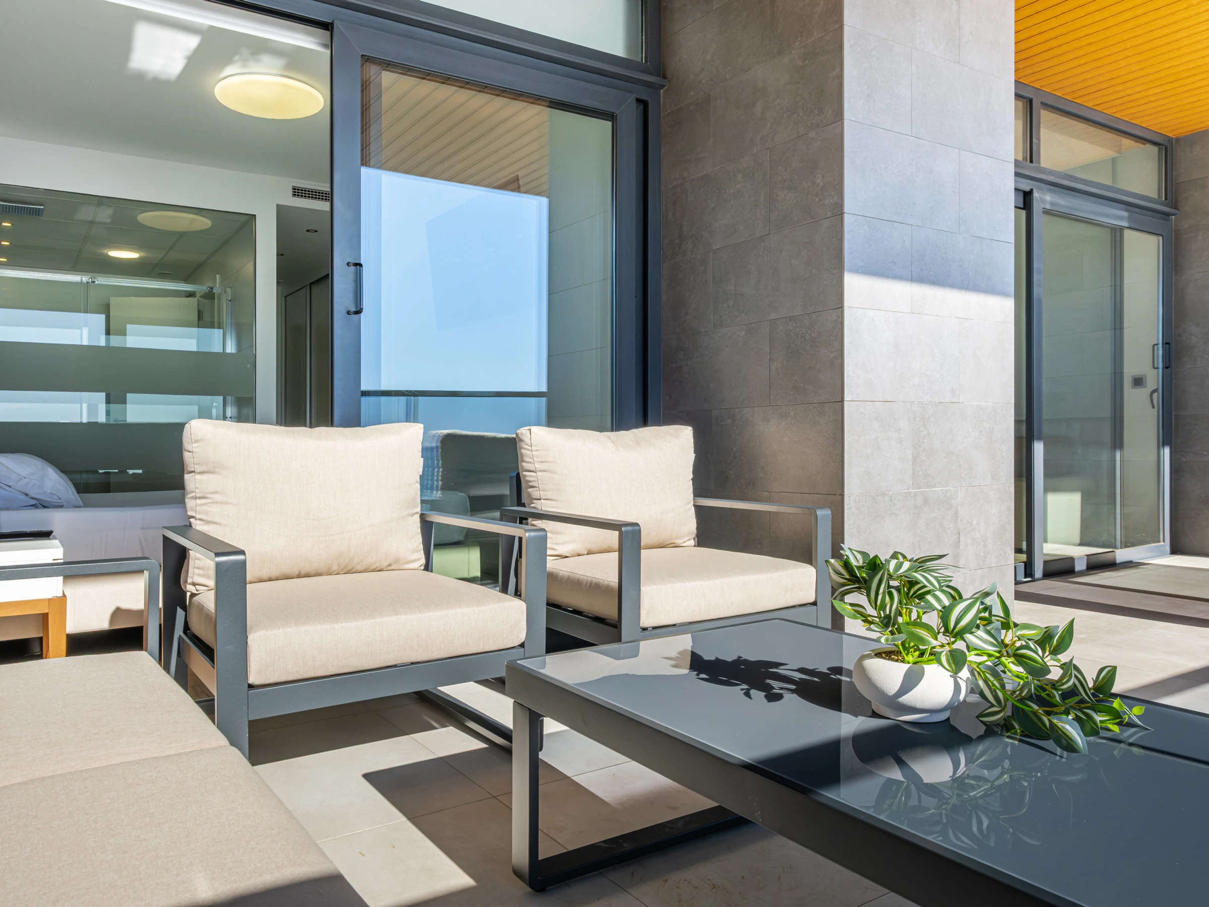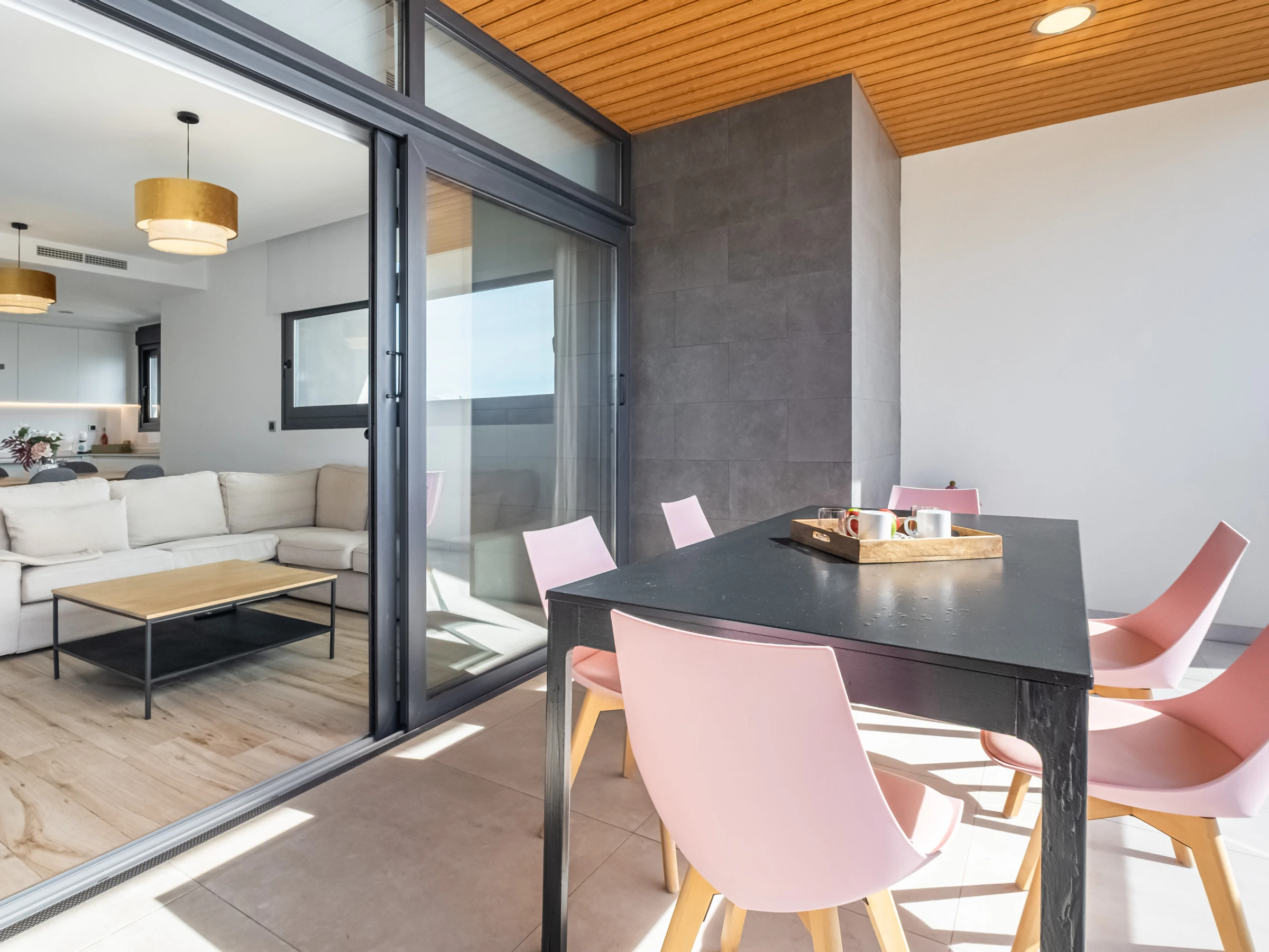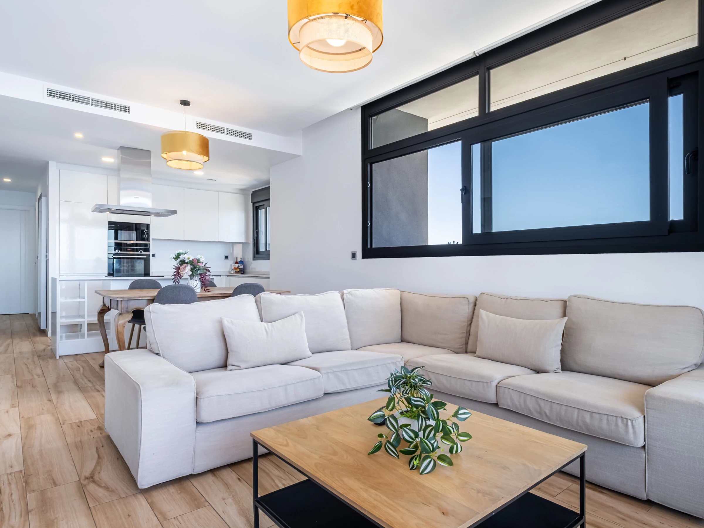Logement de 111 m² confortable et de construction récente, avec vue panoramique sur la mer, la ville et la montagne.
