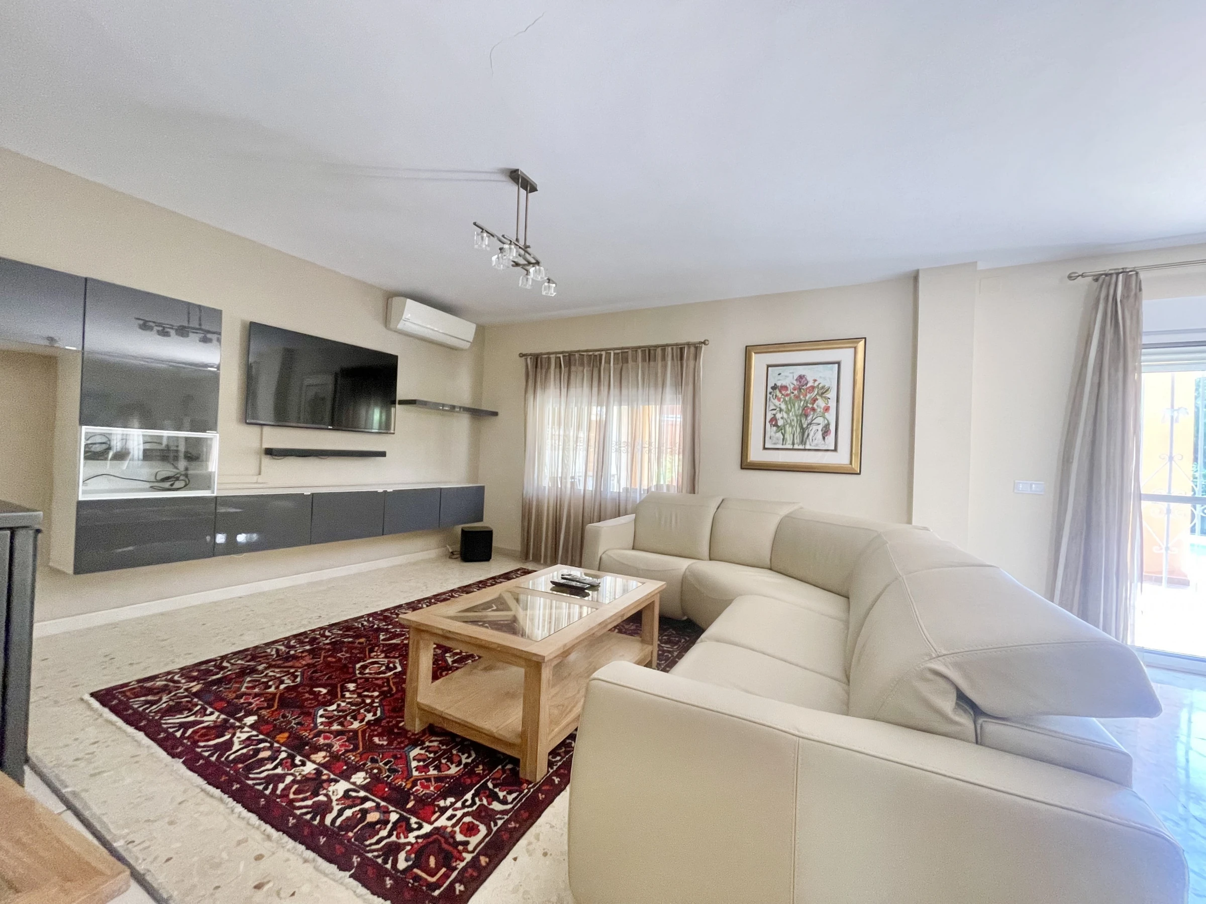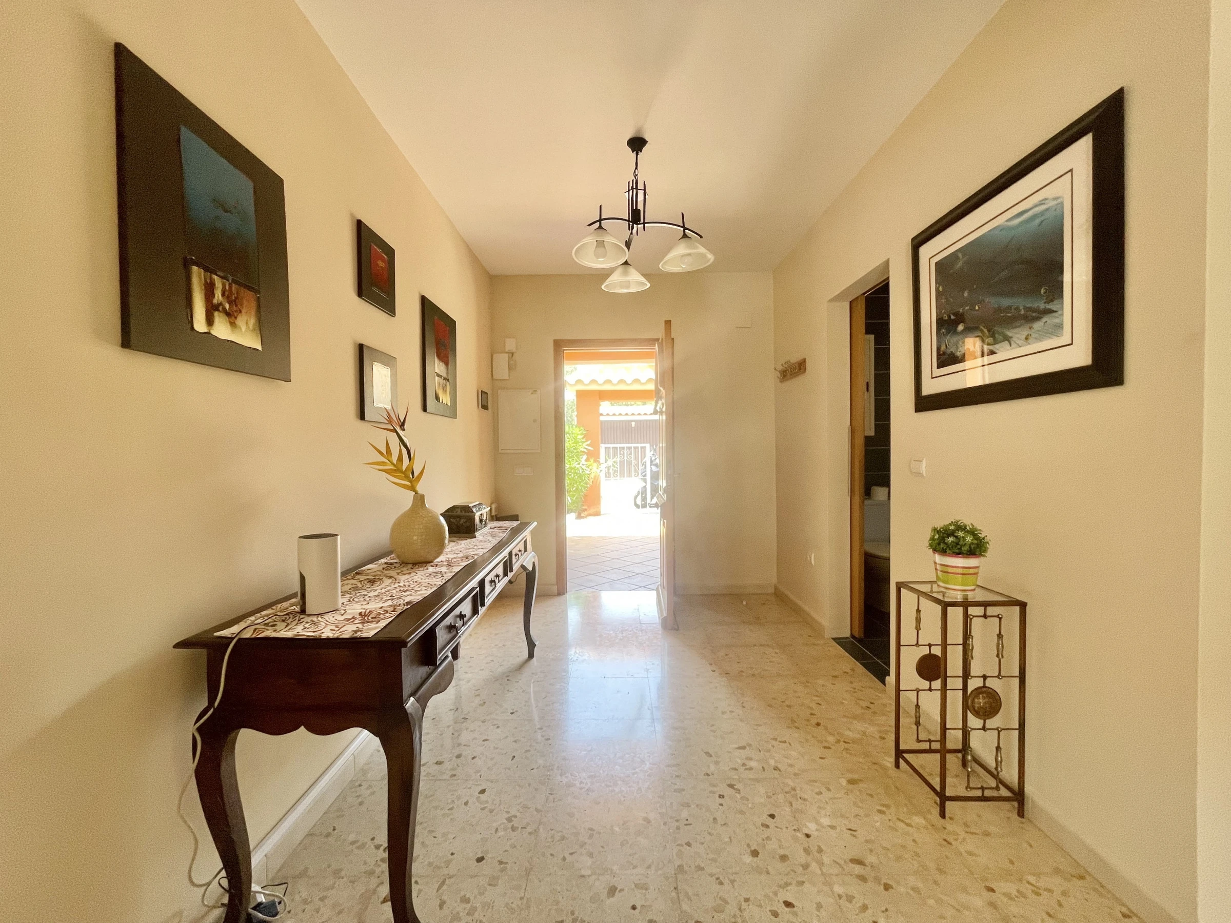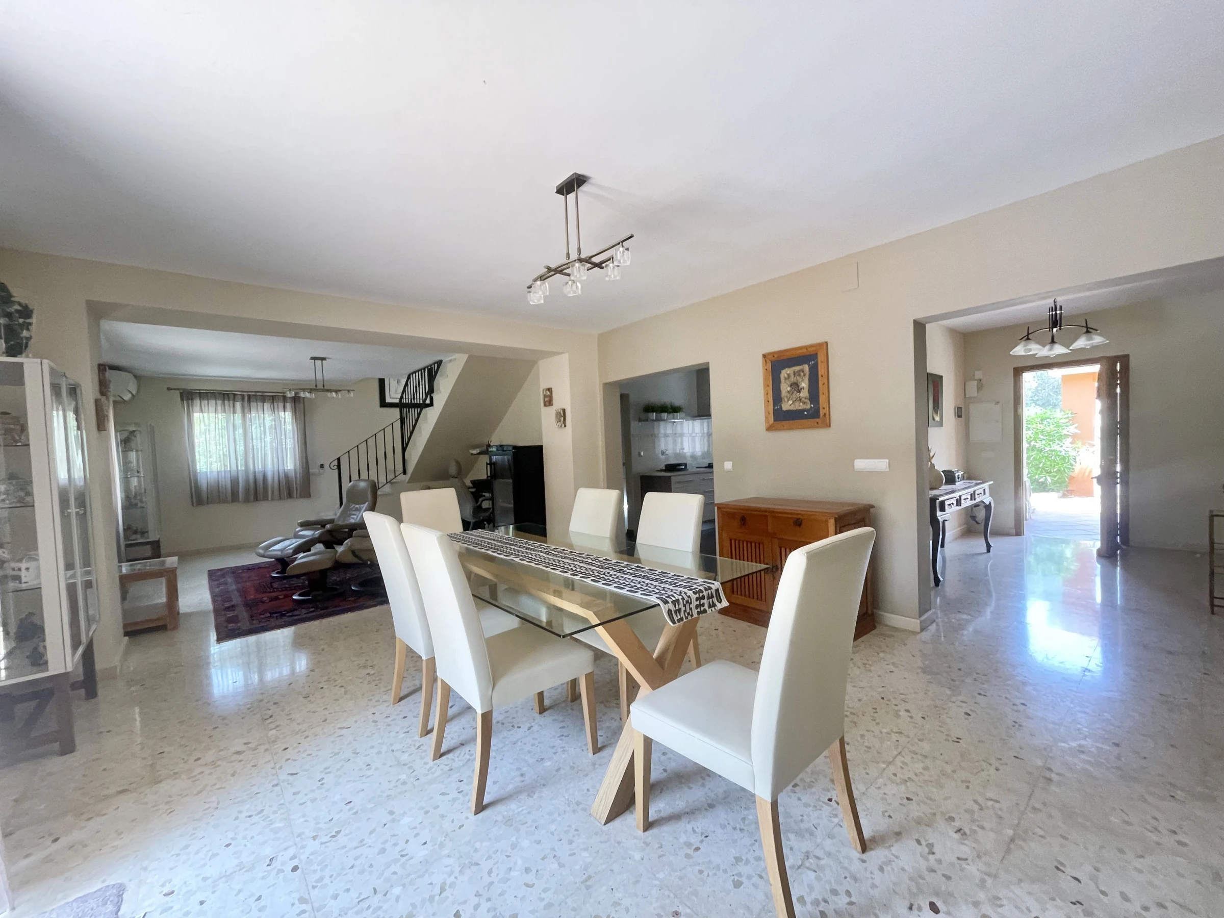 La maison, avec 300 m2 de superficie, est répartie sur deux étages. Le rez-de-chaussée dispose d'un magnifique hall d'entrée avec des toilettes de courtoisie, une grande chambre avec un lit double, des armoires encastrées et une télévision à plasma. Le hall d'entrée donne accès à un immense salon-salle à manger avec des canapés et des fauteuils confortables en cuir, une télévision à plasma, une cheminée et une table de salle à manger avec des fauteuils en cuir. Le salon a un accès direct à la zone extérieure et à une cuisine moderne entièrement équipée.