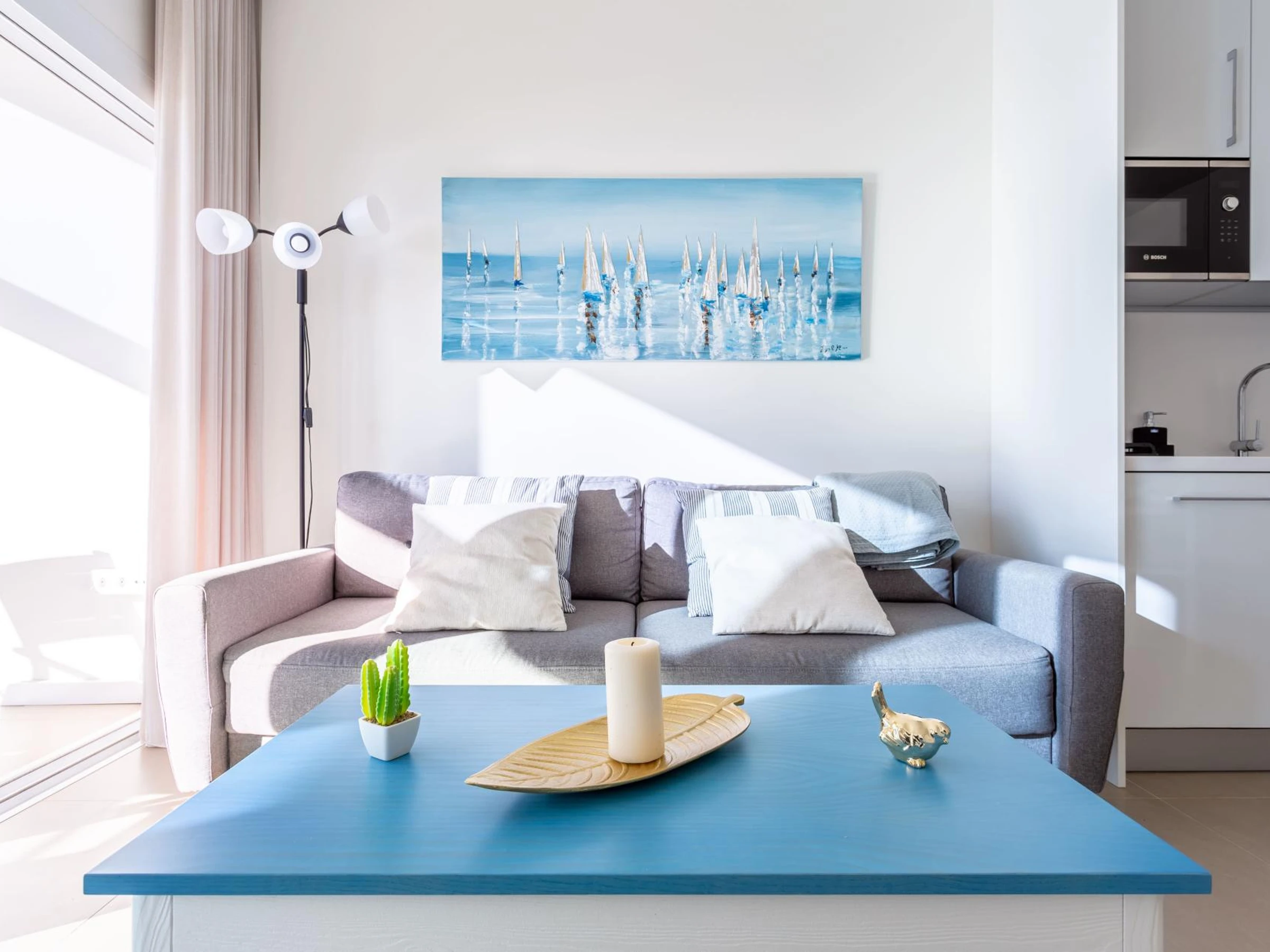 Les installations de l'appartement sont exceptionnelles. Il dispose de deux salles de bains, l'une avec douche et l'autre avec baignoire, facilitant le confort des invités. La cuisine indépendante est entièrement équipée d'électroménagers de marques reconnues tels que lave-linge, lave-vaisselle, four, micro-ondes et cafetière, permettant de préparer des repas pendant le séjour.