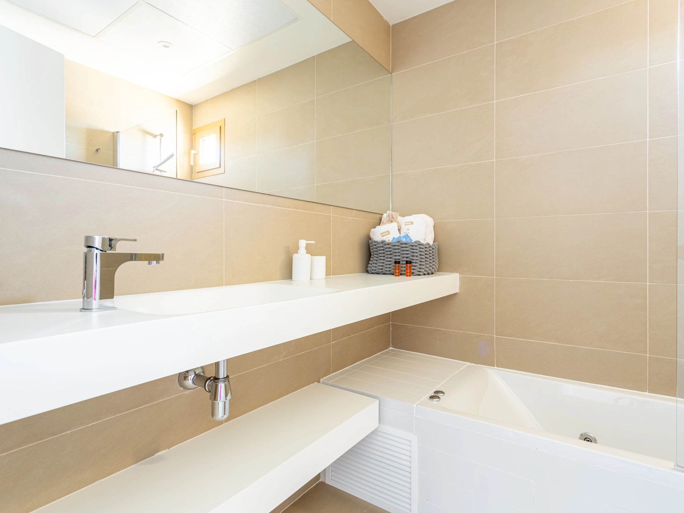 Les installations de l'appartement sont exceptionnelles. Il dispose de deux salles de bains, l'une avec douche et l'autre avec baignoire, facilitant le confort des invités. La cuisine indépendante est entièrement équipée d'électroménagers de marques reconnues tels que lave-linge, lave-vaisselle, four, micro-ondes et cafetière, permettant de préparer des repas pendant le séjour.