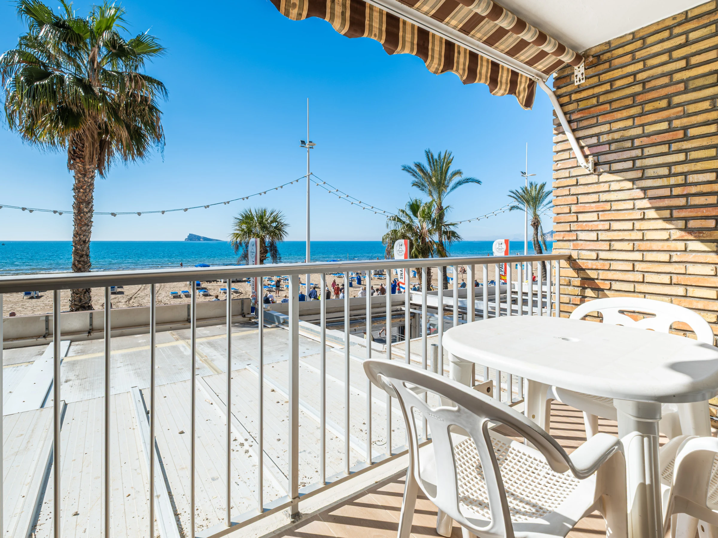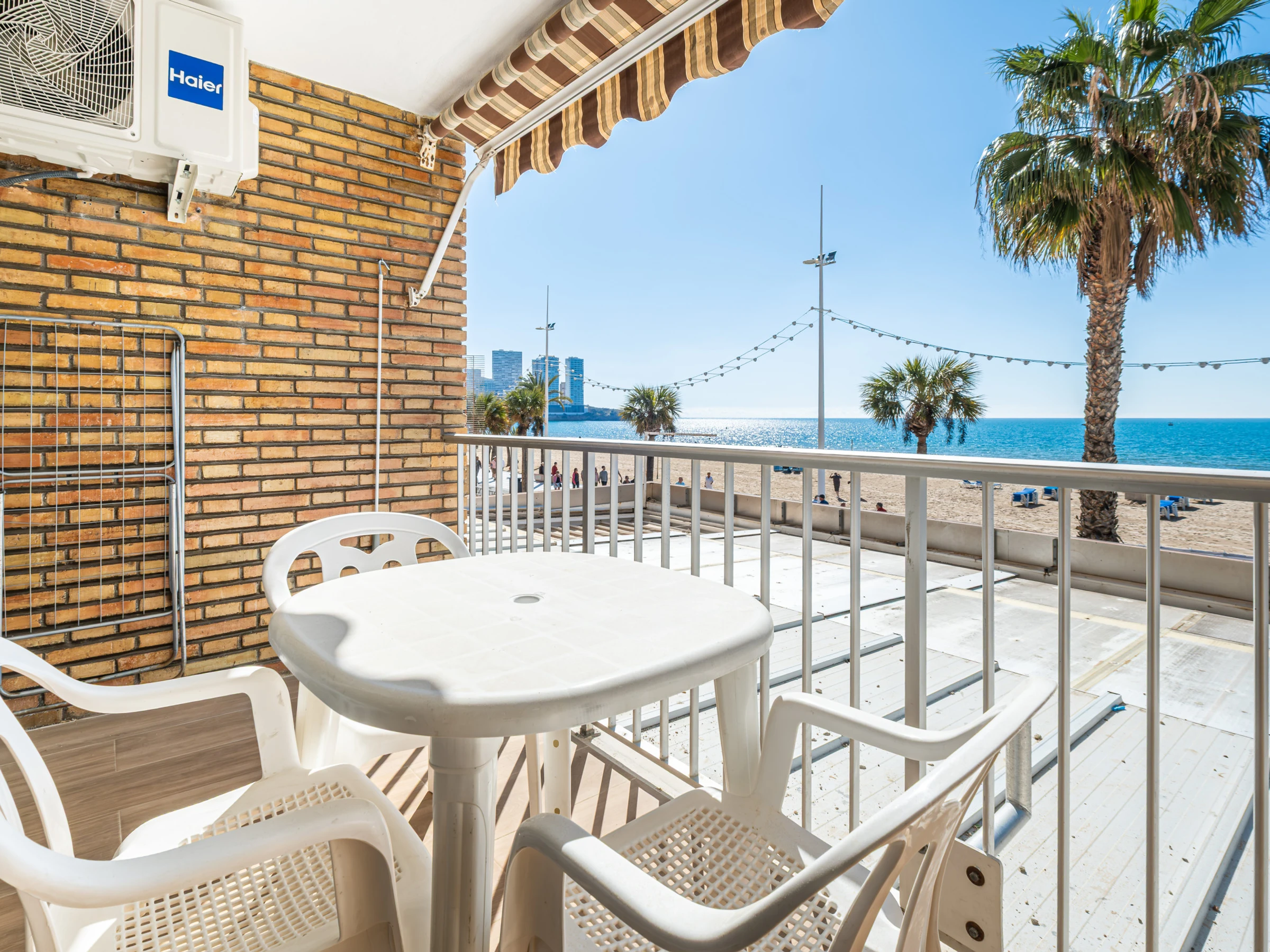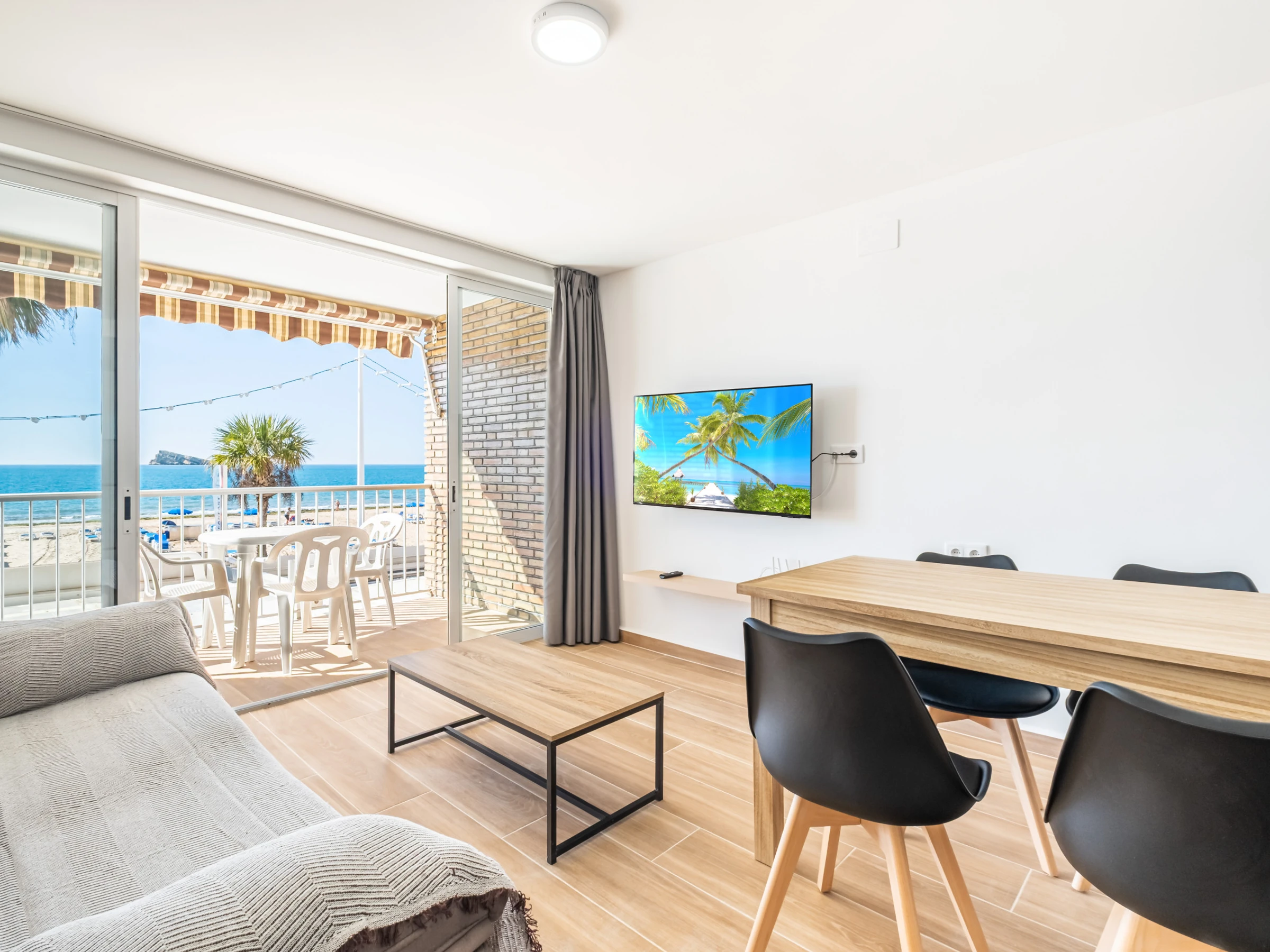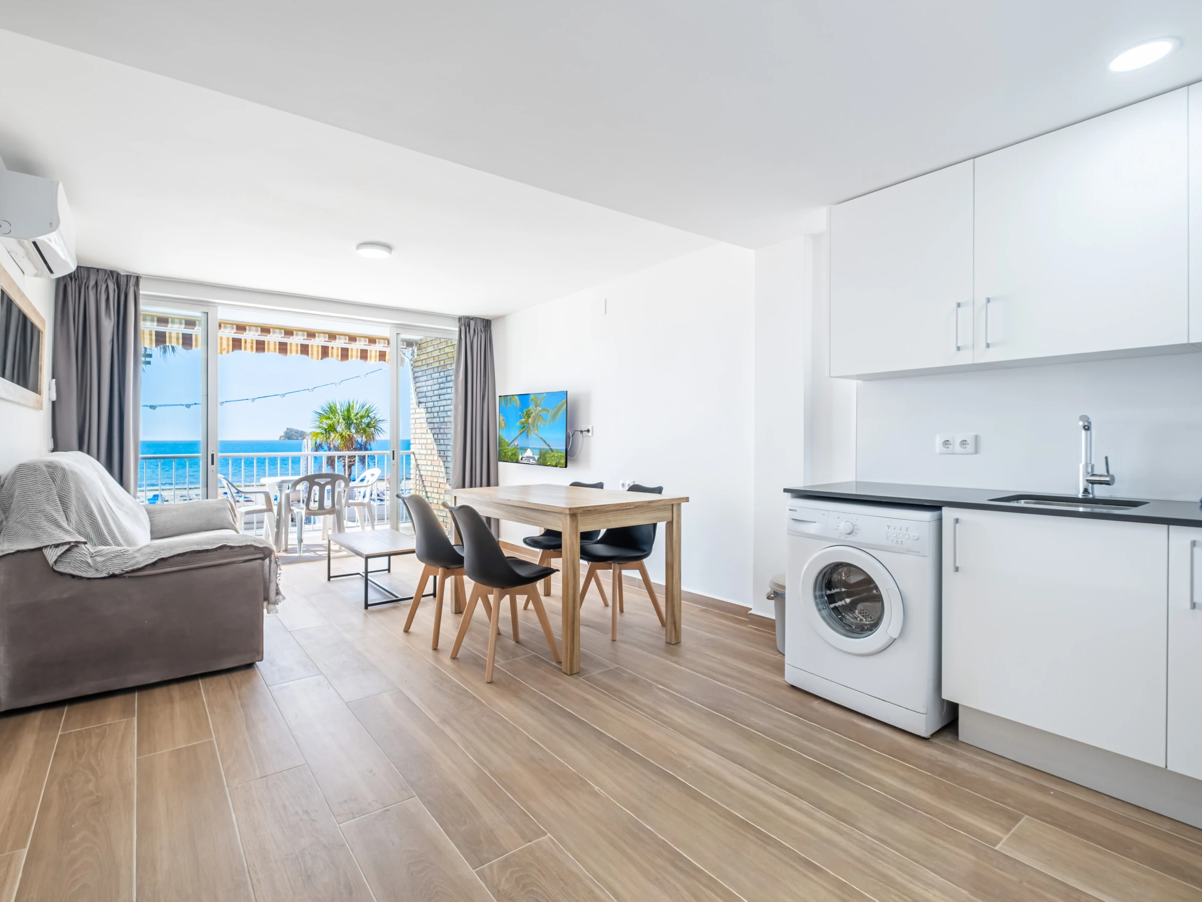 Appartement en première ligne de plage Levante, Benidorm, avec un accès direct à la plage depuis l'établissement même. Il dispose de 1 chambre avec climatisation, ventilateur et télévision, 1 salle de bain avec douche et sèche-cheveux, et peut accueillir 4 personnes avec deux places sur un canapé-lit double.