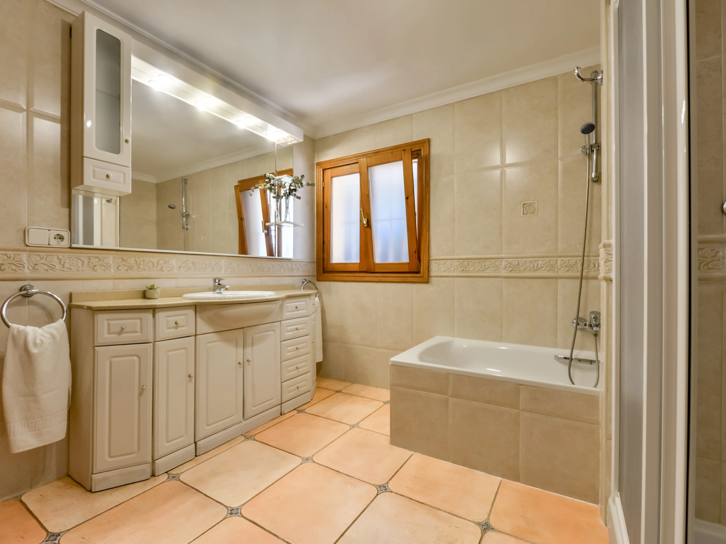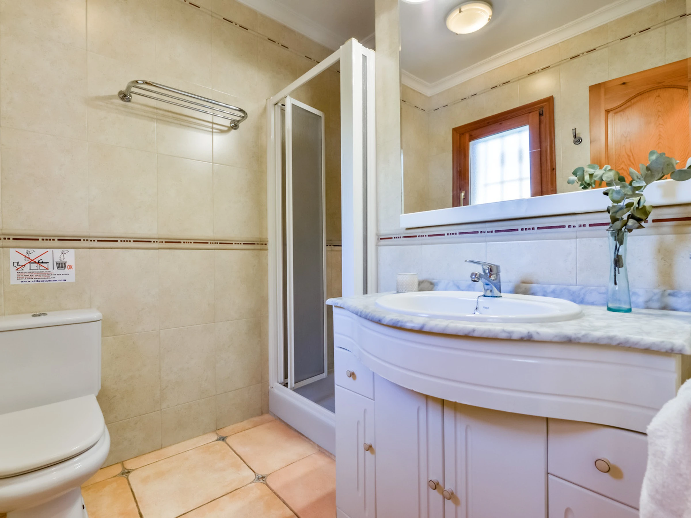 Dans la partie inférieure de la villa et au niveau de la rue, nous trouvons deux chambres indépendantes, l'une avec un lit double, un ventilateur de plafond et une salle de bain avec baignoire et douche et une salle de machine à laver, et une deuxième chambre indépendante avec un petit salon, une cuisine auxiliaire, une chambre avec deux lits simples et une salle de bain attenante avec baignoire.