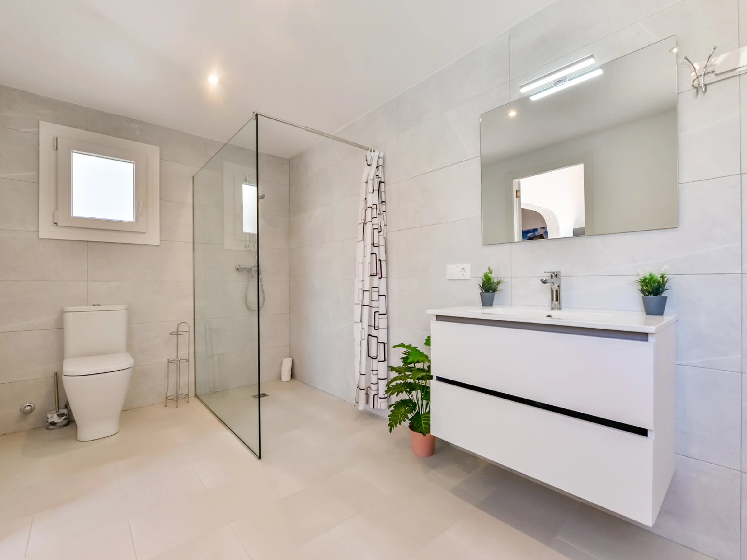 La villa a une surface habitable de 120 m2 et est distribuée sur un seul étage. La première chose que l'on trouve est une petite terrasse vitrée avec beaucoup de lumière naturelle, un réfrigérateur américain à deux portes, et relié par une arche, on trouve le salon avec un canapé, un coin TV et une table pour déjeuner et dîner, une chambre avec un lit double de 135, une deuxième chambre avec un lit double (deux lits simples ensemble), la troisième chambre a également deux matelas simples ensemble. Une salle de bain complète avec baignoire, une cuisine petite mais bien équipée et l'air conditionné centralisé dans toute la maison. Depuis le hall d'entrée, nouvellement construit, on trouve une salle de bain complète avec douche et un accès à la quatrième chambre, avec un lit double et de grandes fenêtres avec accès à la piscine et à la terrasse.