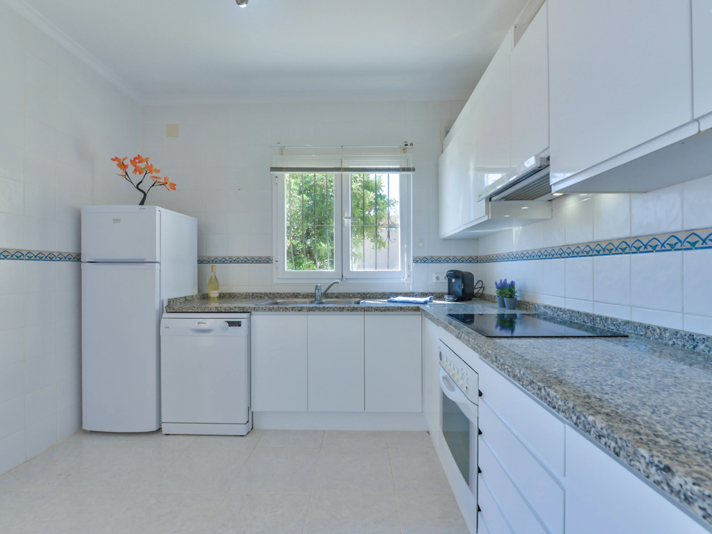 Dans la cuisine ouverte en vitrocéramique, un réfrigérateur, un four à micro-ondes, un four, un congélateur, un lave-linge, un lave-vaisselle, de la vaisselle, des ustensiles de cuisine, une cafetière, un grille-pain, une bouilloire et un presse-agrumes sont fournis.