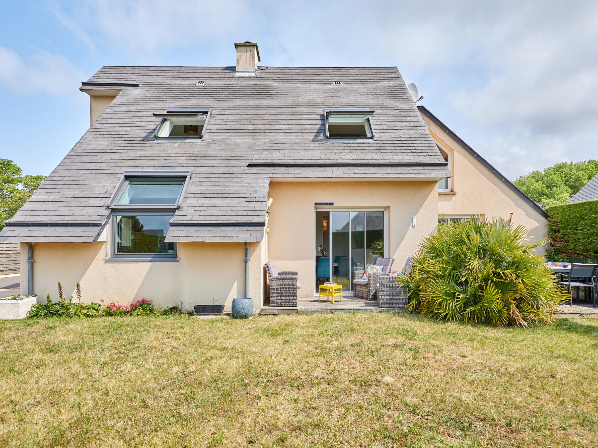 Maison 5 pièces 130 m2. Séjour/salle à manger avec TV (écran plat). Sortie sur la terrasse. 1 chambre avec 1 grand-lit (140 cm, longueur 190 cm), douche. 1 chambre avec 1 grand-lit (140 cm, longueur 190 cm). 1 chambre avec 1 lit (90 cm, longueur 190 cm), 1 grand-lit (140 cm, longueur 190 cm). 1 chambre avec 1 lit (90 cm, longueur 190 cm). Cuisine ouverte (four, lave-vaisselle, 4 feux, grille-pain, bouilloire électrique, micro-ondes, congélateur, cafetière électrique) avec table pour les repas. Salle de bains, WC séparé. Chauffage au gaz. Terrasse 30 m2, situation sud-ouest. Barbecue, chaises longues (4). Vue partielle sur la mer. A disposition: Internet (Connexion WIFI, gratuit). Place de parking (cloturée, 2 Voitures). Veuillez noter: adapté(e) aux familles. Logement non-fumeur. Maximum 1 animal/ chien de petite taille autorisé. Détecteur de fumée. Annonce d'un particulier (art 155, IV du CGI).