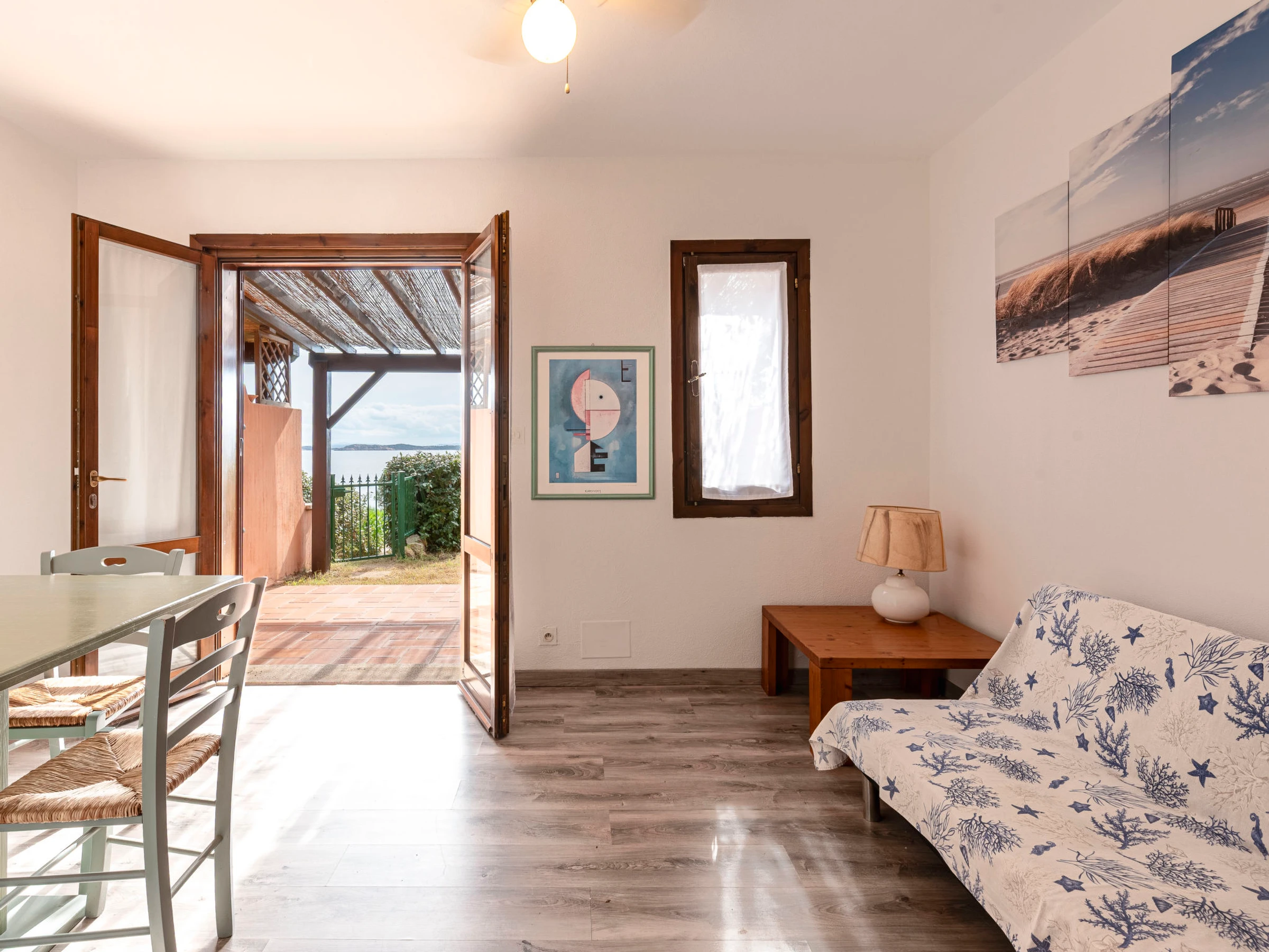 "Villa 12", maison mitoyenne 3 pièces 60 m2. Aménagement fonctionnel et agréable: séjour/salle à manger avec 1 divan-lit (90 cm, longueur 190 cm), table pour les repas. Sortie sur la terrasse. 1 chambre avec 1 grand-lit (160 cm, longueur 190 cm). 1 chambre avec 1 x 2 lits superposés (90 cm, longueur 190 cm). Cuisine ouverte (4 feux, grille-pain, bouilloire électrique, micro-ondes). Douche/bidet/WC. Chauffage électrique, air-conditionné. Terrasse partiellement couverte, pelouse. Meubles de terrasse. Belle vue sur la mer. A disposition: lave-linge. Place de parking (cloturée). Veuillez noter: maximum 1 animal/ chien de petite taille autorisé. Détecteur de fumée. [hidden]
