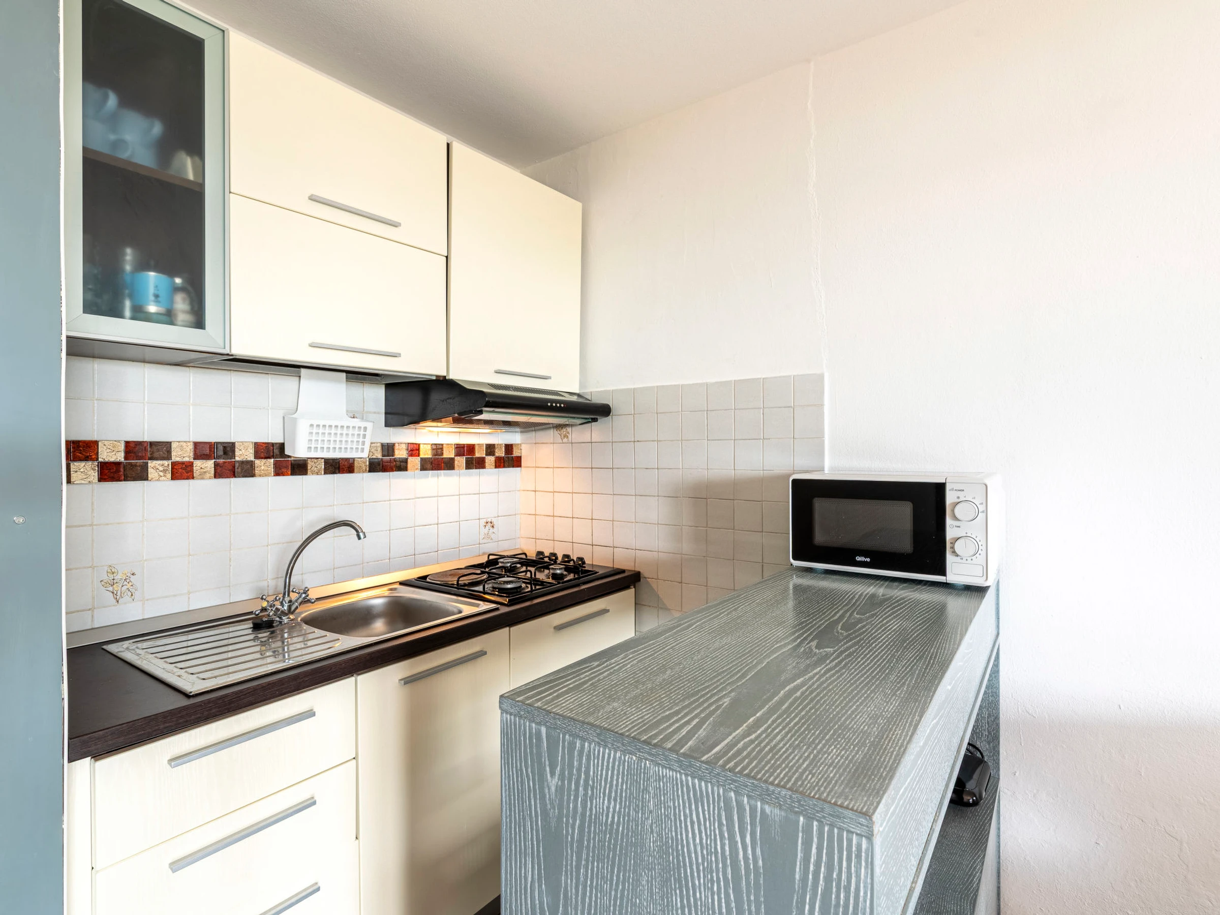 "Villa 16", maison mitoyenne 3 pièces 60 m2. Aménagement fonctionnel et agréable: séjour/salle à manger avec 1 divan-lit (90 cm, longueur 190 cm), table pour les repas. Sortie sur la terrasse. 1 chambre avec 1 grand-lit (160 cm, longueur 190 cm). 1 chambre avec 1 x 2 lits superposés (90 cm, longueur 190 cm). Cuisine ouverte (4 feux, grille-pain, bouilloire électrique, micro-ondes). Douche/bidet/WC. Chauffage électrique, air-conditionné. Terrasse partiellement couverte, pelouse. Meubles de terrasse. Belle vue sur la mer. A disposition: lave-linge. Place de parking (cloturée). Veuillez noter: maximum 1 animal/ chien de petite taille autorisé. Détecteur de fumée. [hidden]