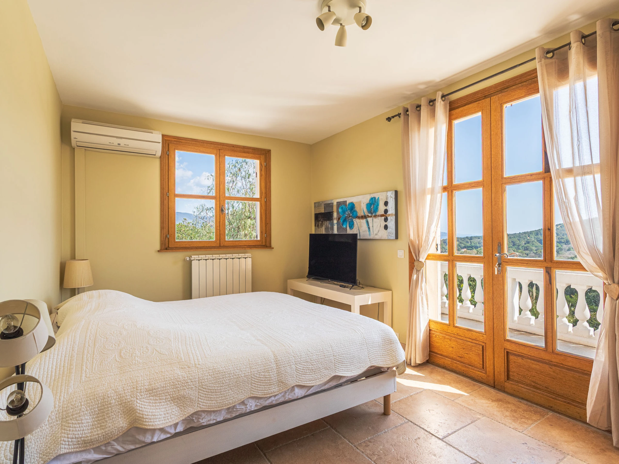"Villa Resedas", villa 6 pièces 350 m2 sur 2 niveaux, situation est. Spacieux et clair, aménagement confortable et agréable: grand séjour/salle à manger avec cheminée (uniquement à titre de décoration), TV (écran plat). Sortie sur la terrasse. 1 chambre avec Dressing avec 1 lit double (2 x 80 cm, longueur 190 cm), TV (écran plat). Sortie sur la terrasse. 1 chambre avec 1 grand-lit (180 cm, longueur 200 cm), TV (écran plat). Studio avec 1 x 2 lits superposés (80 cm, longueur 190 cm), 1 lit double (2 x 90 cm, longueur 200 cm), coin-cuisine, douche/WC et air-conditionné. Cuisine (four, lave-vaisselle, 4 plaques vitrocéramiques, grille-pain, bouilloire électrique, micro-ondes, congélateur, cafetière électrique). WC séparé, bain/douche/WC, double vasque. Air-conditionné. À l'étage inférieur: 1 chambre avec 1 grand-lit (140 cm, longueur 190 cm), douche/WC, double vasque et TV (écran plat). Sortie sur la terrasse. À l'étage supérieur: 1 chambre avec 1 grand-lit (180 cm, longueur 200 cm), douche/WC et TV (écran plat). Sortie sur la terrasse. Grande terrasse 500 m2, situation sud et situation est terrasse 20 m2, situation est. Meubles de terrasse, barbecue. Très belle vue sur la mer et les alentours. A disposition: lave-linge, sèche-linge, fer à repasser, chaise haute pour enfant, sèche-cheveux. Internet (Connexion WIFI, gratuit). Place de parking, garage (1 Voiture). Veuillez noter: une chambre double est à l'exterieur de l'appartement. Maison non-fumeur. Maximum 1 animal/ chien autorisé. TV seulement FR. Détecteur de fumée. Pas de liaison interne entre les différentes unités. Le studio avec les lits superposés se situe dans un bâtiment indépendant de la maison principale. Annonce d'un professionnel (art 155, IV du CGI) [hidden]