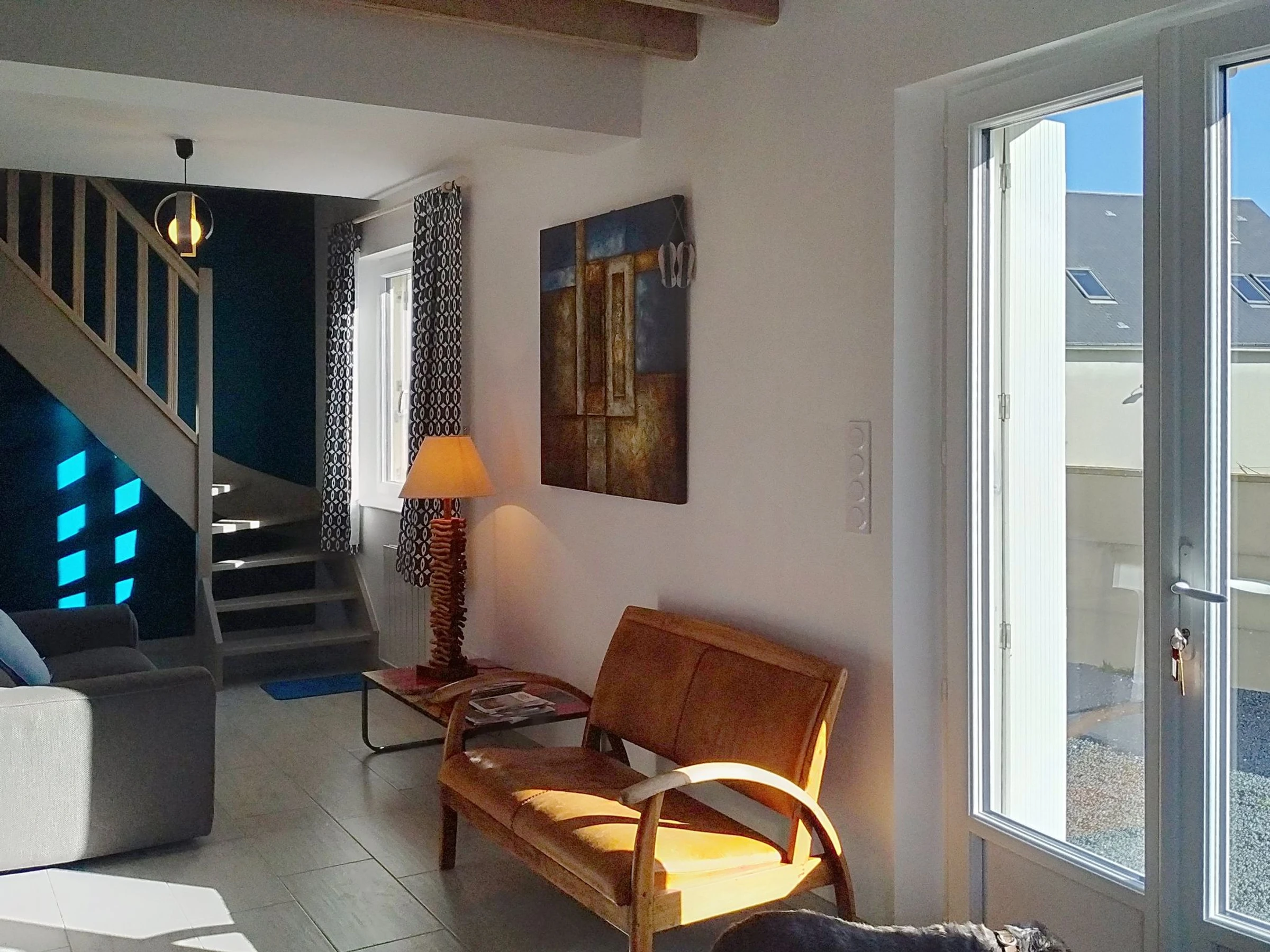 Maison 4 pièces 110 m2 sur 2 niveaux. Aménagement confortable et agréable: séjour/salle à manger. 1 chambre avec 1 grand-lit (160 cm, longueur 200 cm). Cuisine ouverte (4 plaques de cuisson, four, lave-vaisselle, grille-pain, bouilloire électrique, micro-ondes, cafetière électrique). Douche, WC séparé. Chauffage électrique. À l'étage supérieur: galerie mansardée avec 1 grand-lit (160 cm, longueur 200 cm). 1 chambre avec 1 grand-lit (140 cm, longueur 190 cm). Douche/WC. Terrasse. Meubles de terrasse, barbecue (4). Vue sur la mer. A disposition: Internet (Connexion WIFI, gratuit). Place de parking (2 Voitures). Veuillez noter: logement non-fumeur. Maximum 2 animaux/ chiens autorisés. Détecteur de fumée. Annonce d'un particulier (art 155, IV du CGI).