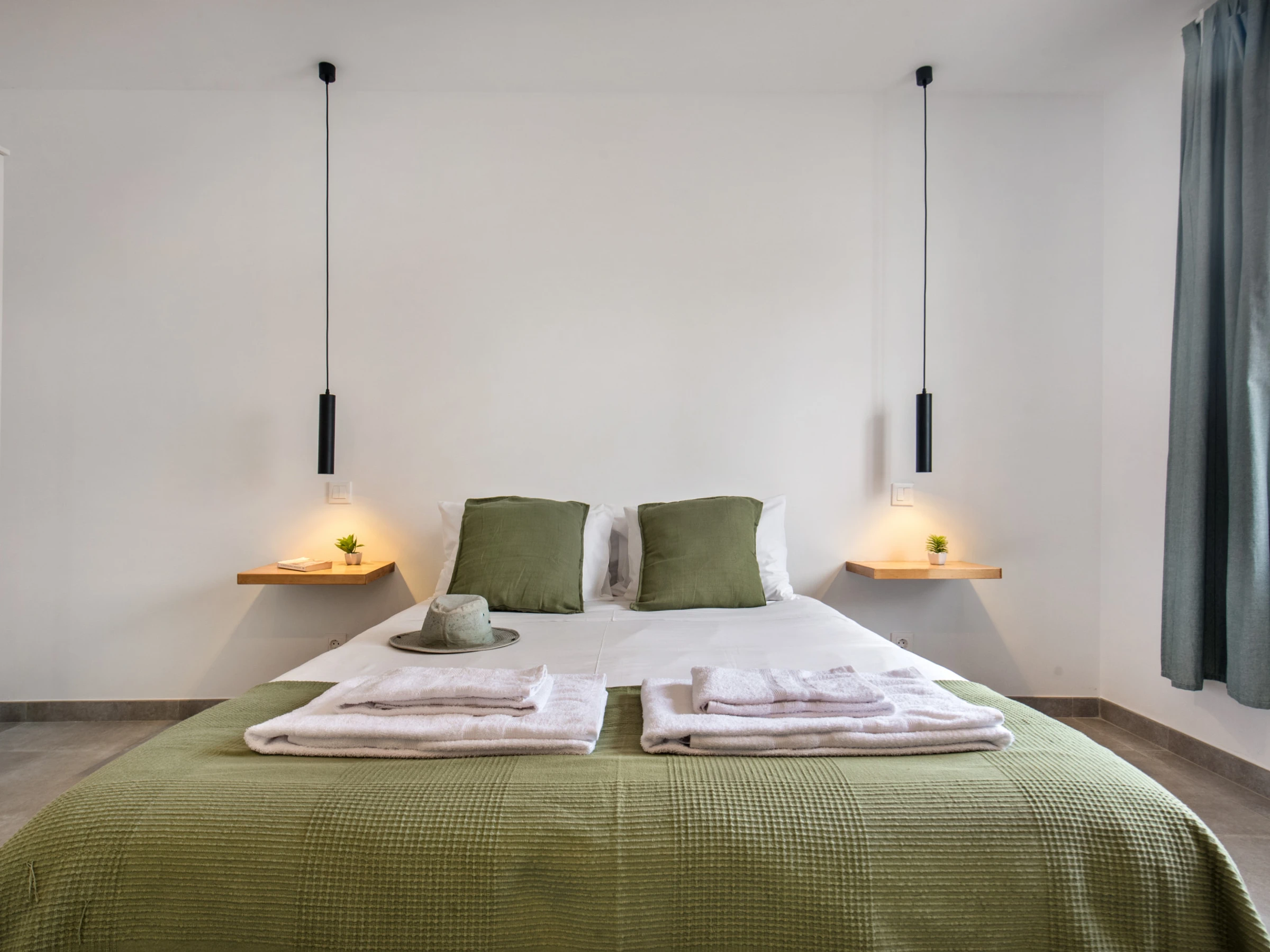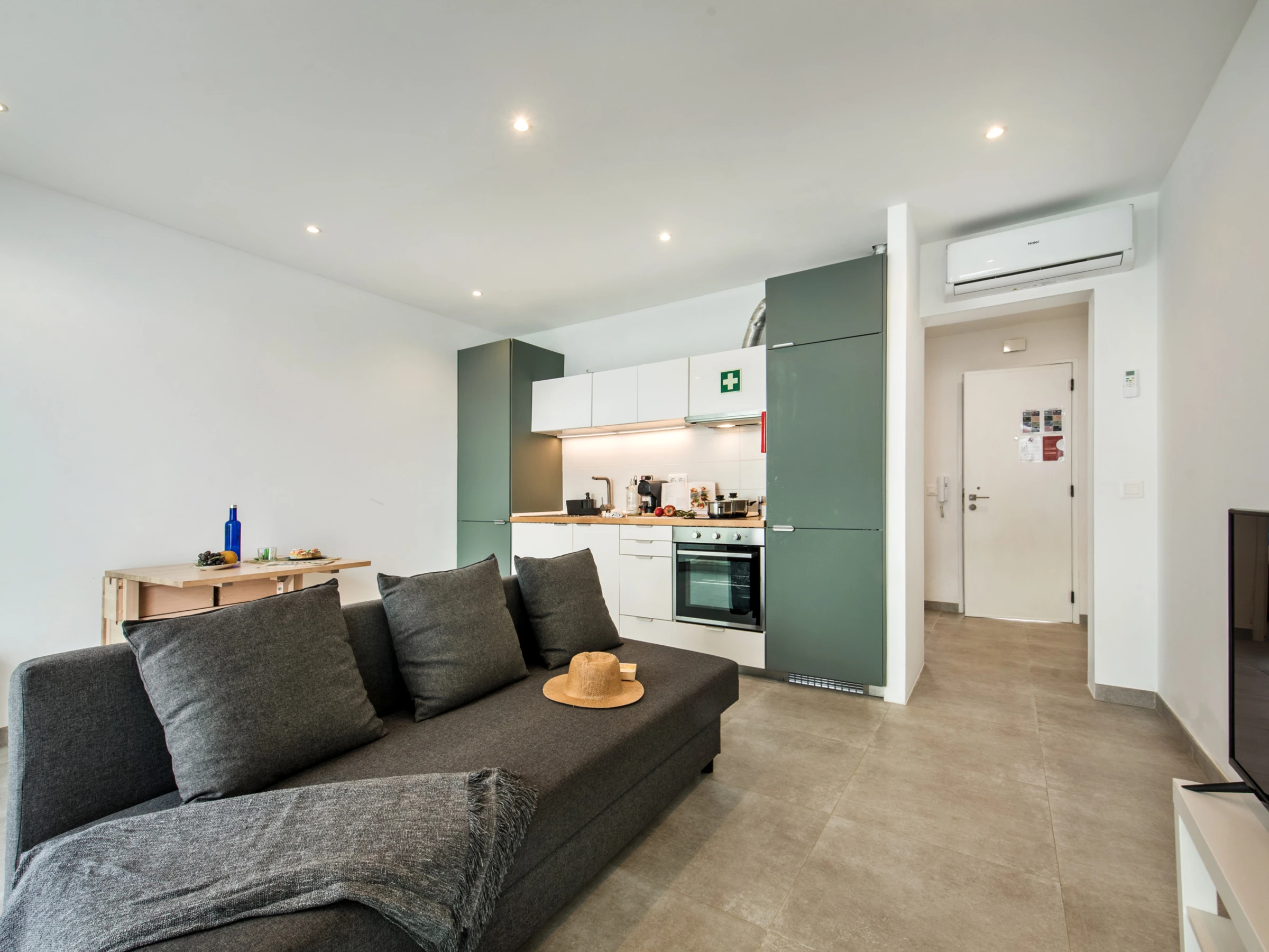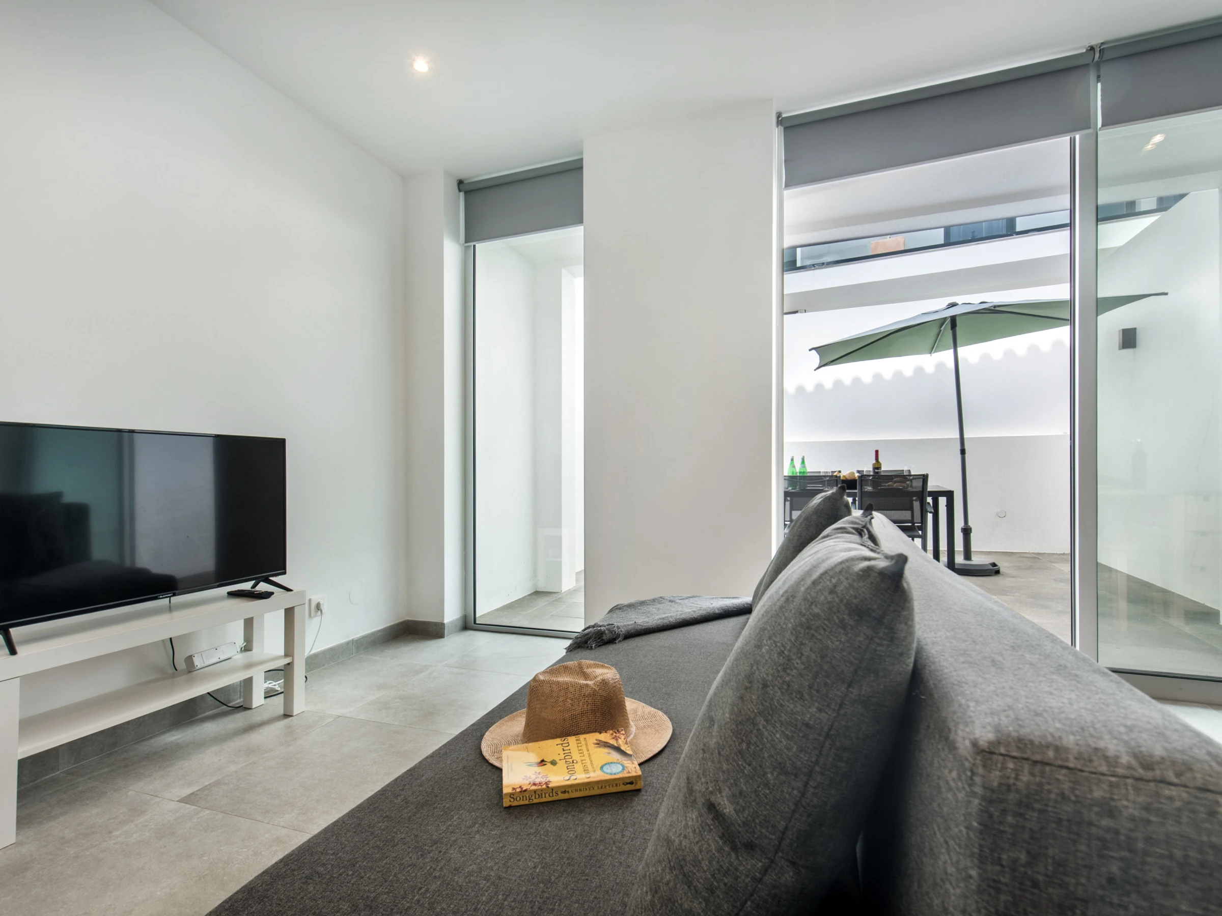 L'appartement, situé au rez-de-chaussée, présente une décoration simple et accueillante, avec une bonne entrée de lumière naturelle. Il dispose d'une chambre confortable, d'une salle de bain complète et d'un salon fonctionnel avec canapé-lit, permettant d'accueillir des familles en toute commodité. La cuisine est équipée pour l'essentiel du quotidien. À l'extérieur, se distingue une terrasse spacieuse avec mobilier, idéale pour les repas en plein air ou les moments de détente. Pour plus de confort, le logement est équipé de la climatisation dans toutes les pièces, de la télévision et d'internet à haute vitesse.