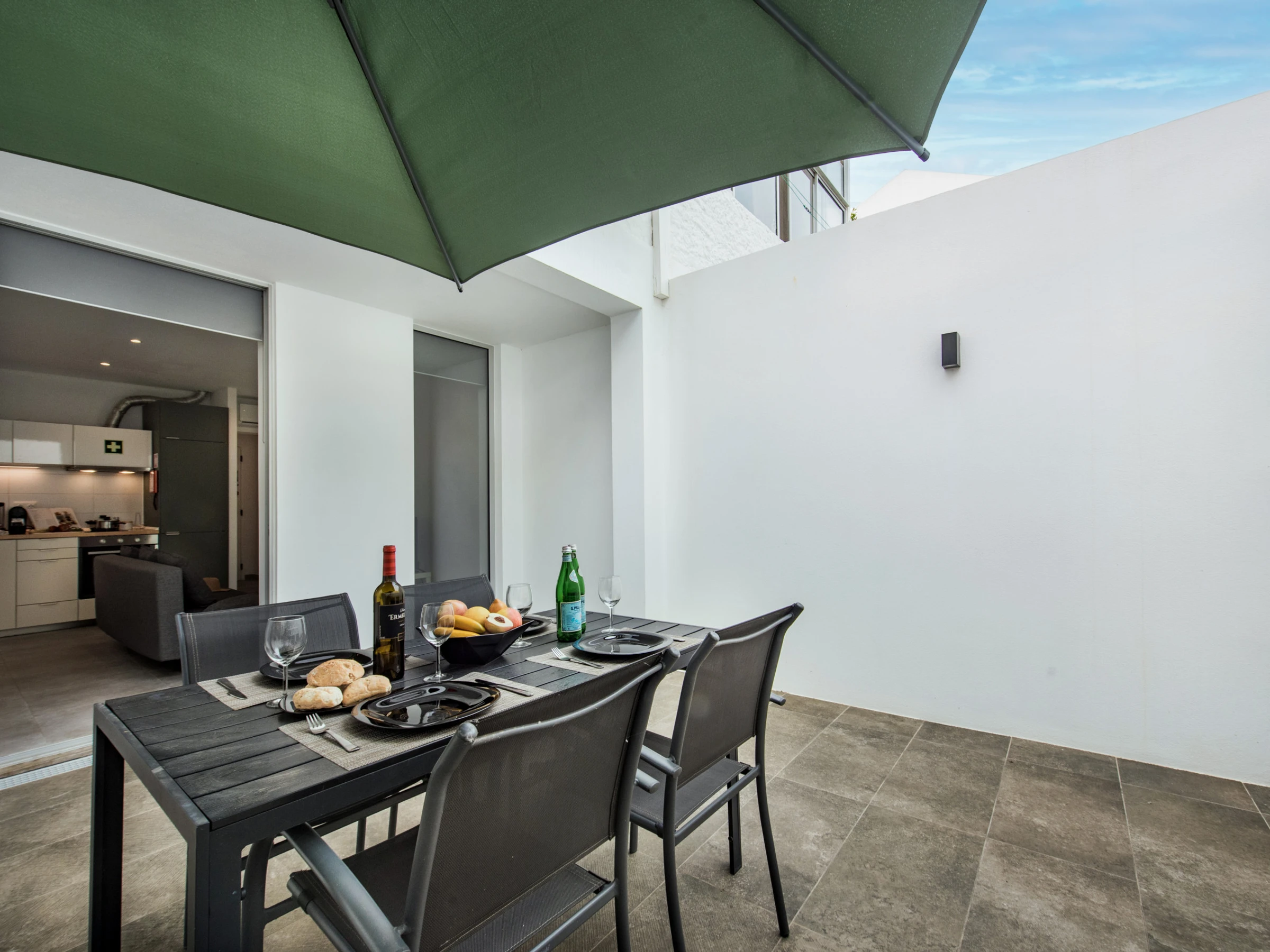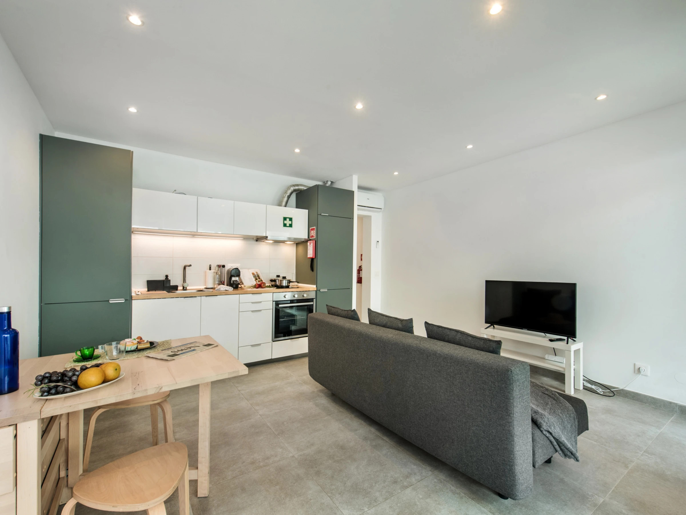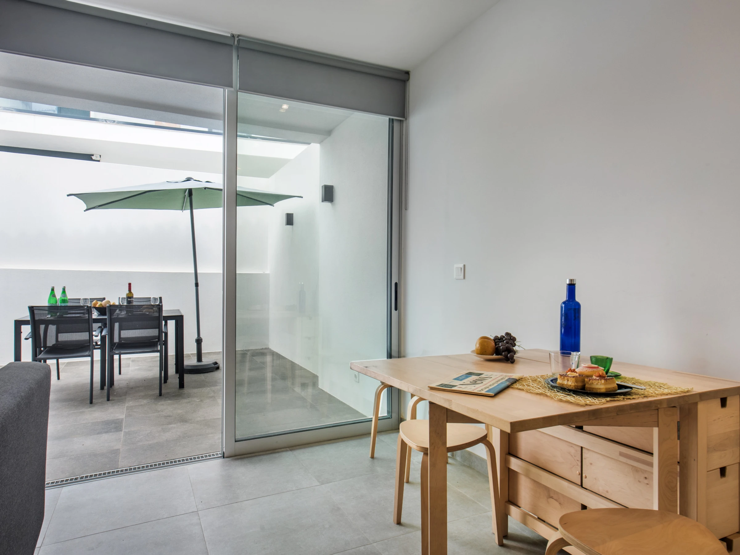 L'appartement, situé au rez-de-chaussée, présente une décoration simple et accueillante, avec une bonne entrée de lumière naturelle. Il dispose d'une chambre confortable, d'une salle de bain complète et d'un salon fonctionnel avec canapé-lit, permettant d'accueillir des familles en toute commodité. La cuisine est équipée pour l'essentiel du quotidien. À l'extérieur, se distingue une terrasse spacieuse avec mobilier, idéale pour les repas en plein air ou les moments de détente. Pour plus de confort, le logement est équipé de la climatisation dans toutes les pièces, de la télévision et d'internet à haute vitesse.