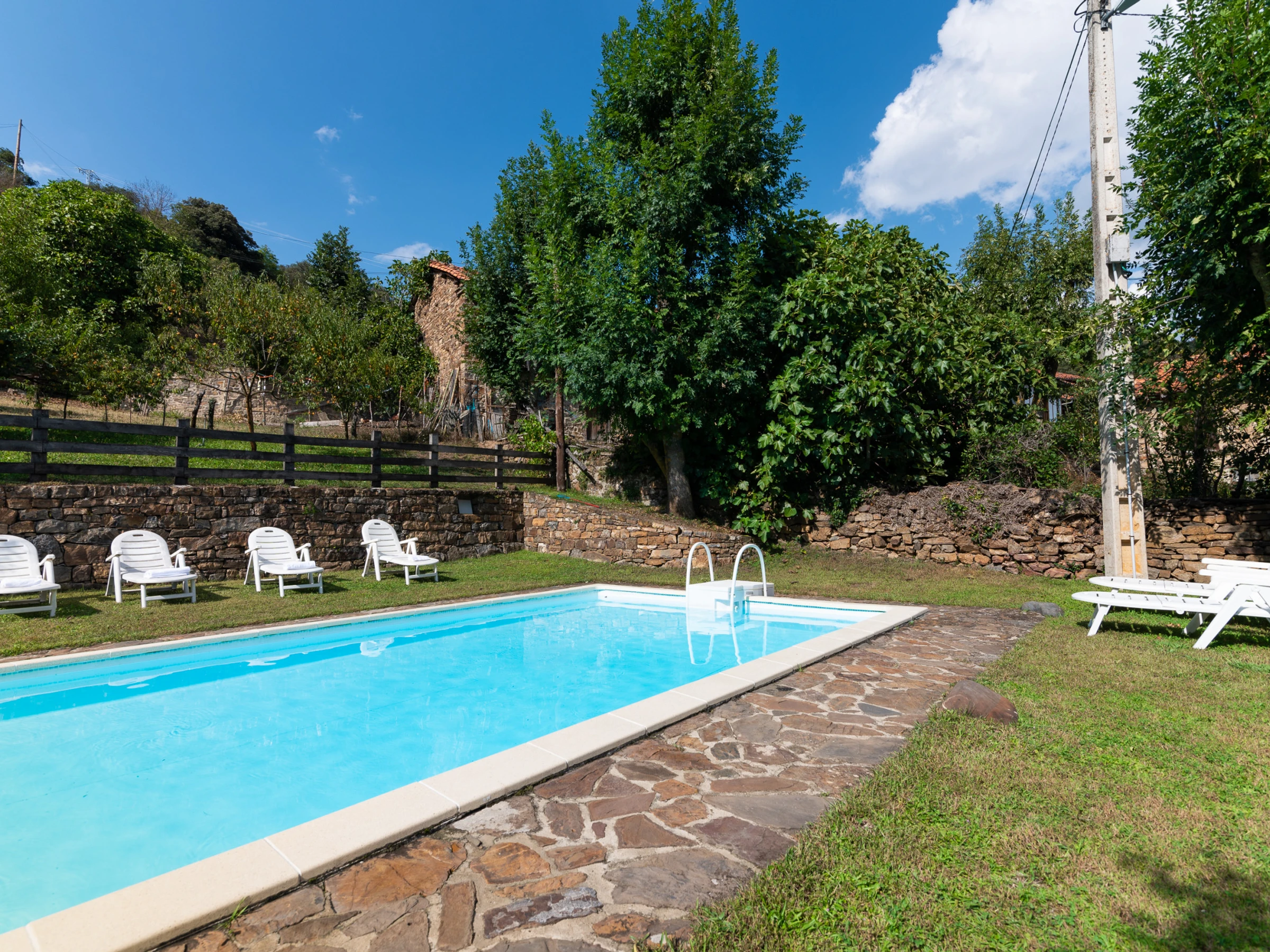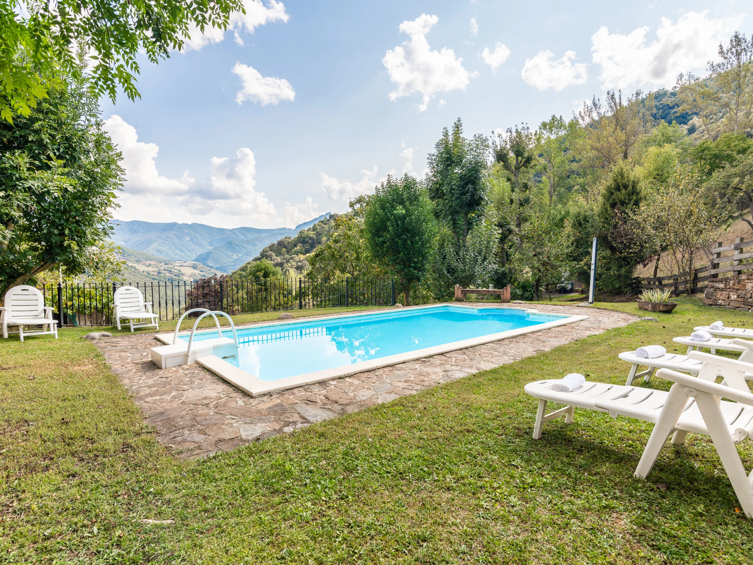 La piscine entièrement clôturée, à seulement quelques mètres de la maison. La vue sur la montagne depuis la piscine est spectaculaire.