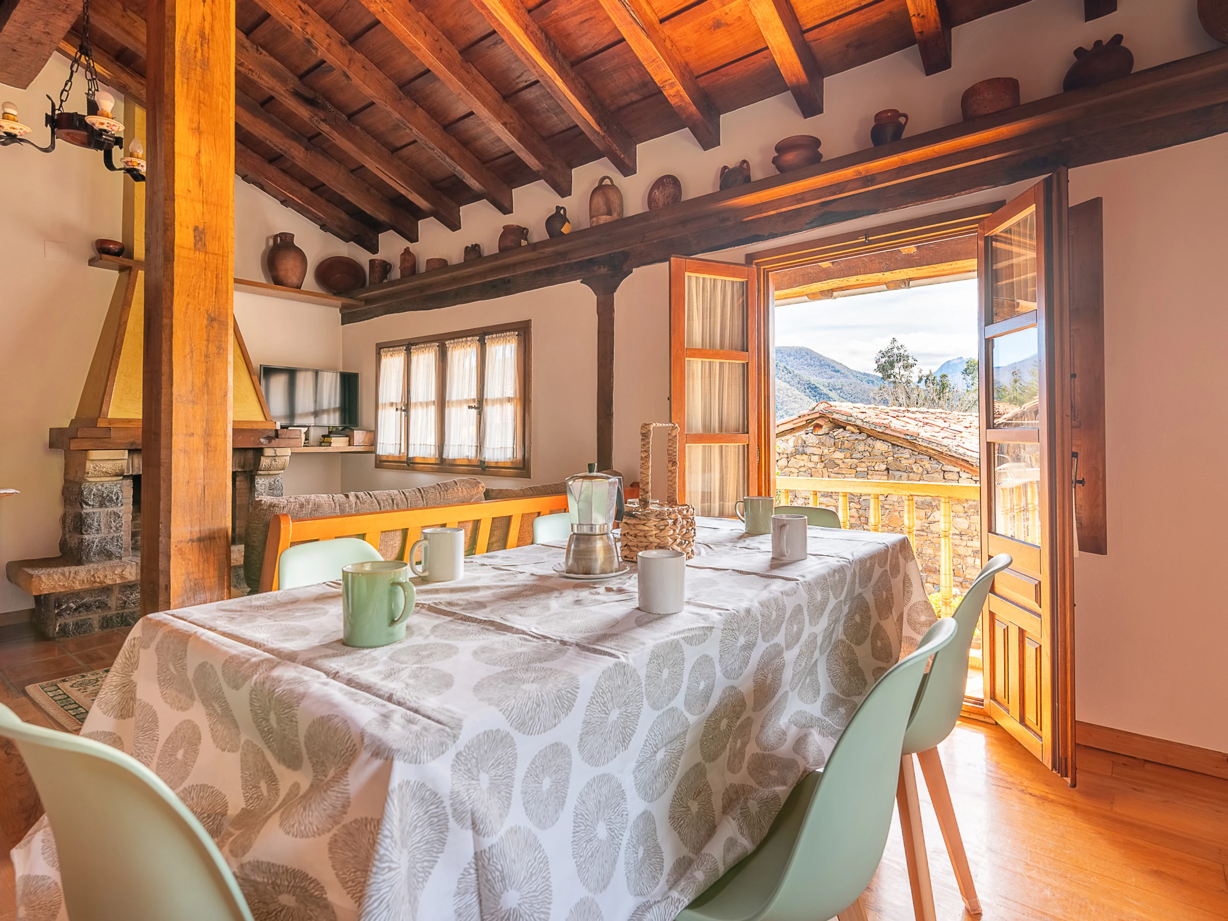Située dans un petit village composé de 8 maisons avec une vue impressionnante sur les montagnes. C'est une maison avec une belle façade montagnarde, typique de la région, bien équipée avec 3 chambres, 2 salles de bain, un salon-salle à manger avec cheminée, cuisine américaine, balcon et une fantastique terrasse où se détendre et se déconnecter.
