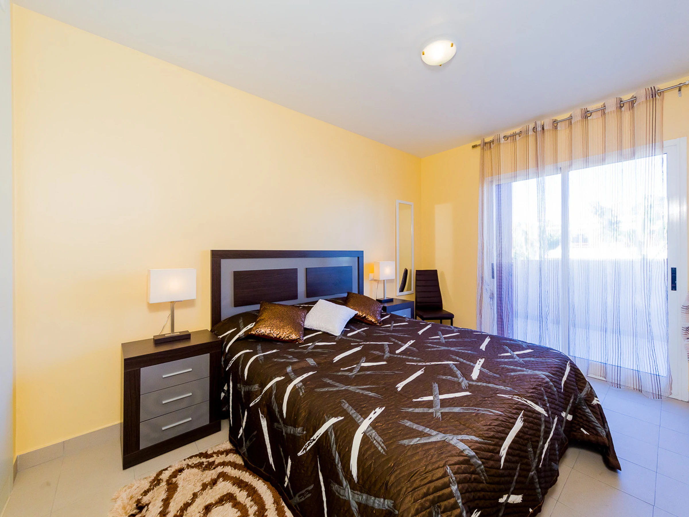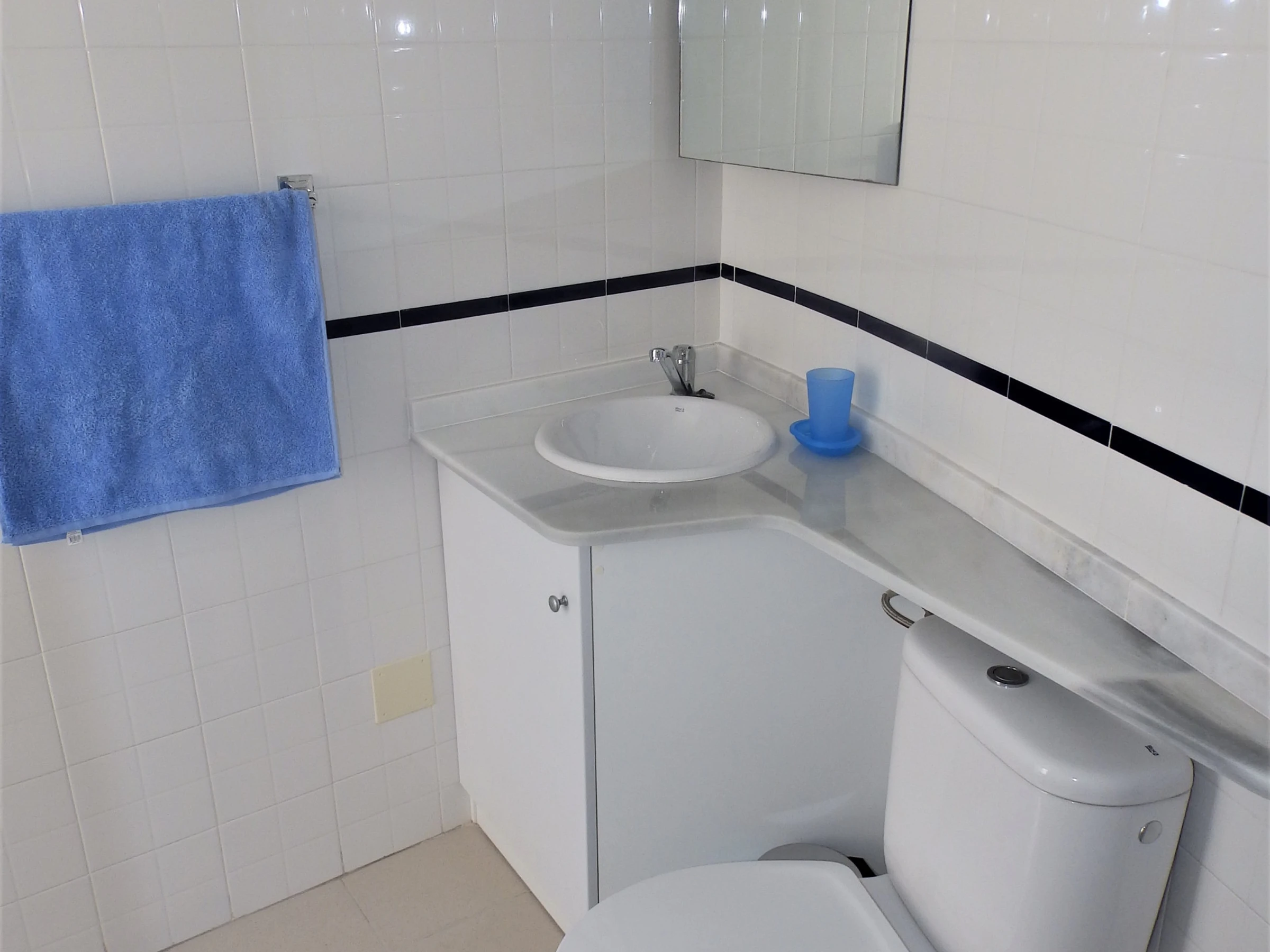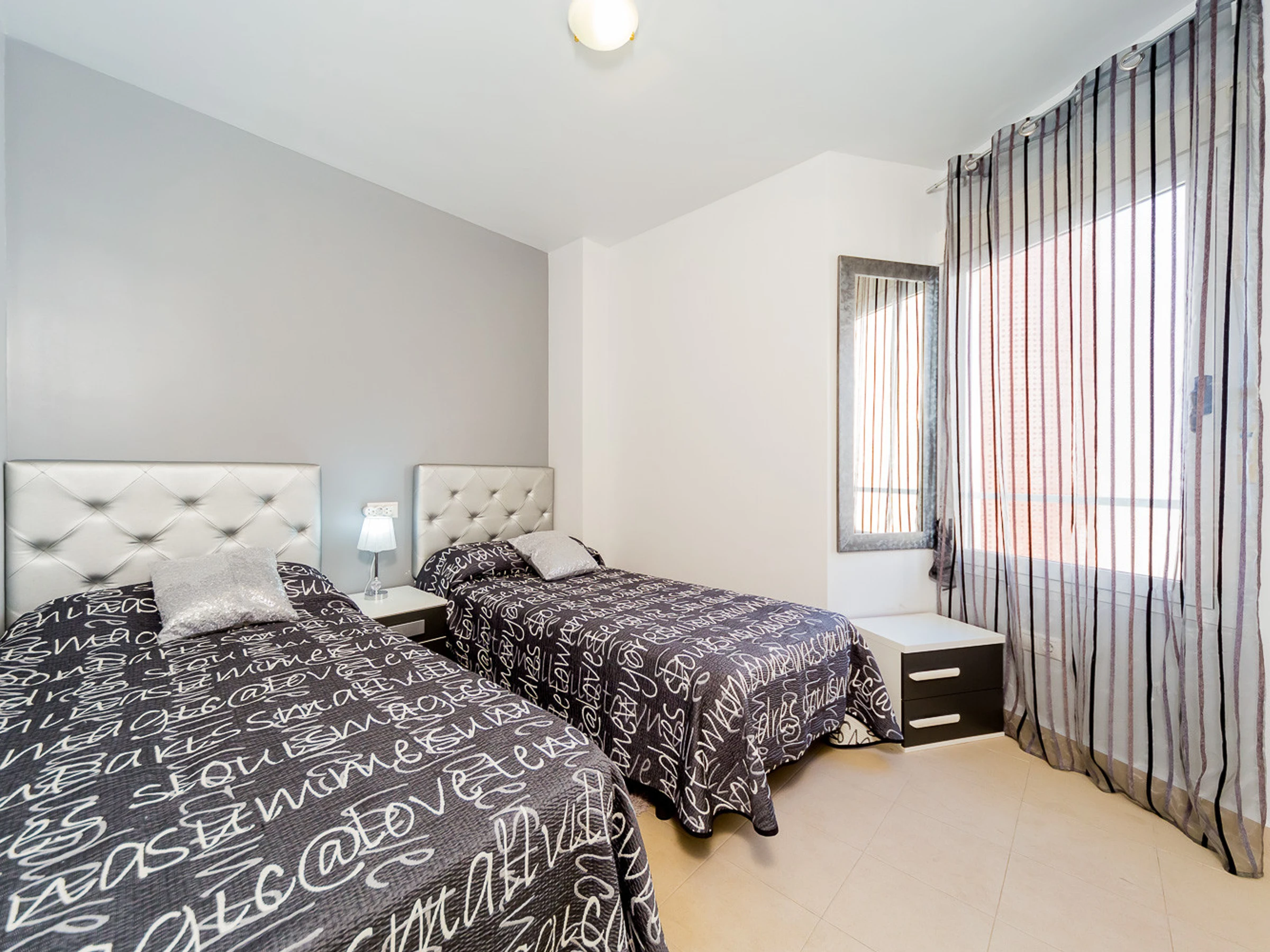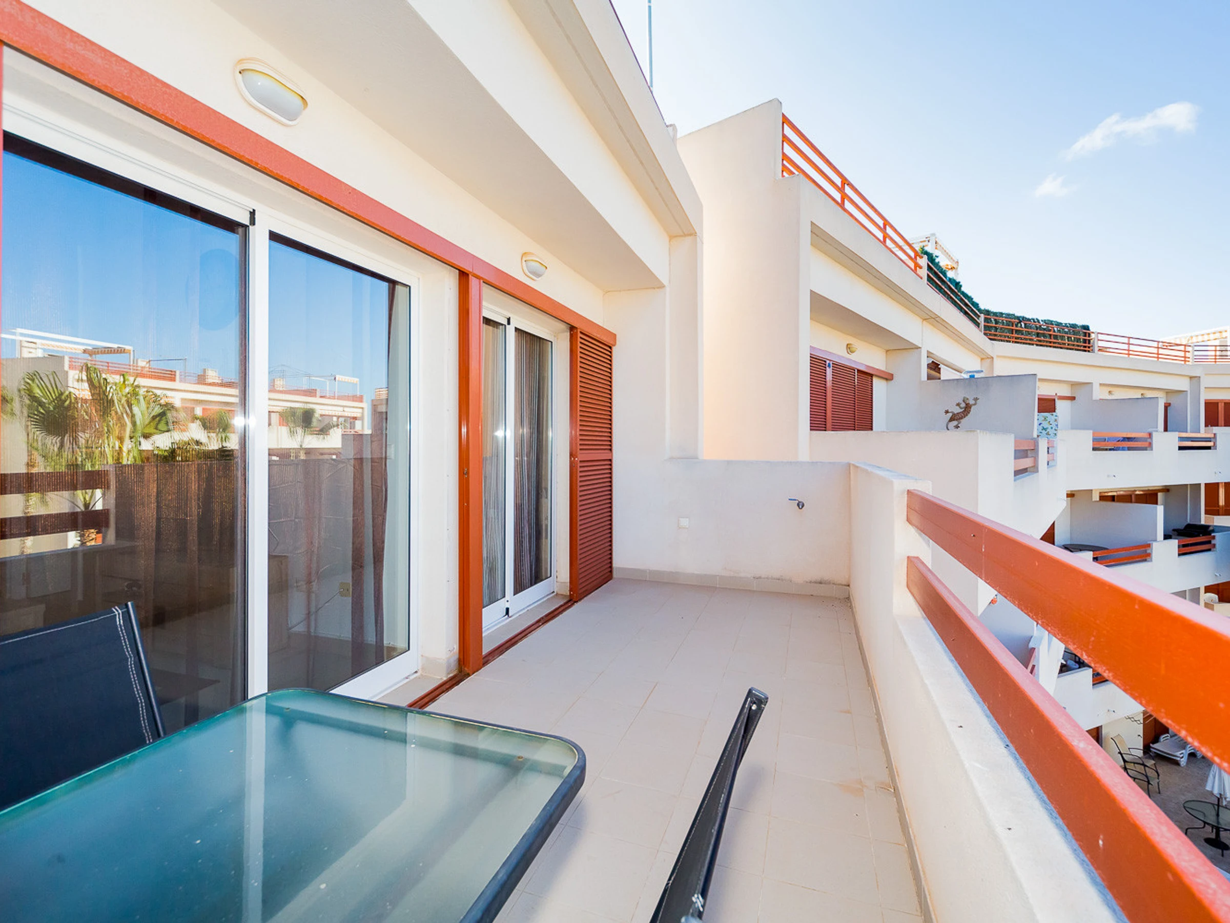 Appartement moderne à louer dans une belle urbanisation gardée avec espace vert et deux piscines dans le quartier de Playa Flamenca. La superficie totale de l'appartement est de 82 m2, se compose de deux chambres avec leurs propres salles de bains, un salon, une cuisine américaine, un local technique et une terrasse avec vue sur la zone d'urbanisation et la piscine. A l'étage il y a un solarium privé avec vue sur la mer et la piscine. Il y a un barbecue ! L'appartement dispose de tout ce dont vous avez besoin pour un séjour confortable et relaxant : mobilier neuf (lits avec matelas orthopédiques), électroménager (dont lave-vaisselle et lave-linge, cafetière, presse-agrumes et grille-pain), vaisselle, linge de lit et serviettes. Sur la terrasse et dans le solarium il y a du mobilier d'été, des chaises longues et des chaises pliantes. Climatisation centrale, TV avec Smart-TV. Il y a une place de parking sur le territoire du complexe. Possibilité d'hébergement - jusqu'à 4 personnes (pas d'animaux !). Il est interdit de fumer dans l'appartement ! Le quartier dispose d'une infrastructure bien développée : des bars et des restaurants sont situés à proximité, les grands supermarchés LIDL, Super COR et Carrefour sont accessibles à pied, le boulevard La Zenia est à environ 20 minutes à pied. A proximité se trouvent un parc d'attractions pour enfants, un minigolf et une piste de karting. La mer est à environ 500 mètres, mais la plage est un peu plus loin, à environ 400-500 mètres. Les voisins sont pour la plupart des étrangers anglophones.