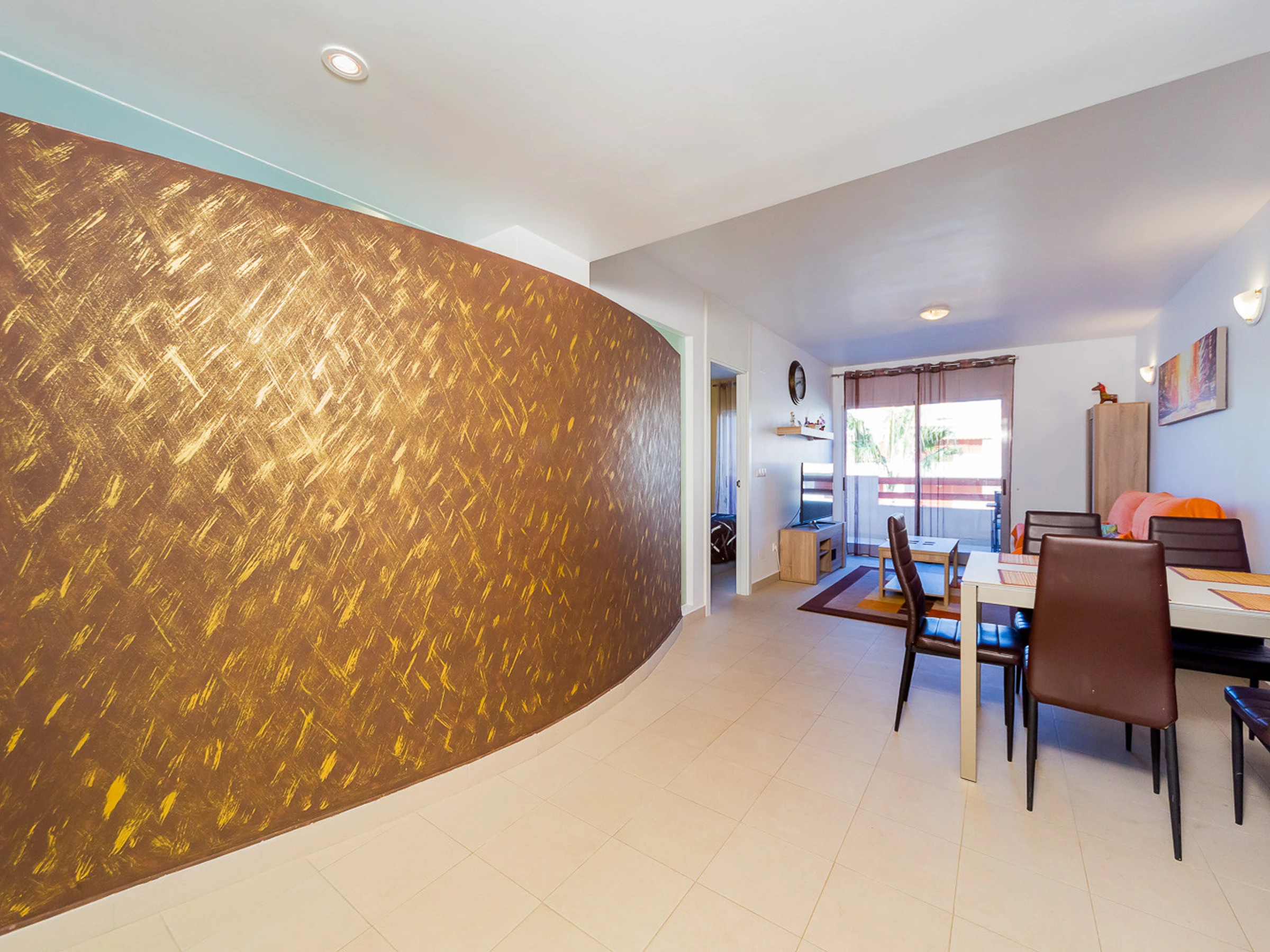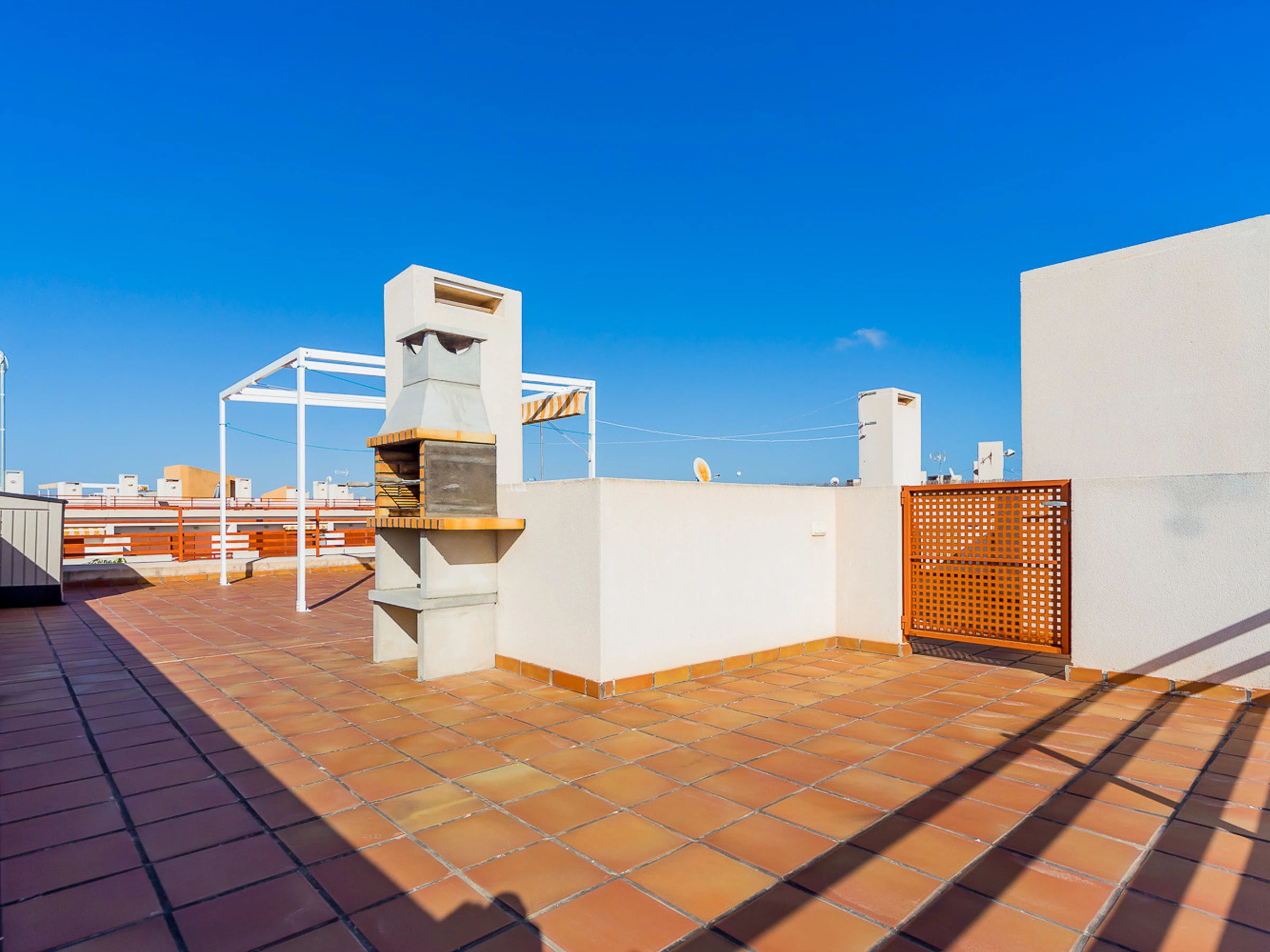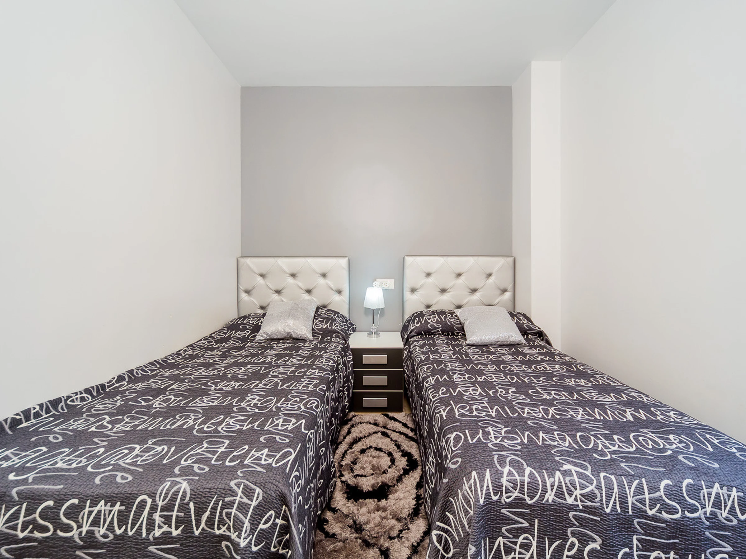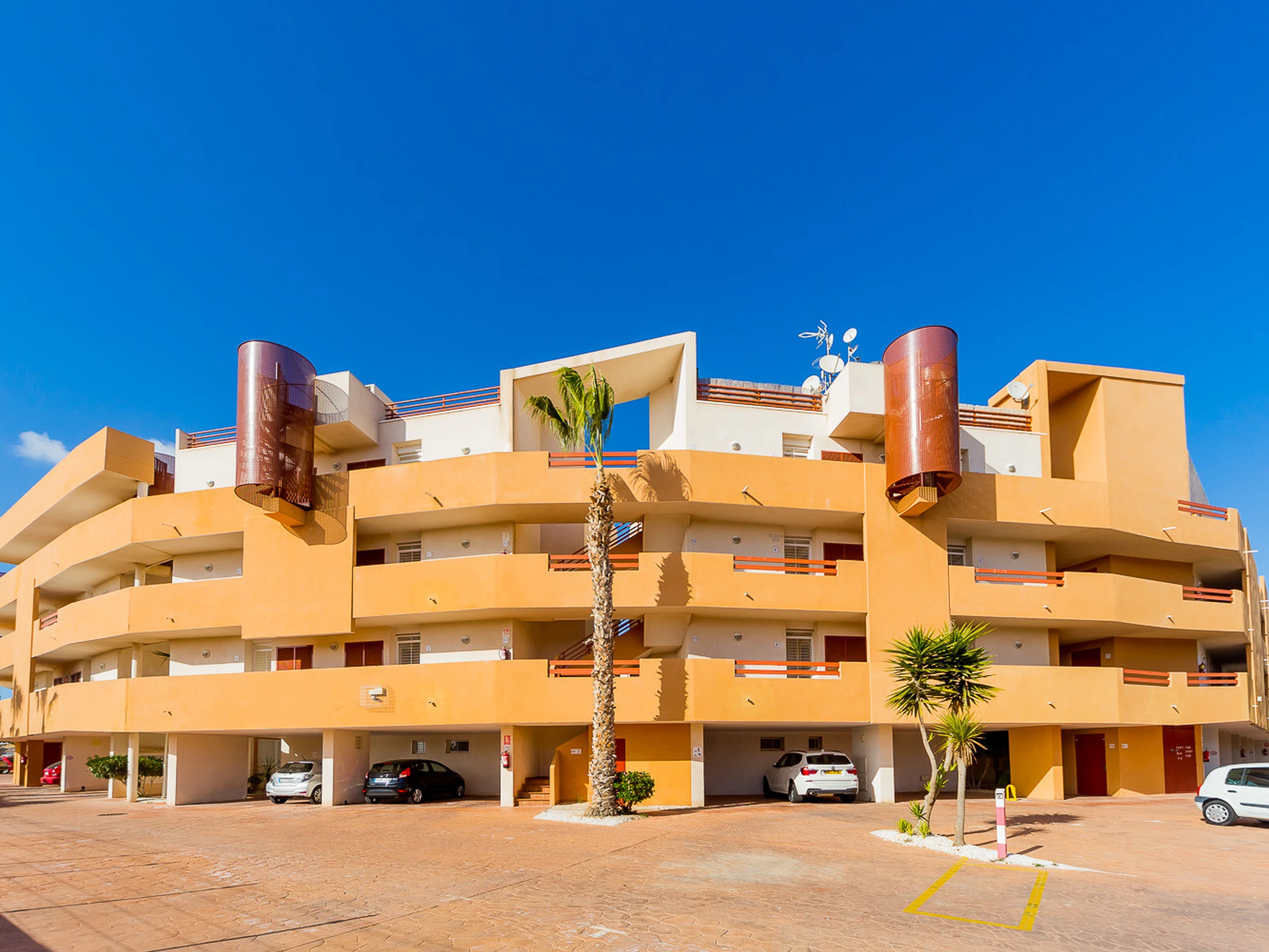 Appartement moderne à louer dans une belle urbanisation gardée avec espace vert et deux piscines dans le quartier de Playa Flamenca. La superficie totale de l'appartement est de 82 m2, se compose de deux chambres avec leurs propres salles de bains, un salon, une cuisine américaine, un local technique et une terrasse avec vue sur la zone d'urbanisation et la piscine. A l'étage il y a un solarium privé avec vue sur la mer et la piscine. Il y a un barbecue ! L'appartement dispose de tout ce dont vous avez besoin pour un séjour confortable et relaxant : mobilier neuf (lits avec matelas orthopédiques), électroménager (dont lave-vaisselle et lave-linge, cafetière, presse-agrumes et grille-pain), vaisselle, linge de lit et serviettes. Sur la terrasse et dans le solarium il y a du mobilier d'été, des chaises longues et des chaises pliantes. Climatisation centrale, TV avec Smart-TV. Il y a une place de parking sur le territoire du complexe. Possibilité d'hébergement - jusqu'à 4 personnes (pas d'animaux !). Il est interdit de fumer dans l'appartement ! Le quartier dispose d'une infrastructure bien développée : des bars et des restaurants sont situés à proximité, les grands supermarchés LIDL, Super COR et Carrefour sont accessibles à pied, le boulevard La Zenia est à environ 20 minutes à pied. A proximité se trouvent un parc d'attractions pour enfants, un minigolf et une piste de karting. La mer est à environ 500 mètres, mais la plage est un peu plus loin, à environ 400-500 mètres. Les voisins sont pour la plupart des étrangers anglophones.