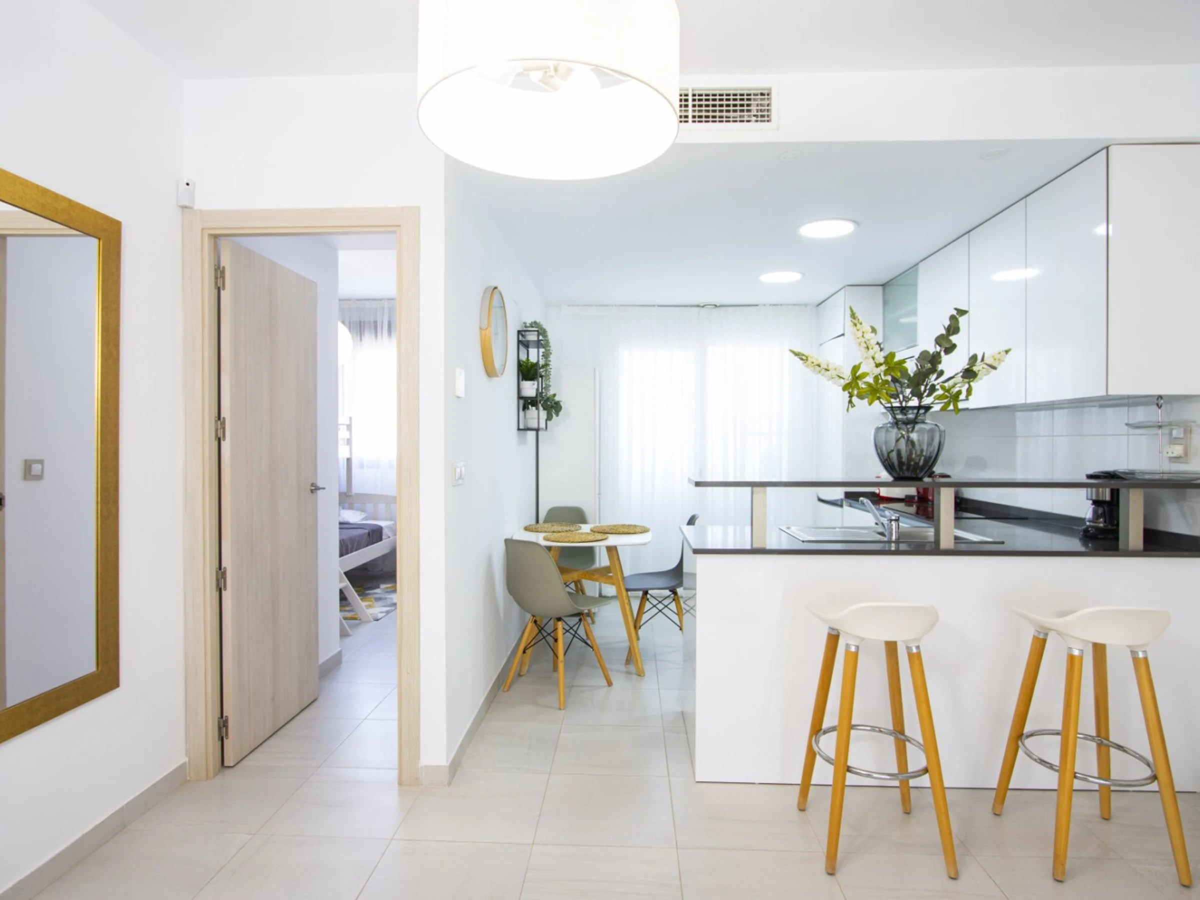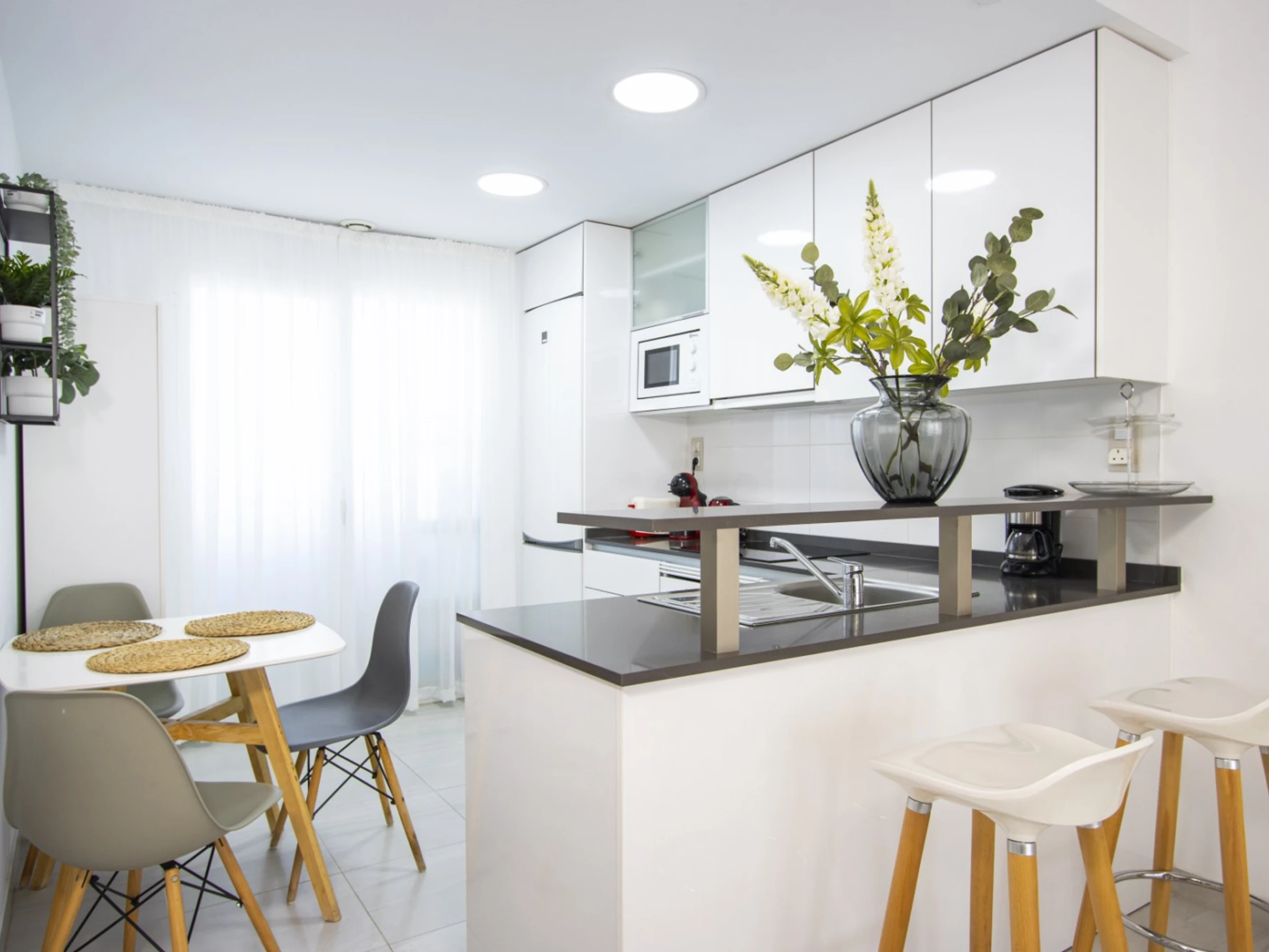 Il y a tout le nécessaire pour un séjour confortable et relaxant : meubles neufs, électroménager (dont cafetière et lave-vaisselle), draps et serviettes, vaisselle. La terrasse et le solarium disposent de mobilier d'été. Il y a aussi un barbecue sur le solarium. Climatisation centrale. Télévision espagnole, Internet sans fil. Possibilité d'hébergement – jusqu'à six personnes (pas d'animaux !). Il est permis de fumer uniquement sur la terrasse ou dans le solarium.