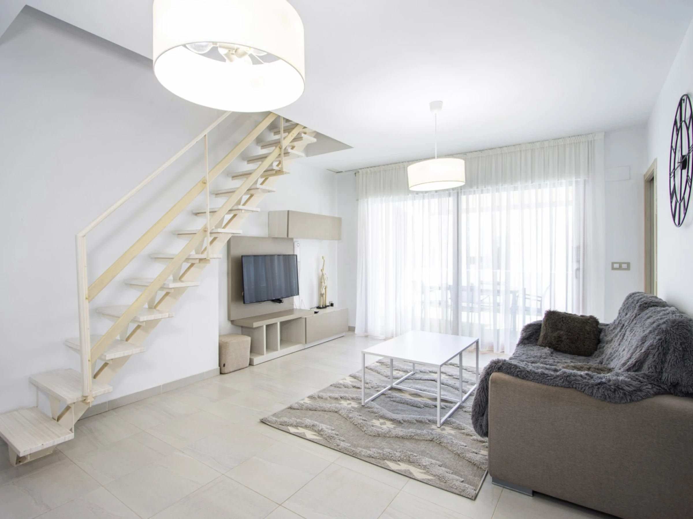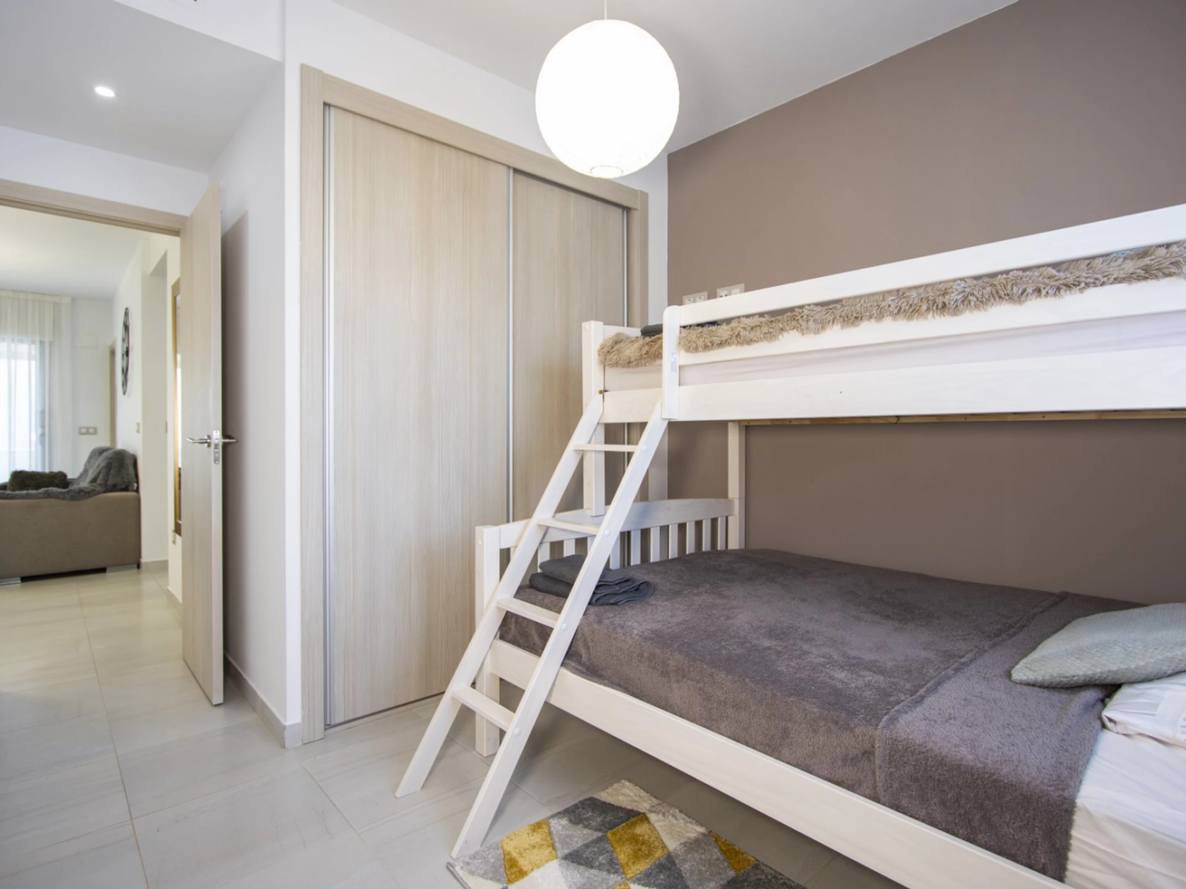 Nous proposons à la location touristique un bungalow moderne dans une nouvelle urbanisation à La Zenia. Le complexe dispose d'une aire de jeux pour enfants et de trois piscines. Superficie totale – 74 m2. Le bungalow se compose d'un séjour, de deux chambres, d'une cuisine américaine, de deux salles de bains, d'une terrasse et d'un solarium privé. Il y a une place de parking pour votre voiture.