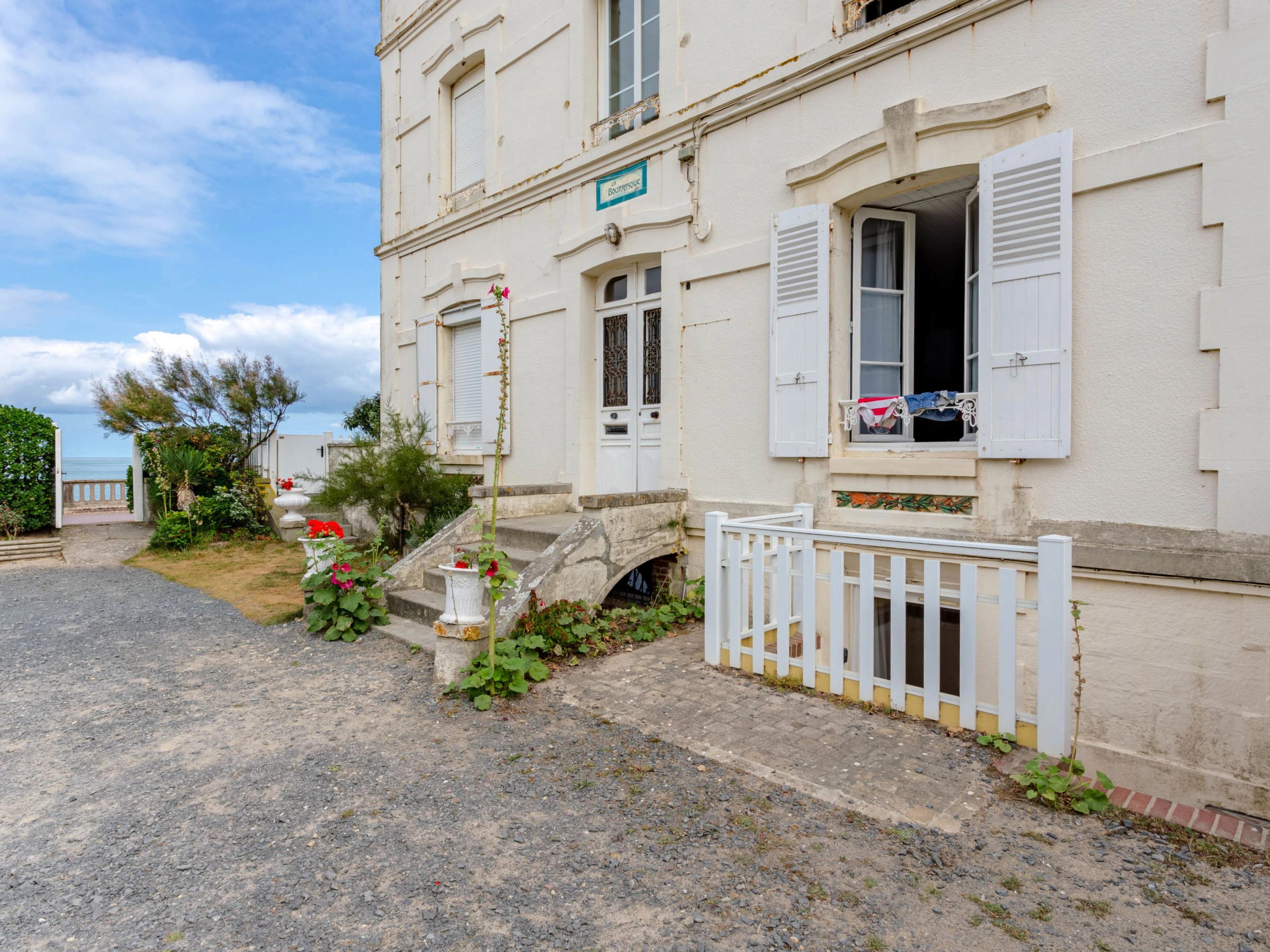 Résidence ancienne "La Bourrasque", de 3 étages. Dans la localité, à 400 m du centre de Cabourg, à 20 m de la mer, à 20 m de la plage. Parking public possible dans la rue. Magasins 400 m, magasin d'alimentation 900 m, supermarché 1.2 km, restaurant, bar 400 m, arrêt de bus "Cabourg - Hôtel de ville" 1.1 km, plage de sable 20 m, centre thermal "Thalazur Cabourg" 1.8 km. Port plaisance 1.2 km, terrain de golf (9 trous) 2.6 km, golf miniature 120 m. Attractions à proximité: Deauville 26 km, Honfleur 48 km, Caen 34 km.
