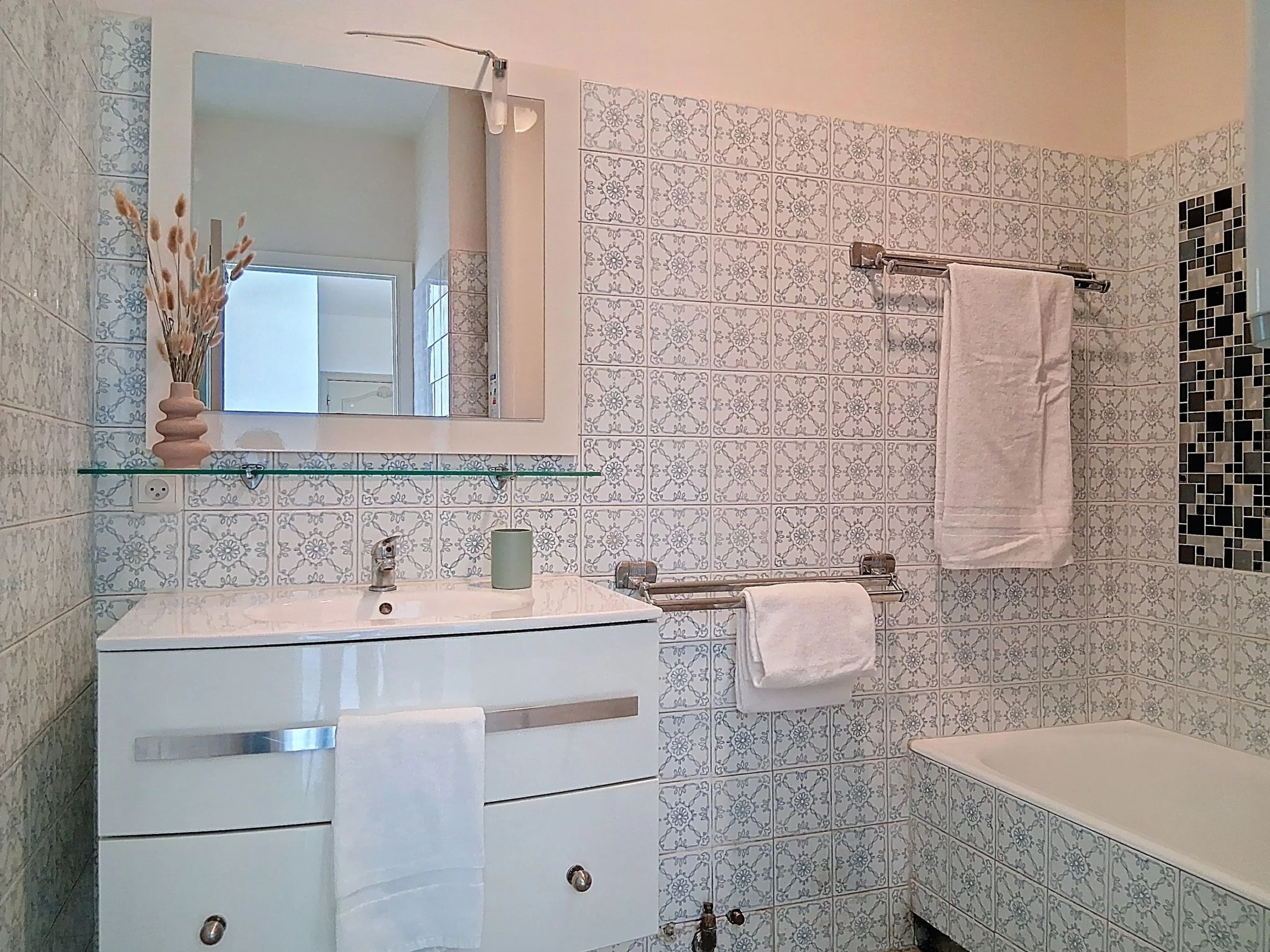 Apt 3 pièces 56 m2 au 6ème étage, situation sud. Clair, aménagement agréable: séjour/salle à manger avec 1 divan-lit double (1 x 140 cm, longueur 190 cm), TV (écran plat). Sortie sur la terrasse. 1 chambre avec 1 grand-lit (1 x 140 cm, longueur 190 cm). Sortie sur le balcon. 1 chambre avec 1 grand-lit (1 x 140 cm, longueur 190 cm), TV (écran plat), air-conditionné. Cuisine ouverte (four, 3 plaques à induction, grille-pain, bouilloire électrique, micro-ondes, congélateur, cafetière électrique, Capsules pour machine à café (Nespresso)). Sortie sur la terrasse. Salle de bains, WC séparé. Chauffage. Balcon 9 m2, situation nord, terrasse 10 m2, situation sud. Mobilier de balcon. Superbe vue panoramique sur la mer. A disposition: fer à repasser, sèche-cheveux. Internet (Connexion WIFI, gratuit). Garage (1 Voiture). Veuillez noter: maison non-fumeur. 1 animal/ chien autorisé. Détecteur de fumée. Annonce d'un particulier (art 155, IV du CGI). [hidden]