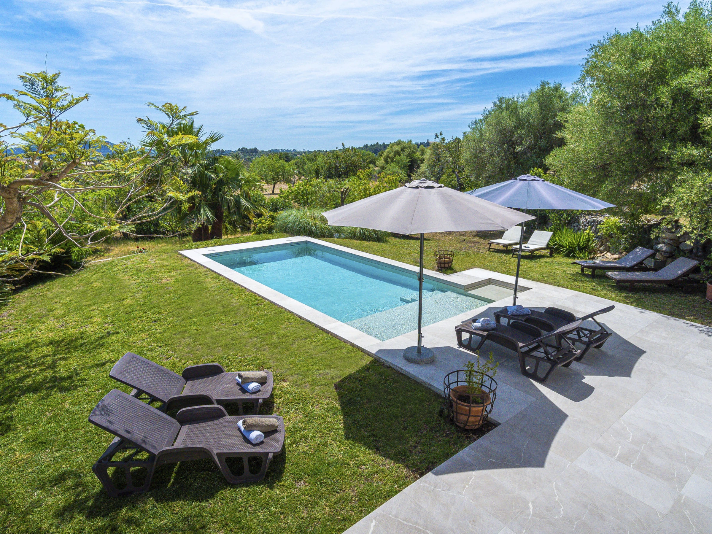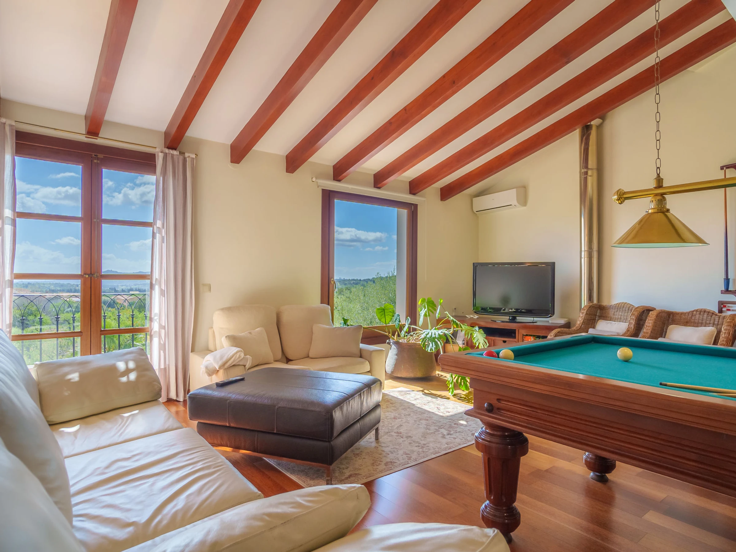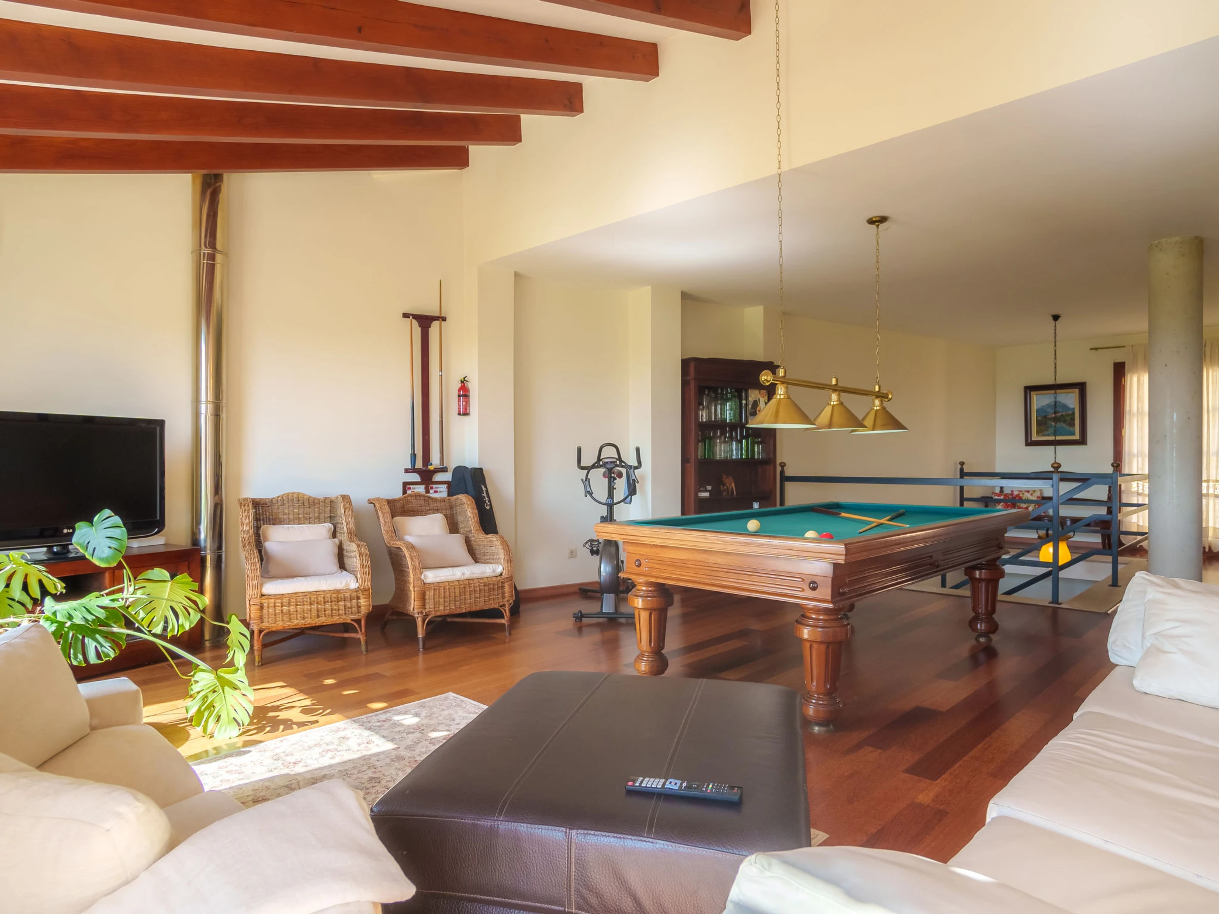 Belle, grande villa confortable "Sa Coma Caimari", de 2 étages. Dans la localité, à 300 m du centre, situation tranquille, ensoleillée, à 170 m de la forêt, à 27 km de la mer. A usage privé: terrain à l'état naturel (clôturé), beau jardin avec pelouse et arbres, piscine rectangulaire (6 x 4 m, profondeur 40 - 170 cm, disponibilité saisonnière: [hidden] - [hidden] Douche extérieure, jardinet, tonnelle, pergola, meubles de jardin, barbecue, entretien de la piscine par le propriétaire/jardinier. Infrastructures de la Maison: billard, air-conditionné. Place de parking près de la maison sur le terrain. Magasin d'alimentation 210 m, restaurant 280 m, bar 170 m, boulangerie 350 m, café 170 m, location de bicyclettes 2.3 km, biergarten 300 m, centre à 4 minutes à pieds, arrêt de bus 450 m, plage de sable "Port d'Alcúdia" 27 km. Port plaisance 28 km, terrain de golf (18 trous) 23 km, tennis 2.2 km, centre sportif 700 m, chemins de randonnées pédestres depuis la maison 200 m, piste cyclable 500 m. Attractions à proximité: Pueblos de Selva,Moscari,Mancor,Campanet, Ciudad de Palma 42 km, Santuari de Lluc 11 km, Restaurantes: Ca Na Toneta, Sa Tafona, Playa y Faro de Formentor 35 km, Mallorca Fashion Outlet & Cinemas 28 km. Région de randonnées: Serra de Tramuntana 500 m, Camí Vell de Caimari Lluc, Mancomunitat des Raiguer. Veuillez noter: voiture recommandée. Bien convenant à 4 adultes. Le propriétaire n'accepte pas les groupes de jeunes. Aéroport 44 km de la maison. Environnement très sensible au bruit. Silence et bonne tenue exigés.
