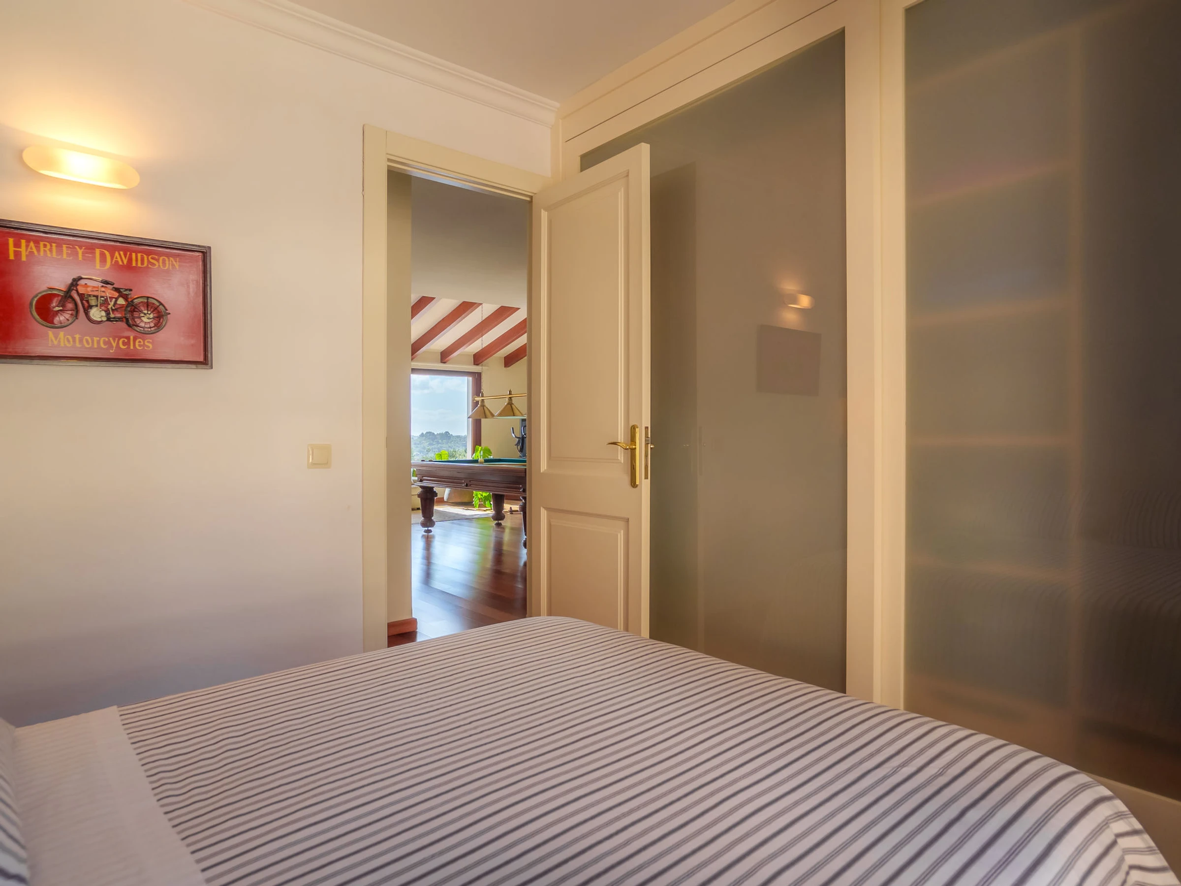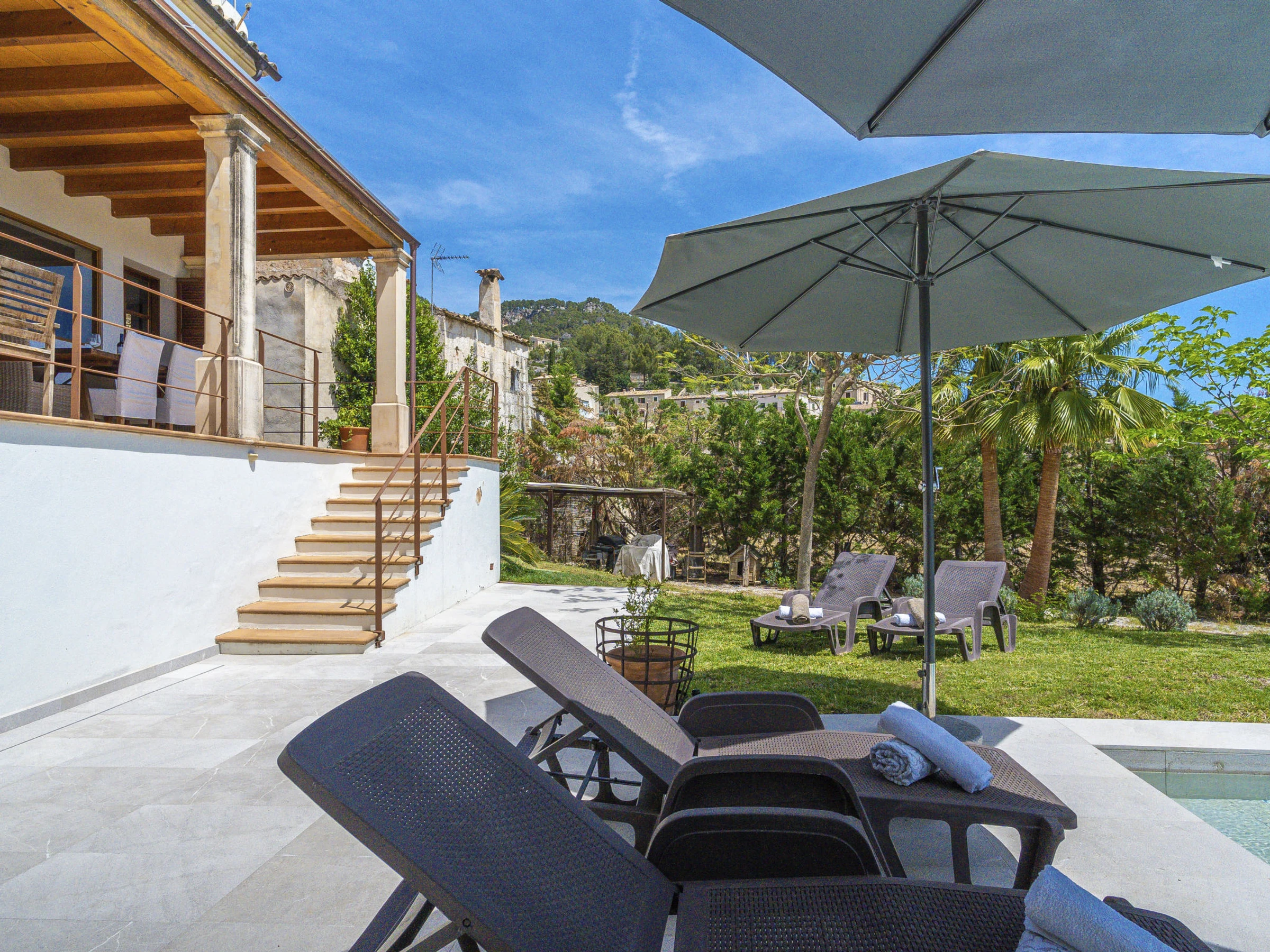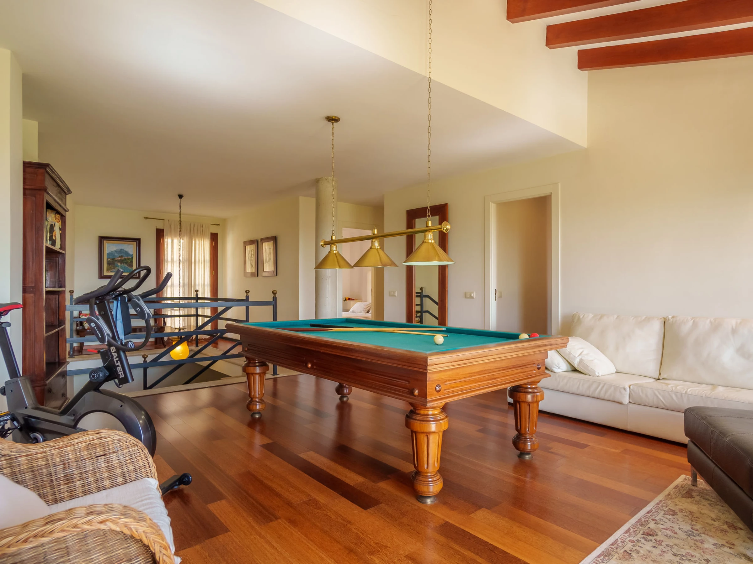 Belle, grande villa confortable "Sa Coma Caimari", de 2 étages. Dans la localité, à 300 m du centre, situation tranquille, ensoleillée, à 170 m de la forêt, à 27 km de la mer. A usage privé: terrain à l'état naturel (clôturé), beau jardin avec pelouse et arbres, piscine rectangulaire (6 x 4 m, profondeur 40 - 170 cm, disponibilité saisonnière: [hidden] - [hidden] Douche extérieure, jardinet, tonnelle, pergola, meubles de jardin, barbecue, entretien de la piscine par le propriétaire/jardinier. Infrastructures de la Maison: billard, air-conditionné. Place de parking près de la maison sur le terrain. Magasin d'alimentation 210 m, restaurant 280 m, bar 170 m, boulangerie 350 m, café 170 m, location de bicyclettes 2.3 km, biergarten 300 m, centre à 4 minutes à pieds, arrêt de bus 450 m, plage de sable "Port d'Alcúdia" 27 km. Port plaisance 28 km, terrain de golf (18 trous) 23 km, tennis 2.2 km, centre sportif 700 m, chemins de randonnées pédestres depuis la maison 200 m, piste cyclable 500 m. Attractions à proximité: Pueblos de Selva,Moscari,Mancor,Campanet, Ciudad de Palma 42 km, Santuari de Lluc 11 km, Restaurantes: Ca Na Toneta, Sa Tafona, Playa y Faro de Formentor 35 km, Mallorca Fashion Outlet & Cinemas 28 km. Région de randonnées: Serra de Tramuntana 500 m, Camí Vell de Caimari Lluc, Mancomunitat des Raiguer. Veuillez noter: voiture recommandée. Bien convenant à 4 adultes. Le propriétaire n'accepte pas les groupes de jeunes. Aéroport 44 km de la maison. Environnement très sensible au bruit. Silence et bonne tenue exigés.