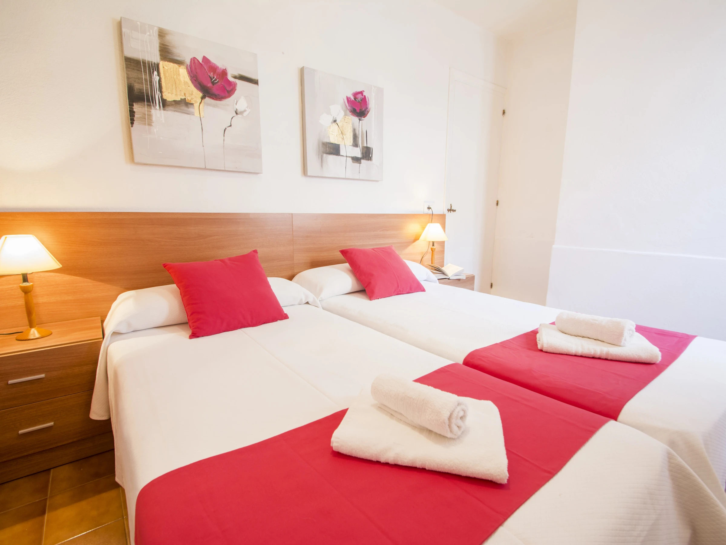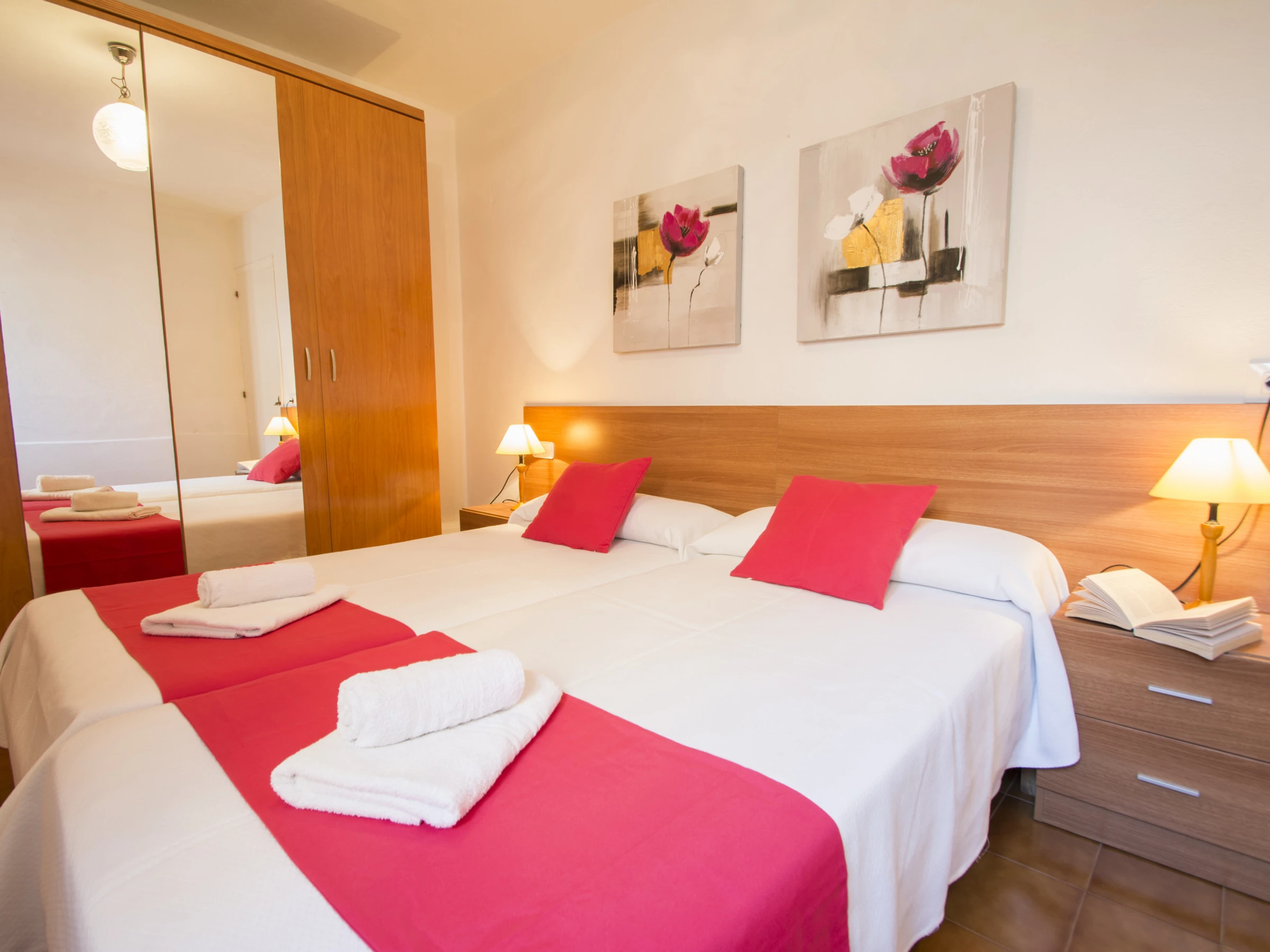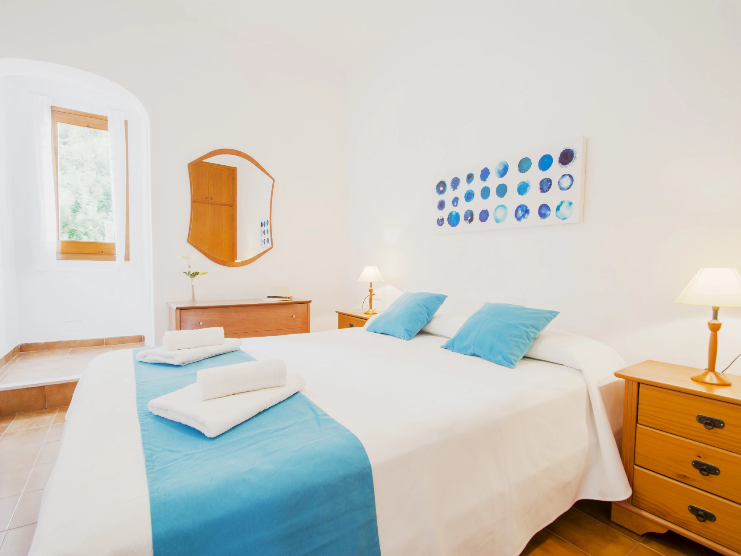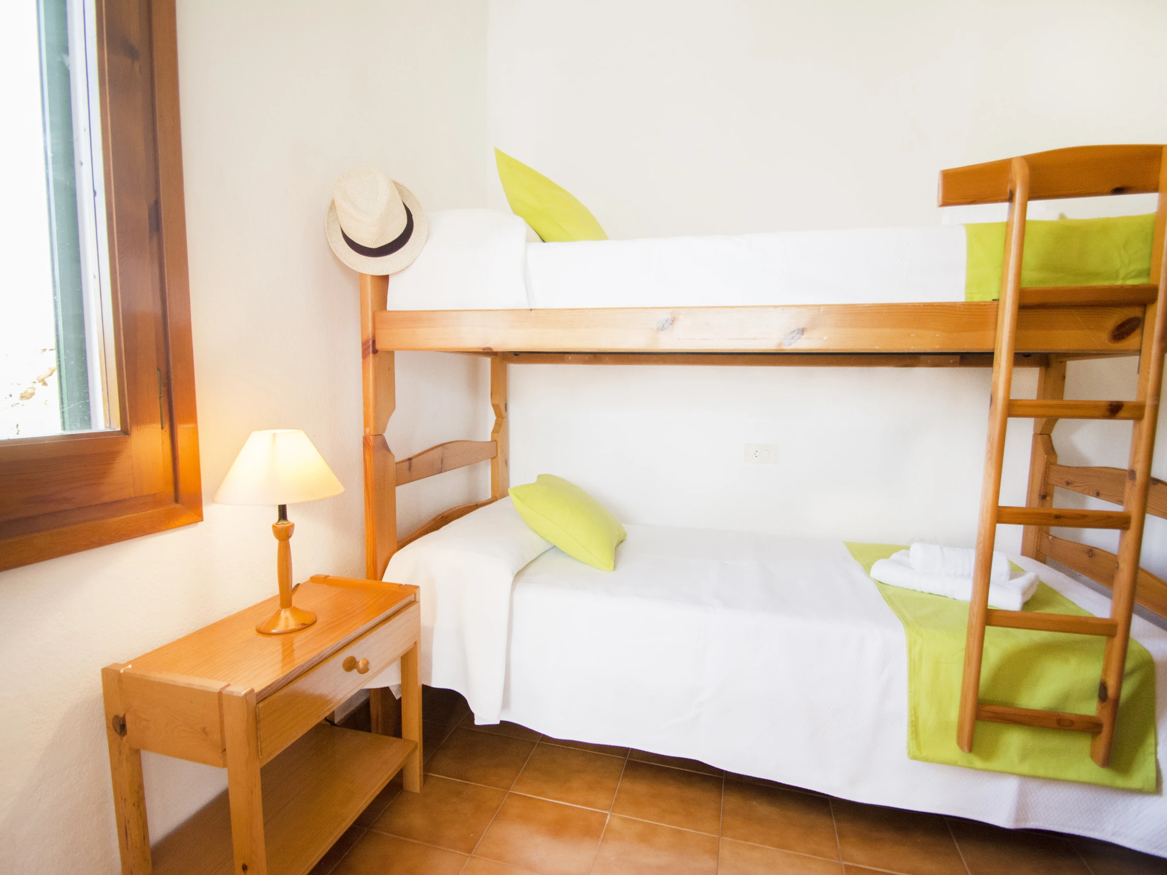 The main room is composed of a double bed, a large built-in wardrobe and a complete bathroom, equipped with a shower tray and a hairdryer. The other two double rooms are made up of two single beds and with a built-in wardrobe the first, and the second consists of a bunk bed with two single beds and a wardrobe.