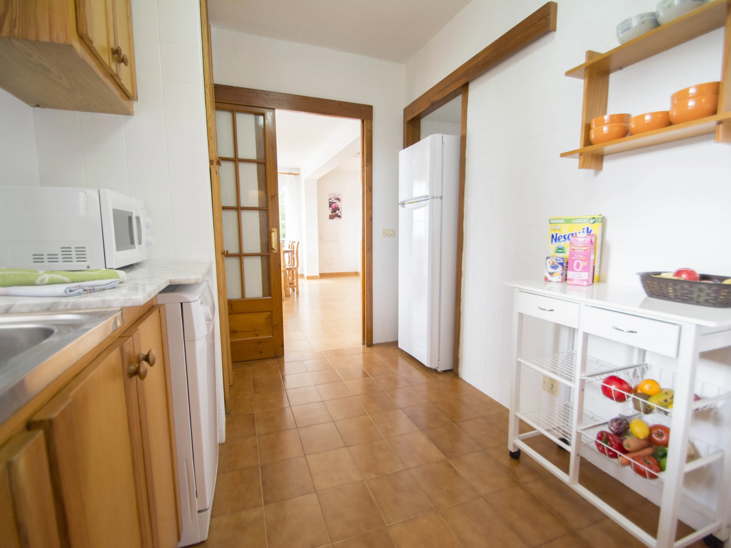 The kitchen is fully equipped with refrigerator, oven, microwave, dishwasher, coffee maker, kettle, toaster, washing machine and all necessary kitchenware.